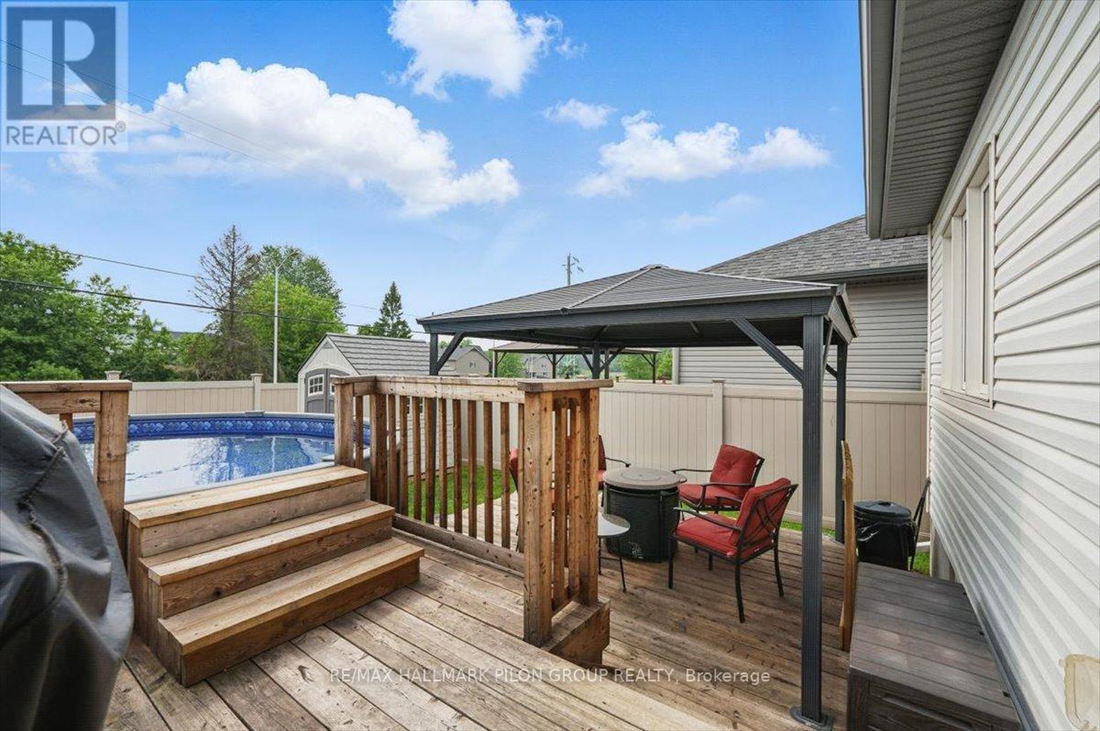 Welcome to this beautifully maintained bungalow in the desirable & charming community of Rockland. From the moment you arrive, you'll be captivated by the homes charming curb appeal. Step inside to discover a spacious front bedroom that easily doubles as a home office or den- perfect for guests or remote work. Gleaming hardwood floors guide you through the open-concept main level, leading to a generous dining area that flows seamlessly into the heart of the home: a beautifully upgraded kitchen. The kitchen boasts rich cabinetry, a striking herringbone backsplash, gleaming granite countertops, & large island w/breakfast bar seating. Just off the kitchen, the sun-filled living room offers ample space to relax or gather with friends & family. Tucked away at the rear of the home, the primary bedroom comfortably fits a full bedroom set & features a large walk-in closet & access to the luxurious 3-piece ensuite bathroom. Also on the main floor is a second full bathroom & a Pinterest-worthy laundry room- designed with both function & style in mind. The professionally finished basement expands your living space with an oversized recreation room that easily accommodates a home gym, media space, or play area. A dedicated home office nook, a spacious third bedroom, & a full designer bathroom with a tiled glass shower & modern vanity complete this level. Theres even plenty of room left for storage in the large utility room. Step outside to your sunny, west-facing backyard oasis. A patio door from the living room opens to a large deck surrounding an above-ground pool- complete with a cozy gazebo, perfect for summer relaxation. The fully fenced yard also features a grassy area & a separate garden shed for extra storage. This fantastic home is ideally located close to Rockland's top amenities, including excellent schools, scenic parks, popular shopping, and restaurants. Its ideal location also offers quick access to the highway making commuting a breeze.