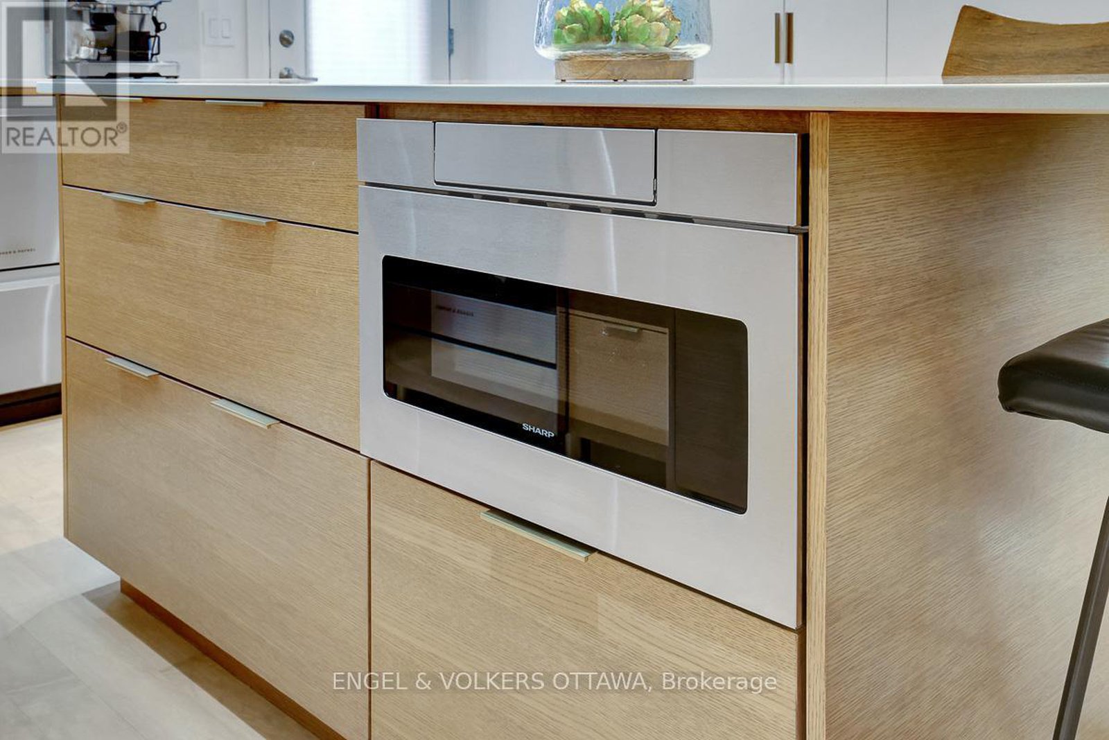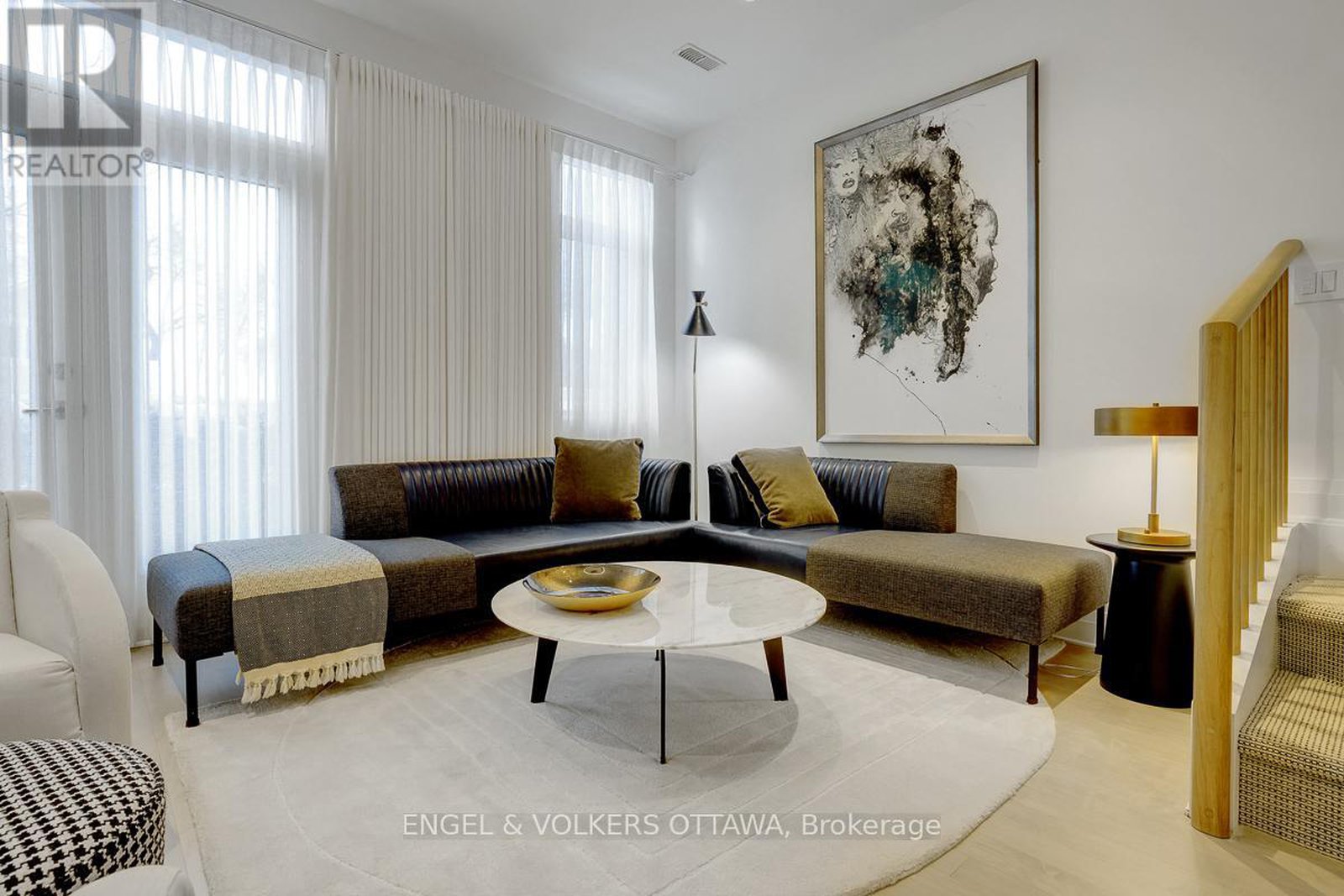 Welcome to Ravenhill Common-an exclusive enclave of contemporary, brownstone-inspired townhomes designed by architect Barry Hobin, ideally located in the heart of sought-after Westboro.The current owners of 449 Edison Avenue have transformed this already sophisticated residence into a truly exceptional luxury home, completing a comprehensive, top-to-bottom renovation in December 2024. Every detail was meticulously curated, with only premium materials and expert craftsmanship selected throughout.The main entry level opens to a spacious foyer offering abundant mudroom-style storage, a convenient two-piece powder room, and a versatile flex space ideal for a home office or fitness area. Direct interior access leads to a secure heated parking space, complete with additional storage and a water line for vehicle washing.The sun-filled main living level features 9-foot high ceilings and transom windows, creating a bright and airy atmosphere ideal for both everyday living and entertaining. This level includes a welcoming living room with access to a deck overlooking the quiet neighbourhood, an open dining area perfect for family gatherings, and a stunning custom kitchen. The kitchen is equipped with Fisher & Paykel appliances, a breakfast island ideal for morning coffee, and access to the rear terrace-perfect for alfresco dining.The second level offers a generous second bedroom, a full laundry room, and a family room that can be used as a third bedroom if desired. The third level with 9-foot high ceilings is devoted entirely to the primary retreat, featuring a custom walk-in closet, access to a private terrace, and a beautifully appointed five-piece ensuite-a true spa-like sanctuary.With no grass to cut and no snow to shovel, as maintenance is covered under common area fees, this home offers the ultimate lock-and-leave, maintenance-free lifestyle. For full details, see attached feature sheet. 24-hour irrevocable on all offers as per form 244.