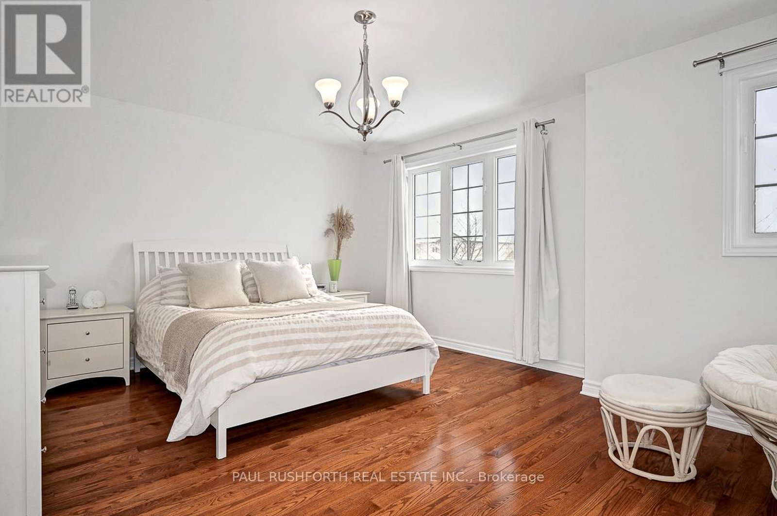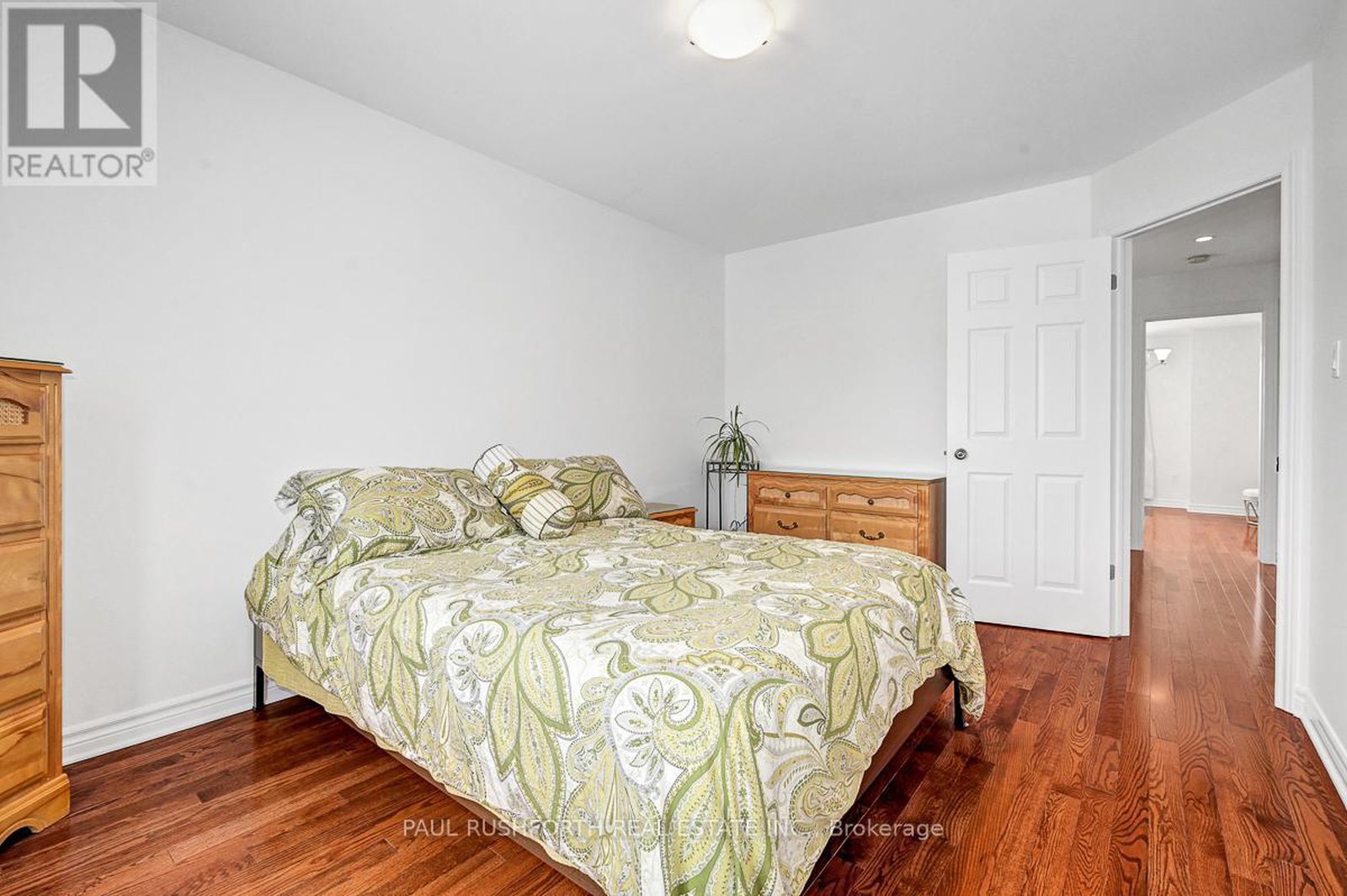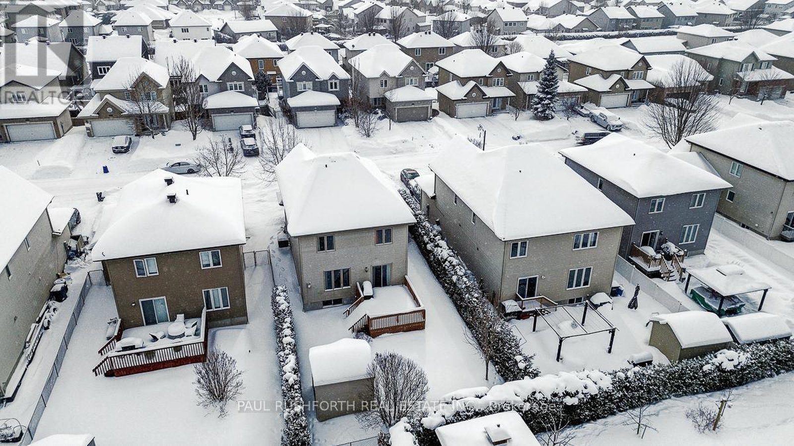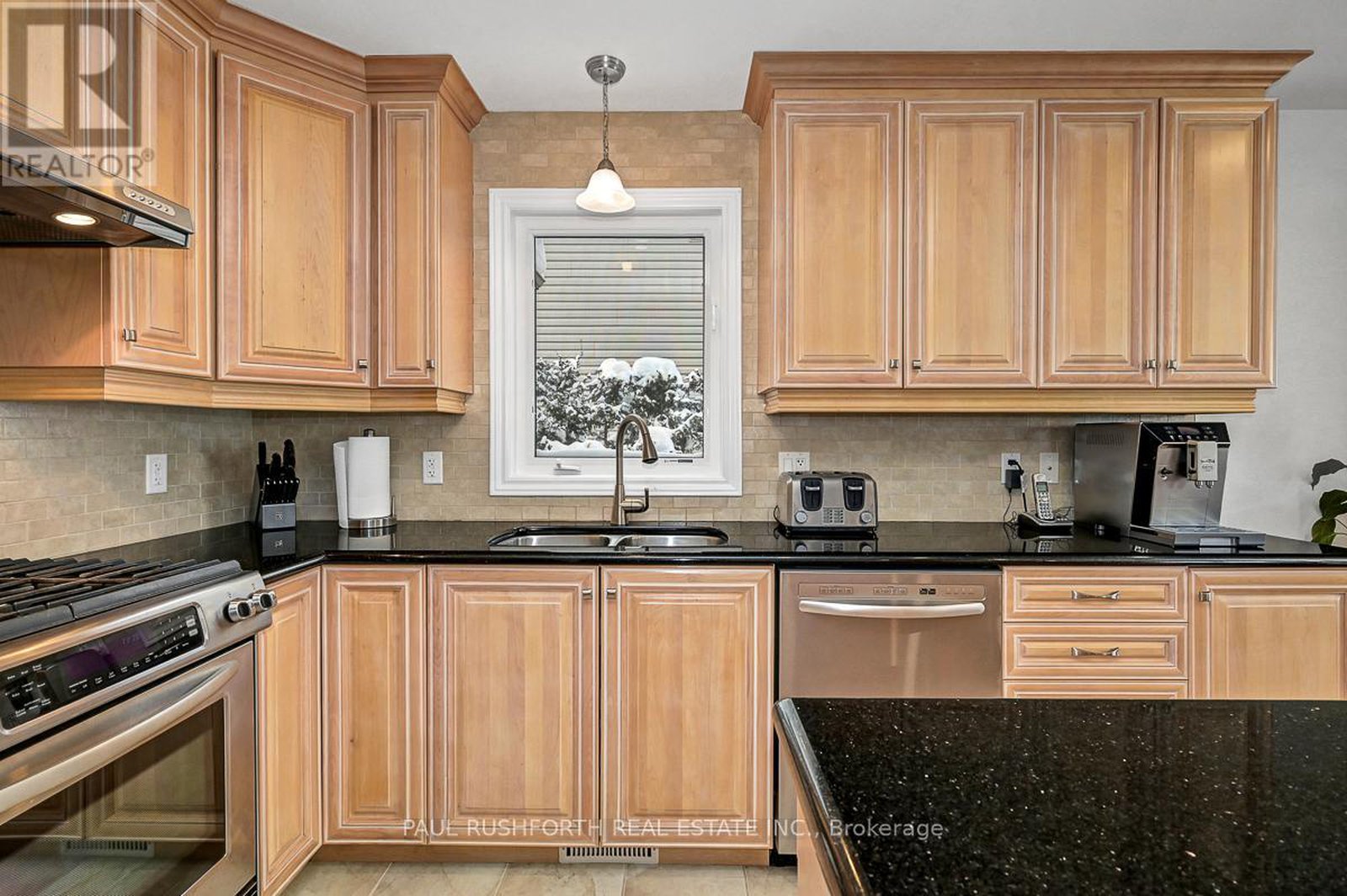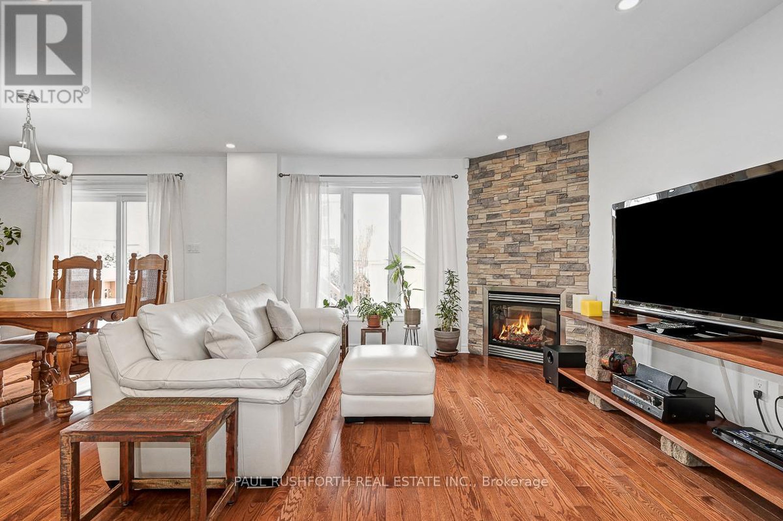 Immaculate and meticulously maintained, this high-quality three-bedroom home is ideally located on a quiet crescent in a sought-after Rockland community, just minutes from schools, parks, and local amenities. The exterior impresses with interlock landscaping, a double garage, and a private backyard framed by mature cedar hedges. Built two feet deeper than the original plans, the home offers generously sized living spaces throughout. The upgraded kitchen features a unique design from the Sanscartier Platon model, complete with a central island with breakfast bar, birch cabinetry with custom moldings, and granite countertops. The kitchen flows seamlessly into the spacious dining area with patio doors leading to the backyard, where you will find a large deck and a custom, professionally built shed. The open-concept main living area is highlighted by a natural gas fireplace with a striking brick accent wall. Oak hardwood flooring extends throughout both levels and the staircase to the second floor. The spacious primary bedroom offers a walk-in closet and a cheater ensuite with double sinks, upgraded cabinetry and shower, and a quartz countertop. Additional features include recessed pot lighting throughout the interior and exterior soffits, a 200-amp electrical panel making the home electric-vehicle ready, bathroom rough-in in the basement and professional painting completed in 2021. This turnkey property offers exceptional quality, comfort, and location. An outstanding opportunity for a discerning buyer! Some photos are virtually staged.