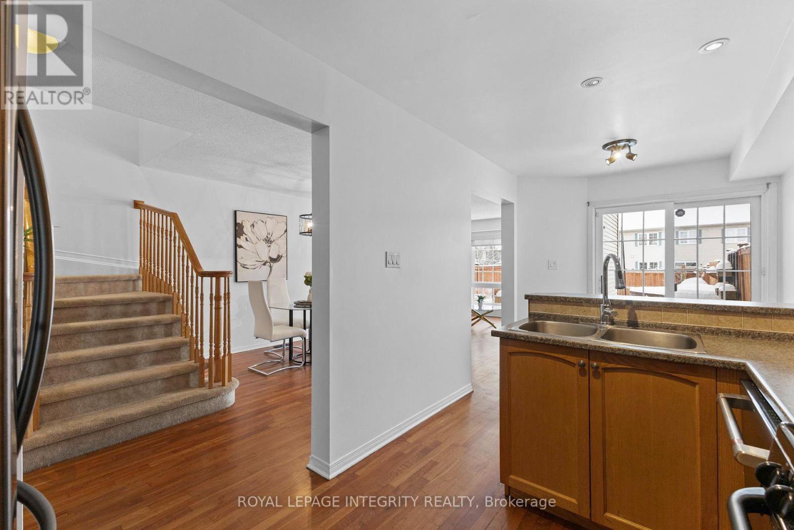 Nestled on a quiet private lane in the highly sought-after Stonebridge community, this beautifully maintained home offers an ideal blend of comfort, space, and lifestyle. Located just steps from the clubhouse and golf course, and surrounded by scenic walking trails, this home is perfect for families and outdoor enthusiasts alike.The spacious front foyer leads to a bright, open-concept main floor designed for everyday living and entertaining. The eat-in kitchen features a breakfast bar and flows seamlessly into the formal dining area. The family room offers a cozy gas fireplace and access to a large deck overlooking a deep, fully fenced backyard on a rare 128-ft lot, complete with hot tub-ideal for summer entertaining.Upstairs, the generous primary bedroom includes a walk-in closet and 4-piece ensuite. Two additional well-sized bedrooms provide flexibility for family, guests, or a home office. The finished lower level offers a spacious recreation room, perfect for movie nights or a play area.Updates include renovated powder room (2023), hardwood floors sanded and refinished (2025), freshly painted throughout (2025), and roof shingles replaced (2024). Additional features include an attached garage with inside entry and EV charger.Conveniently located near parks, schools, shopping, and golf.100./Month association fee for snow removal and lawn maintenance. 24 Hr. irrevocable on all offers!