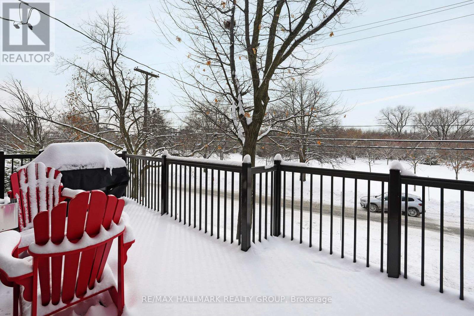 Exceptional River View Home Overlooking NCC Parkland & the Rideau River. This stunning 2+1-bedroom residence offers striking architecture, & approx. 2340 sq. ft of living space with breathtaking west-facing river views, & a prime location in one of Ottawa's most desirable enclaves. Perfect for downsizing or embracing a low-maintenance, carefree lifestyle, this home combines modern luxury w functional design. The front entrance features imported ceramic tile, solid oak staircases w wrought-iron railings, & a designer stone accent wall that sets a refined tone. The versatile main-level space is ideal for a home office, fitness studio, or creative workspace, complemented by a stylish powder room with upgraded finishes. The fully drywalled lower level, currently a workshop, can easily be converted into a media room or additional living space. The second level is dedicated to entertaining, w open-concept living and dining areas, luxurious hardwood flooring, a gas fireplace as a focal point, and expansive floor-to-ceiling windows framing westward views over NCC parkland & the Rideau River. The kitchen is perfect for hosting, featuring granite countertops, stainless steel appliances, upgraded tile, & a convenient eat-in bar. The adjacent dining area offers custom built-in bench seating with hidden storage. The upper level includes two spacious bedrooms, each with a walk-in closet and private ensuite bath. The primary ensuite boasts a custom enlarged glass shower with upgraded tile finishes. Additional highlights include custom blinds on all windows, pot lighting throughout the entertainment level, luxurious Berber carpet in bedrooms, a direct gas BBQ connection on the expansive deck, and a gas clothes dryer. Enjoy an exceptional location step from the Rideau River, scenic walking and cycling paths, Rideau Tennis & Sports Club, The Bridge Public House, and seamless access to Sandy Hill and downtown via the Adawe Crossing pedestrian bridge.