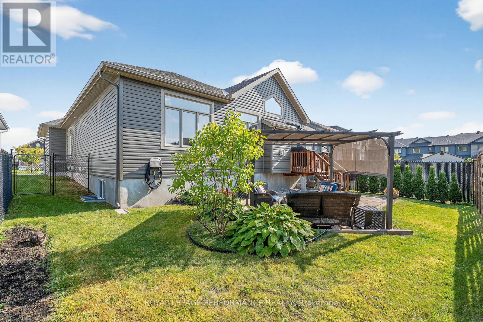 Everything you need on one level - Welcome to 88 des Rails Street, a beautifully crafted 4-bed, 3-bath EQ-built bungalow in Rockland's Clarence Crossing community. Here, you're steps from forested walking trails along the Ottawa River, close to shops, services, golf courses, sports fields, and even a local brewery. Inside, 1,640 square feet of main floor living flows seamlessly with vaulted ceilings and rich hardwood throughout. The open-concept layout centers around a cozy gas fireplace, while the kitchen delivers everything you'd want: two-tone cabinetry, granite counters with a breakfast bar, undercabinet lighting, stainless steel appliances, and a walk-in pantry. There's even a thoughtful alcove with extra cabinetry, perfect as a coffee bar or added storage. The main floor puts convenience first. The primary suite features a walk-in closet and a 3-piece ensuite with a stand-up shower. A second bedroom offers another walk-in closet, while a third bedroom works perfectly as an office or den. Add in a full bathroom, main-floor laundry, and a welcoming covered front porch, and you've got a layout that just works. Downstairs, the fully finished basement adds another 1,180 square feet, offering a spacious rec room, fourth bedroom, 4-piece bathroom, and two storage rooms. It's ideal for guests, family visits, or extra living space when you want it. Outside, the premium wide lot is a standout. The fully fenced backyard features an interlock patio and a pergola for summer shade. The extra-wide two-car garage offers inside entry and plenty of room for vehicles, tools, and gear - a rare find that makes daily life easier. Practical upgrades include a Generlink transfer switch for generator hook-up and an Eaton whole-home surge protector. Built in 2017 by EQ Homes, this move-in ready bungalow has everything in place.