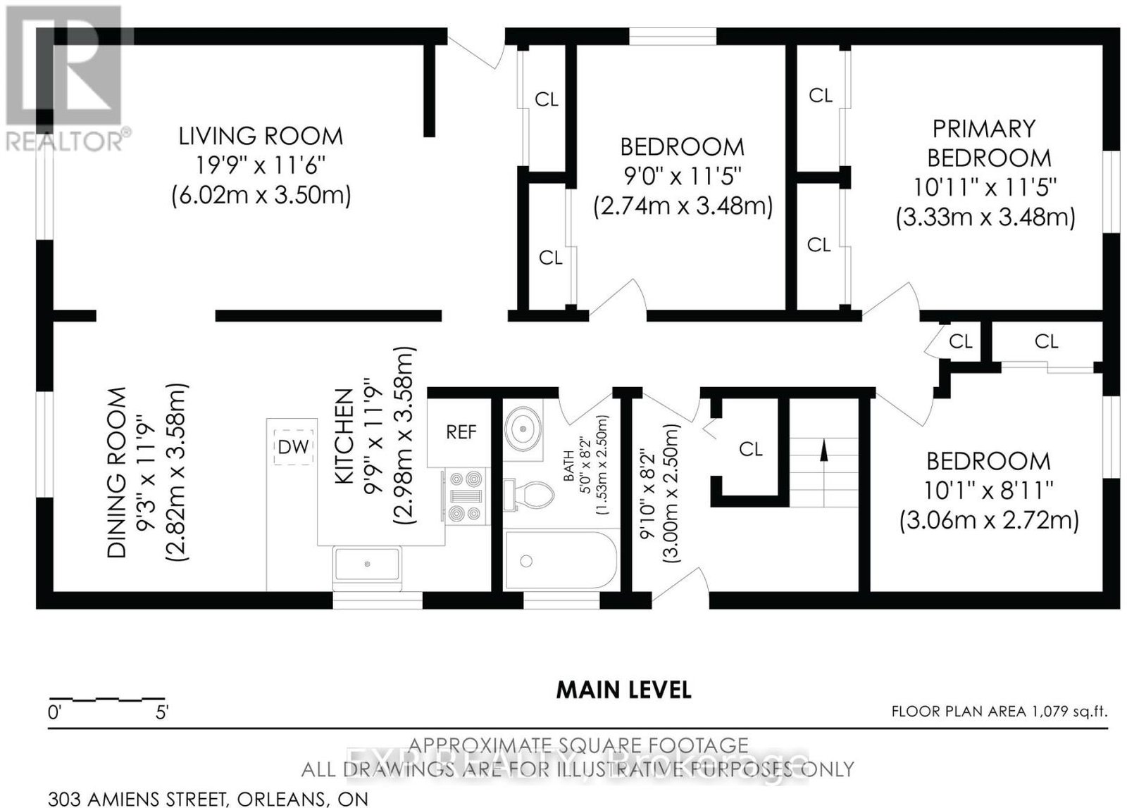 Welcome to 303 Amiens Street, a beautifully maintained 3+2 bedroom bungalow in the heart of Orléans. Ideally located minutes to Place d'Orléans, Transitway/Future O-Train, Metro, Ray Friel Recreation Complex & Library. Steps to fantastics schools & Parks and amazing bus service- this home offers outstanding convenience for families and commuters alike. Lovingly cared, this carpet-free home features ceramic and hardwood flooring throughout the main level. The bright and inviting living room showcases a large picture window that fills the space with natural light. The kitchen is both functional and bright, offering solid oak cabinetry, wall-to-wall pantry storage and open to a spacious dining area. The main bathroom has been fully renovated with modern ceramic finishes. A separate side entrance provides direct access to the beautifully finished lower level, offering excellent potential for an in-law/rental suite. The recently updated lower level includes brand new flooring throughout, a spacious recroom with gas stove, two additional bedrooms/office, and stunning full bath with double sink vanity. Roof, attic insulation and Gas Boiler- all new in 2025! Situated on a private 59ft x 99ft lot, this home is perfect for a first time buyer, downsizer or savvy investor!