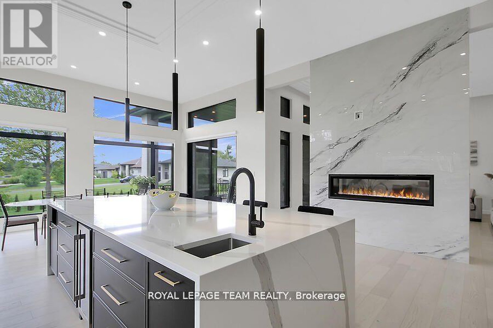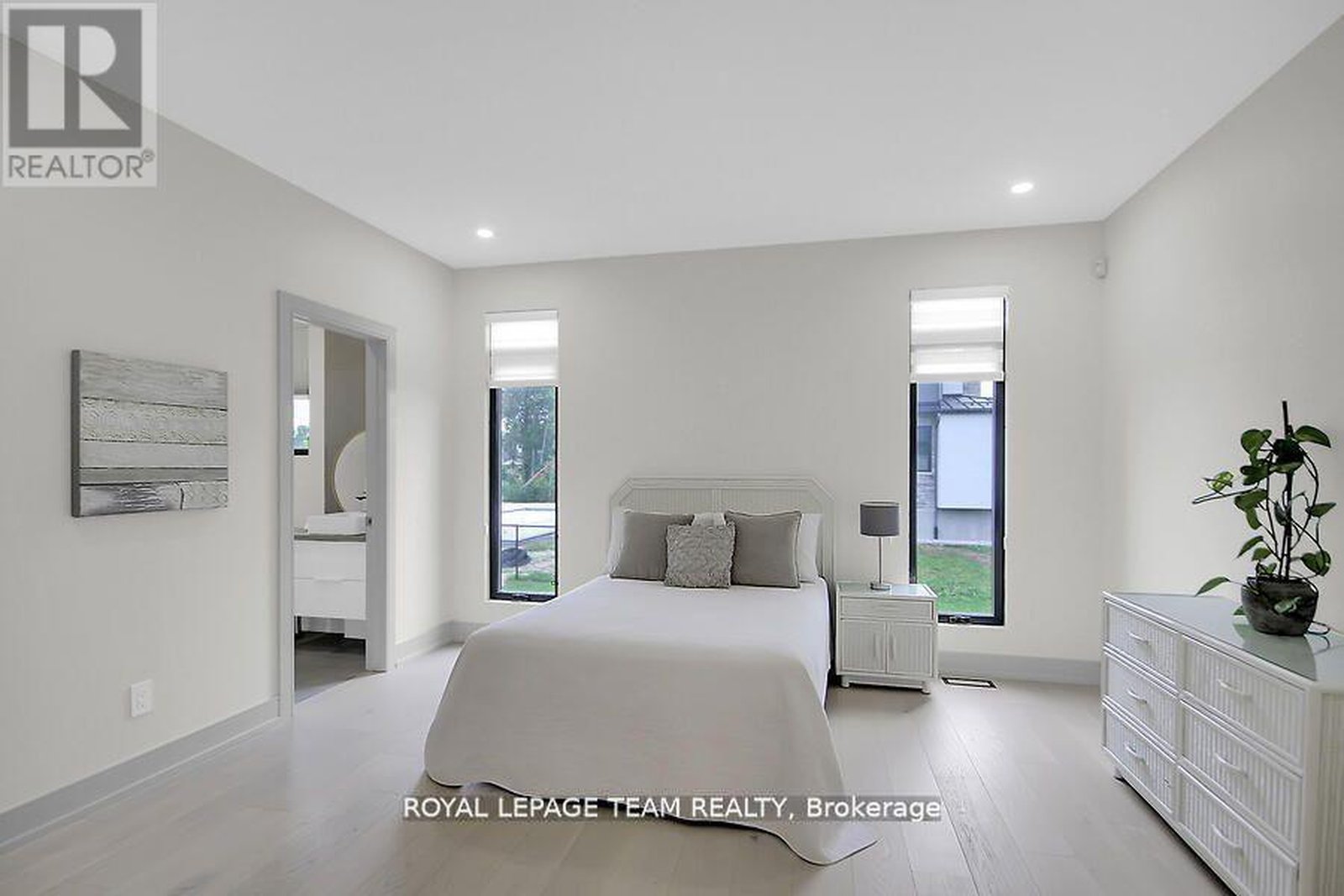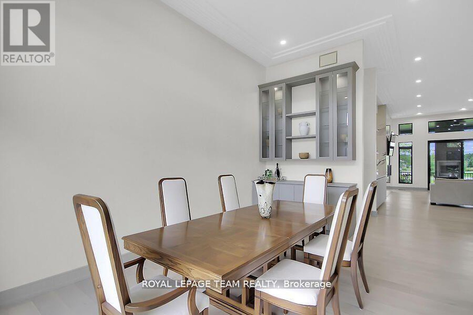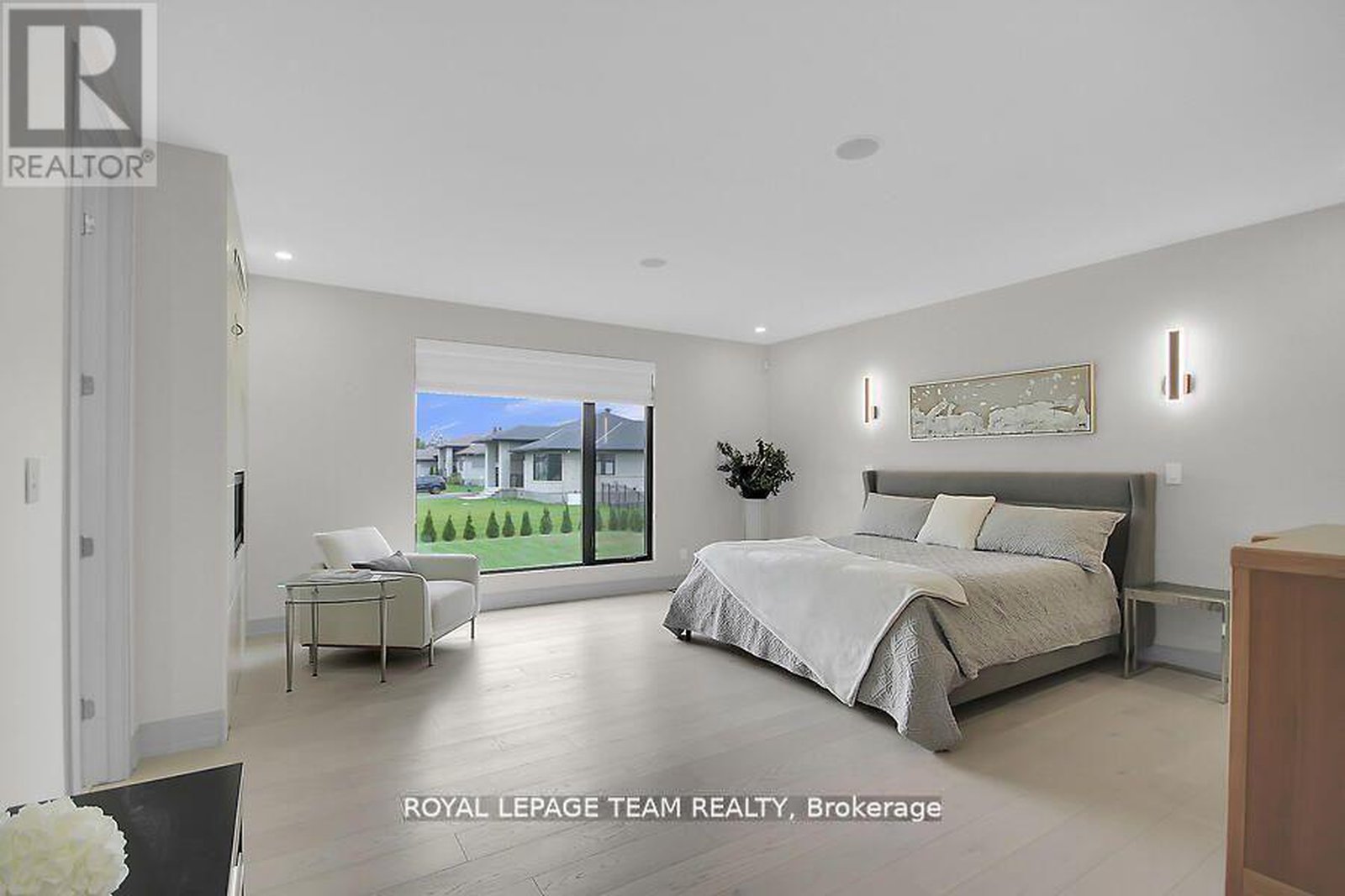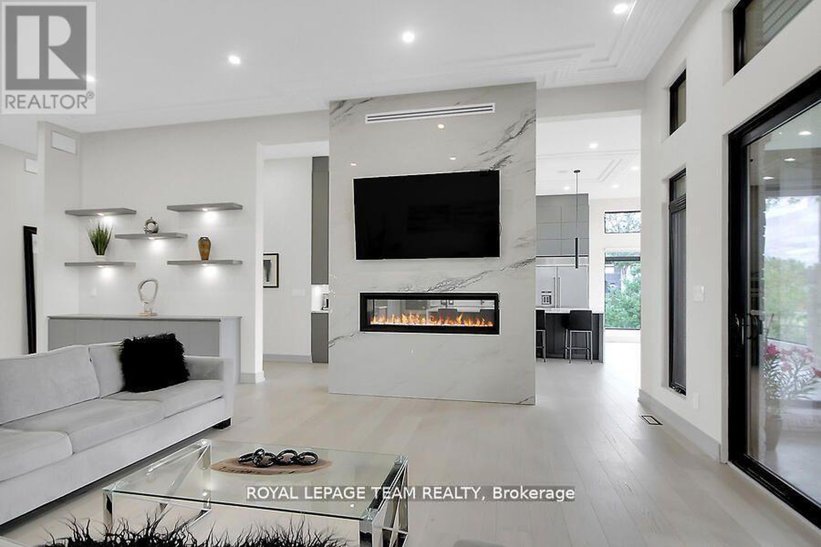 This expansive custom-built bungalow offers 6 bedrooms and 5 bathrooms, showcasing elegant wide plank oak hardwood flooring, oversized windows, and exquisite craftsmanship throughout. Designed with modern living in mind, the open-concept layout welcomes you through a stylish foyer into a grand living room that seamlessly extends to a covered veranda, complete with a cozy wood-burning fireplace. The chef-inspired kitchen is a true centrepiece, featuring a stunning waterfall quartz island with generous seating, quartz backsplash, gas cooktop, and a bright breakfast nook perfectly complemented by a separate formal dining room for more refined gatherings.The luxurious primary suite is a private retreat, boasting a spacious walk-in closet with custom vanity, a 5-piece ensuite with double sinks, a glass-enclosed shower, freestanding soaker tub, and a gas fireplace for added comfort. Three additional bedrooms are located on the main floor, two of which offer private en-suites. The fully finished lower level features heated floors throughout, three large bedrooms, a full bathroom, and a vast recreational space with endless potential for entertainment or relaxation. Additional highlights include a heated 3-car attached garage with soaring 20-ft ceilings and a fully integrated smart home system with wireless control and state-of-the-art 5-zone wireless speakers. Please note that lower level rooms have been virtually staged.
