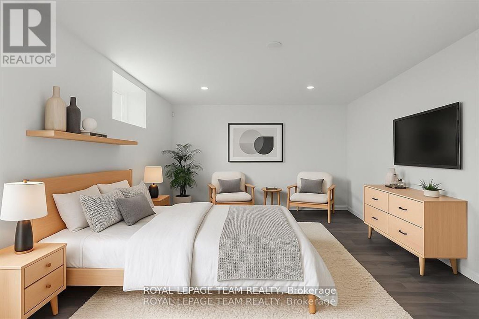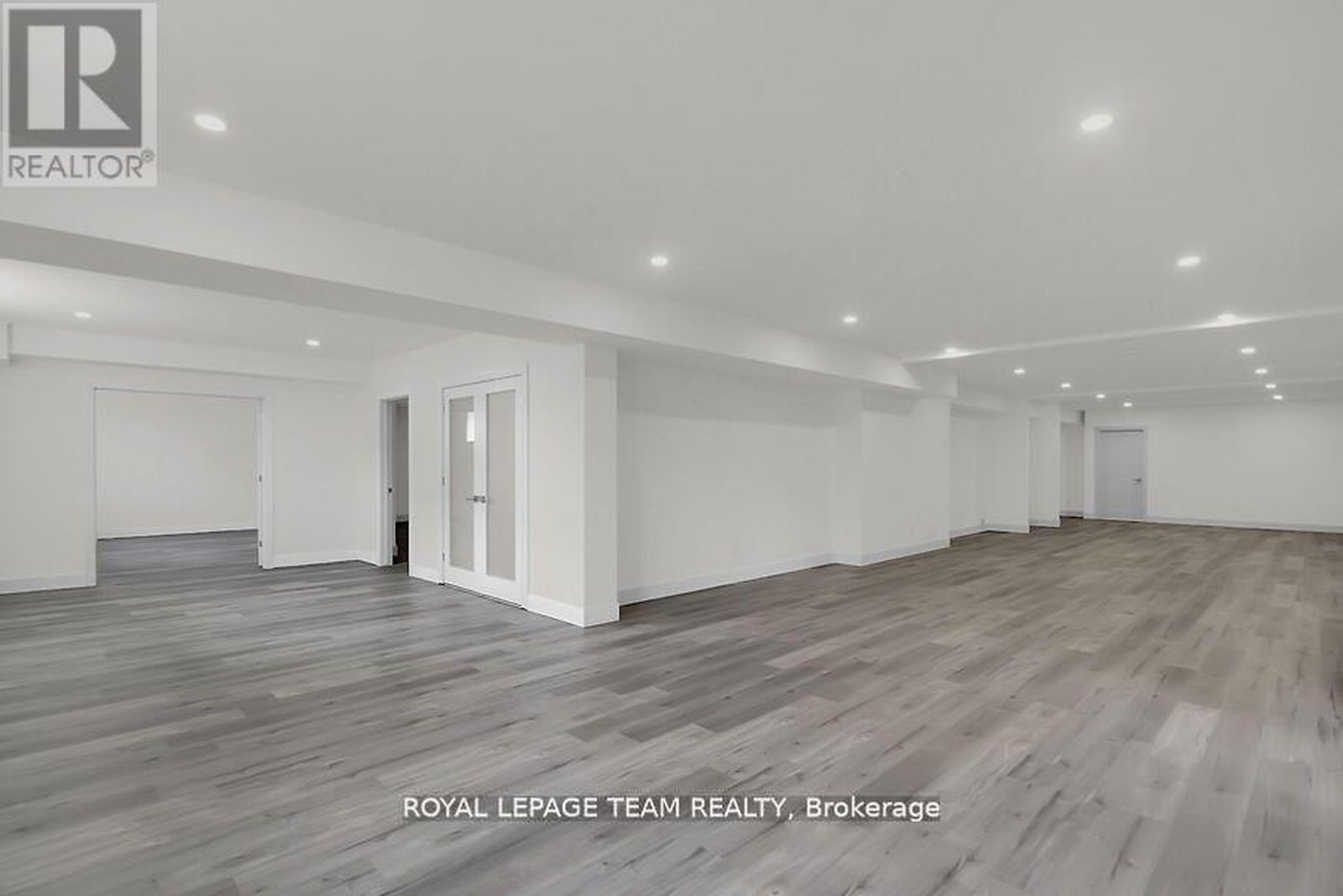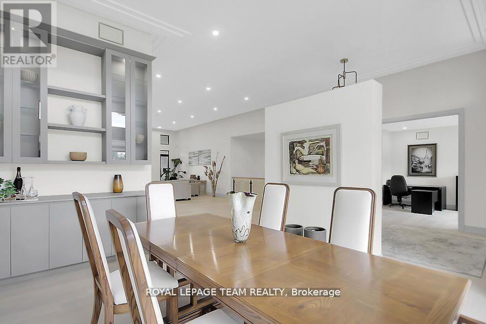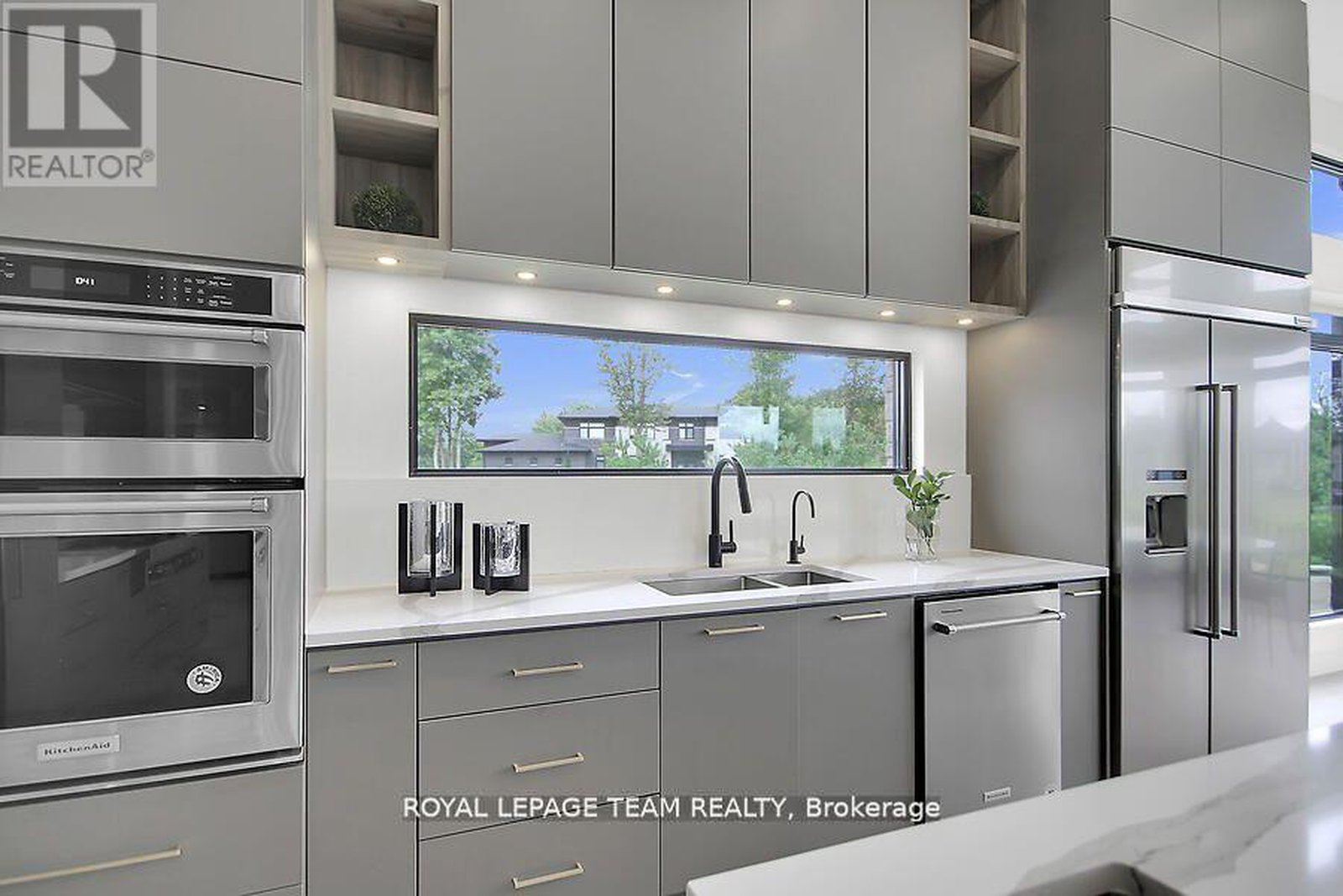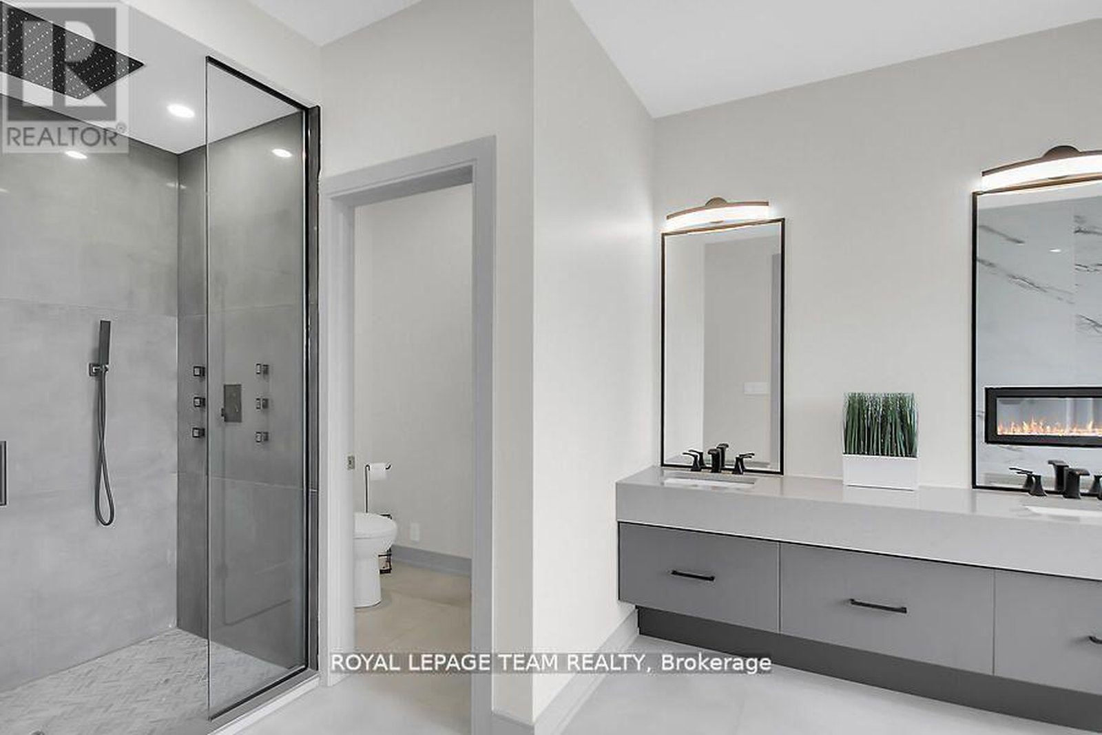 This expansive custom-built bungalow offers 6 bedrooms and 5 bathrooms, showcasing elegant wide plank oak hardwood flooring, oversized windows, and exquisite craftsmanship throughout. Designed with modern living in mind, the open-concept layout welcomes you through a stylish foyer into a grand living room that seamlessly extends to a covered veranda, complete with a cozy wood-burning fireplace. The chef-inspired kitchen is a true centrepiece, featuring a stunning waterfall quartz island with generous seating, quartz backsplash, gas cooktop, and a bright breakfast nook perfectly complemented by a separate formal dining room for more refined gatherings.The luxurious primary suite is a private retreat, boasting a spacious walk-in closet with custom vanity, a 5-piece ensuite with double sinks, a glass-enclosed shower, freestanding soaker tub, and a gas fireplace for added comfort. Three additional bedrooms are located on the main floor, two of which offer private en-suites. The fully finished lower level features heated floors throughout, three large bedrooms, a full bathroom, and a vast recreational space with endless potential for entertainment or relaxation. Additional highlights include a heated 3-car attached garage with soaring 20-ft ceilings and a fully integrated smart home system with wireless control and state-of-the-art 5-zone wireless speakers. Please note that lower level rooms have been virtually staged.