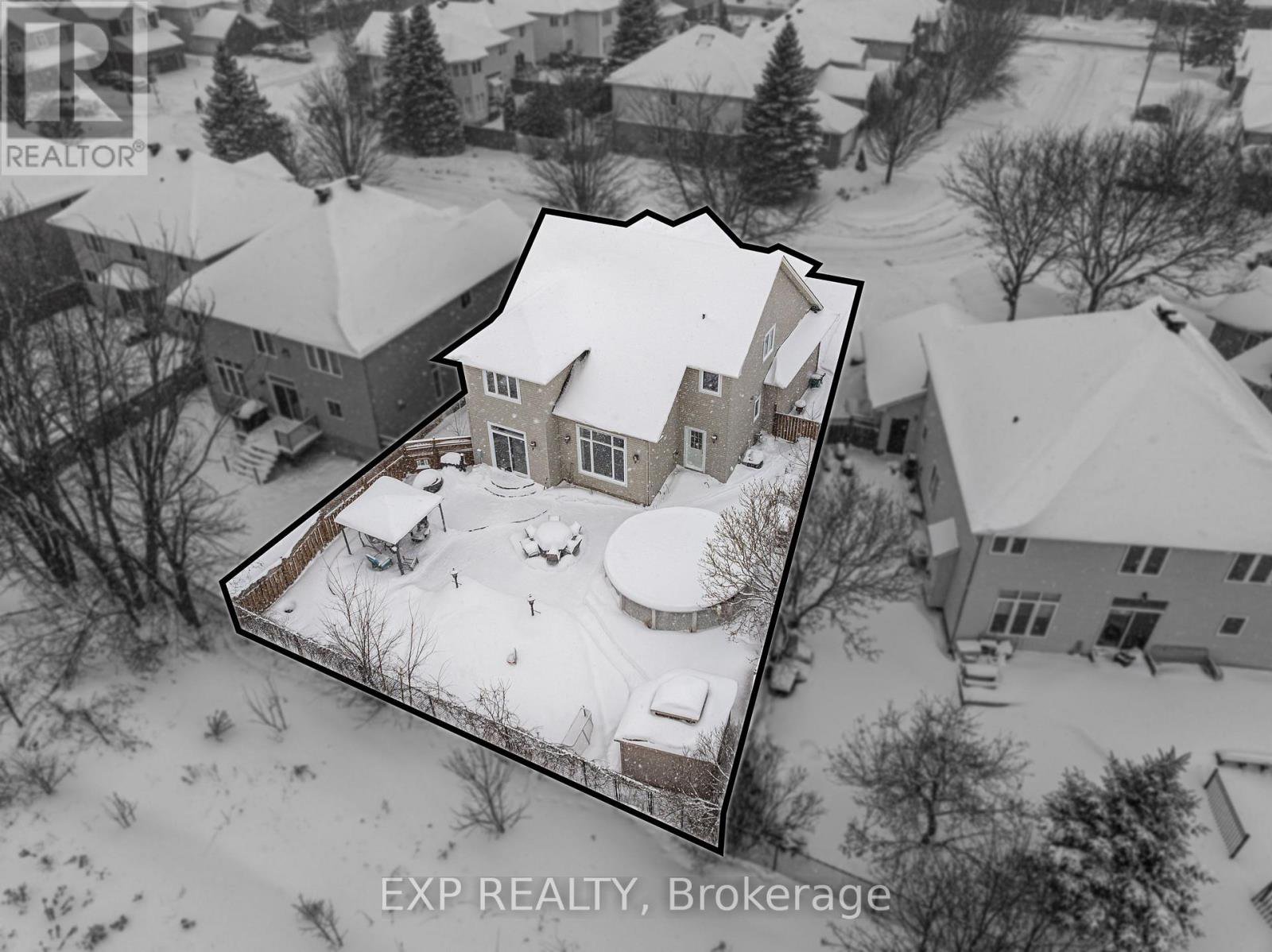 Welcome to this immaculately maintained, freshly painted home tucked away on a quiet, low-traffic street with no rear neighbors-your own private retreat. Step into a backyard oasis on a beautifully landscaped, pie-shaped lot featuring a saltwater pool and natural gas BBQ line, ready for unforgettable summer gatherings.Inside, the home immediately delivers a true wow factor. Soaring 9-foot ceilings run throughout the main floor, while the living room opens dramatically to a breathtaking 17.85-foot cathedral ceiling. Oversized windows frame peaceful views of the greenery behind and flood the space with natural light. Rich hardwood floors lead you through a thoughtful layout that includes a spacious kitchen with abundant cabinetry and a large island, main floor laundry, powder room, family room, dining room, and an impressive, welcoming foyer.Upstairs, you'll find a 4-piece bathroom, a generous primary retreat with walk-in closet, linen closet, and ensuite, plus three additional bedrooms-perfect for a growing family. Recent updates include carpet (2025), appliances (2022), and roof (approx. 2023). The fully finished basement offers 8.5-foot ceilings, custom built-ins for your entertainment system, a rough-in for a future wet bar, and a cozy electric fireplace-ideal for movie nights and relaxing evenings. Added bonus: central vacuum rough-in with convenient toe-kick dustpan.All of this is surrounded by parks, elementary, public and high schools, restaurants, groceries, pharmacies, and every essential amenity just minutes away.See the link below for the full video. Appelez maintenant pour plus d'informations !