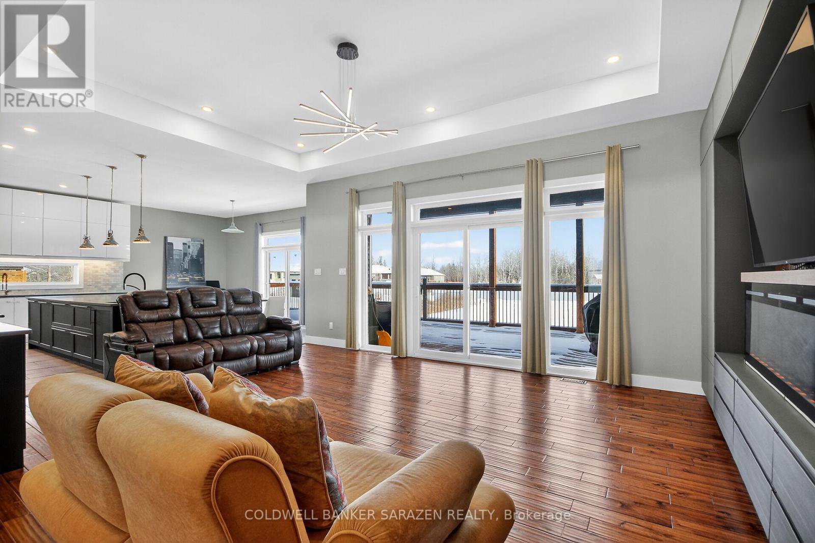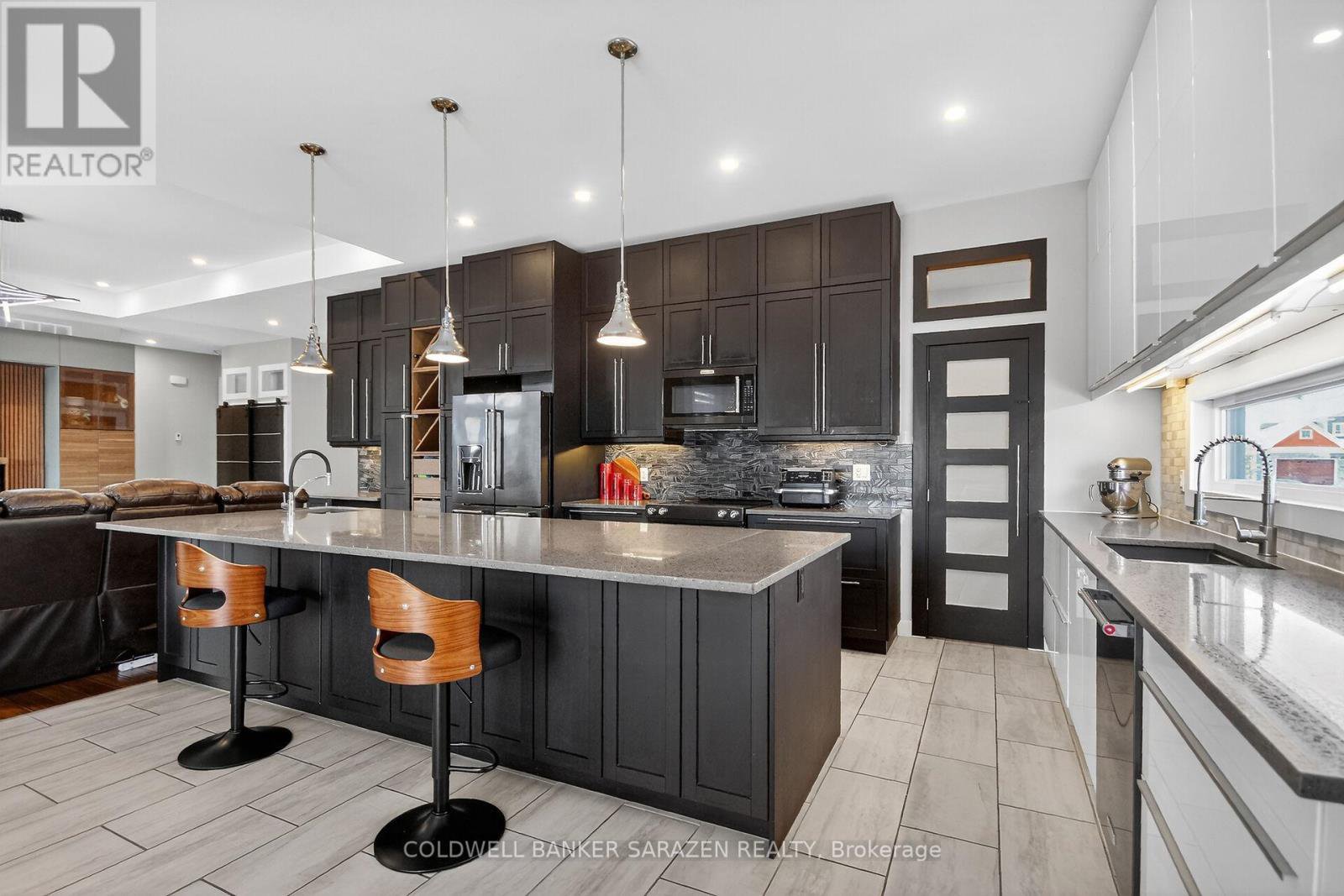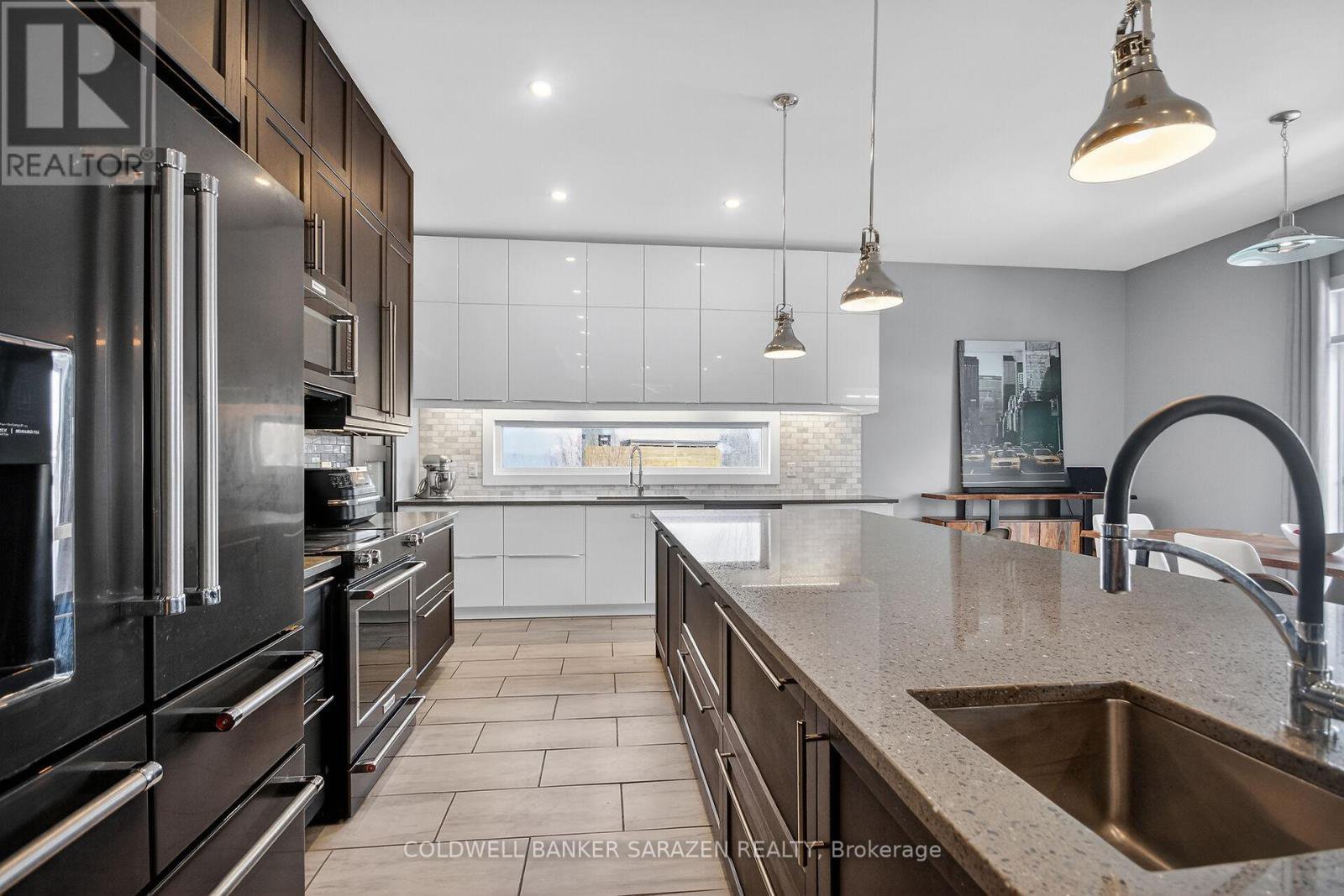 Welcome to an extraordinary opportunity in the tranquil community of Greely! Presenting a custom executive bungalow nestled on a 116x300-sqft parcel, offering ~4160-sqft of inviting living space (up & down), with 3+2 bedrooms; 3 full baths; & abundant access to outdoor spaces. The main level offers 10' ceiling heights, 11' in the living rm, & a layout made for entertaining. The chef's kitchen is a showstopper w/ quartz countertops; 2 sinks; a fabulous island w/ breakfast bar seating; a butler's pantry; plenty of cabinet and counter space; & access to the sun filled portion of the full-width deck -- offering backyard views & covered & exposed seating. The living room features a feature wall w/ a stunning fireplace & plenty of storage; coffered ceilings & pot lights; & patio doors to full-width deck. There are 3 bedrooms on the main level, including the primary, which includes a large walk-in closet; stunning 5-piece ensuite w/ double sinks; a separate shower & soaker tub; pot lights; patio doors to the deck overlooking the large yard. The second bedroom is adjacent to the full family bath; & the third bedroom is currently used as an office. The main level laundry room is conveniently located. Hardwood floors on the main level & staircase to the lower level. The walkout lower level features a offers tremendous finished space, including two bedrooms w/ above-grade windows; a den/home office/hobby room; full bathroom; & patio door w/ walkout access to the covered ground-level patio & backyard. Spacious oversized garage w/ 14.5' walls and two 8'x8' garage doors; inside entry; & side door access to the yard. The surfaced driveway offers parking for several vehicles. There is a 10'x16' full-height shed w/ garage & entrance doors. 2 modern floor outlets (living room & office/bedroom). Tucked away at the end of a dead-end street w/ limited through traffic. This is more than a home - it's a lifestyle in one of Ottawa's most desirable communities. Book your private tour today!