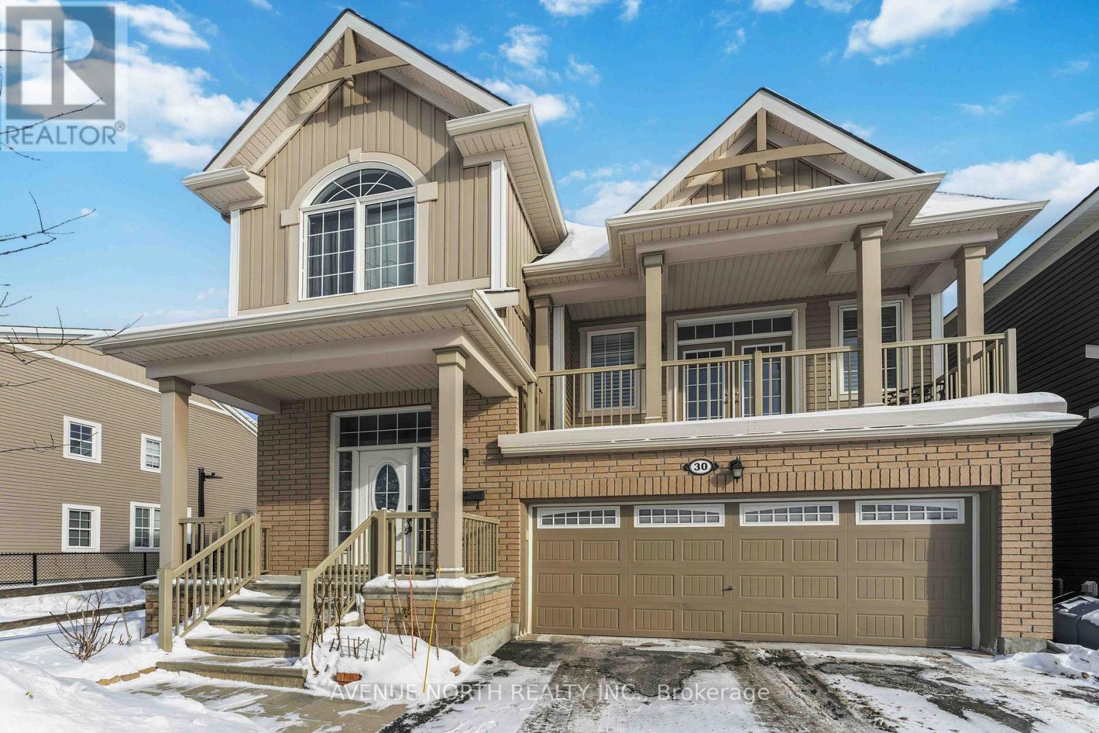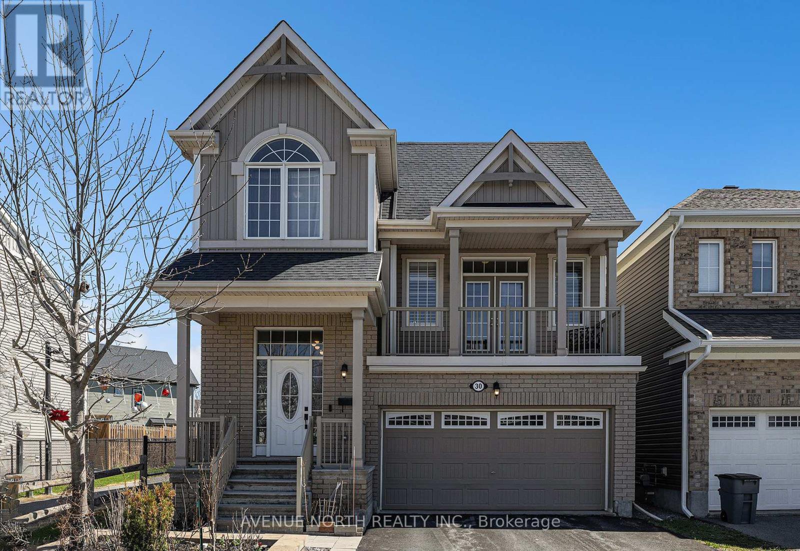 Welcome to 30 Solaris Drive, the rarely offered Lily II model by Mattamy Homes! Get ready to fall in love with this stylish and spacious 4-bedroom, 3-bathroom gem in the highly desirable Monahan Landing community! Close to parks, top-rated schools, shops, groceries, and with easy access to major highways, this home is all about location and lifestyle. Step inside to a bright and welcoming foyer with sitting area that opens up to a warm living and dining room with gleaming hardwood floors. The chef-inspired kitchen is a showstopper, featuring rich espresso cabinetry and granite countertop, high-end stainless steel appliances, a large island with breakfast bar and effortless flow into the open-concept eating area, perfect for casual family meals or hosting friends. But the real wow-factor? The incredible mid-level family room with soaring ceilings, cozy gas fireplace, and access to your private balcony, the perfect place to enjoy your morning coffee! It's the ultimate hangout zone with cool loft vibes and views of both the main and upper levels. Two separate staircases lead you to the upper level, offering a spacious primary suite complete with a walk-in closet and spa-like en suite bathroom featuring a sleek glass and tiled shower. Three additional bedrooms and a full guest bath offer plenty of room for the whole family. Unfinished lower level with high ceilings & large windows offers a blank canvas for your design ideas. Outside, the fully fenced rear yard is perfect for kids, pets, and summer BBQs. Original owners. Don't miss your chance to own this one-of-a-kind home, book your showing today!