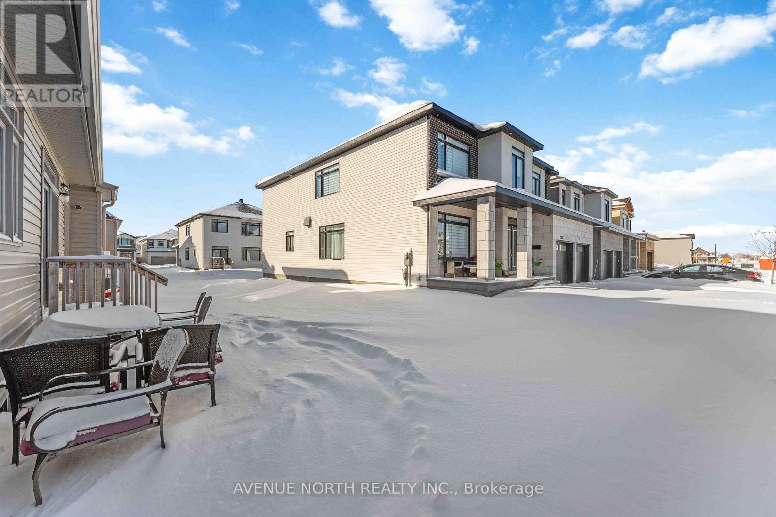 Welcome to this exceptional detached 4+1 bedroom, 5 bathroom home situated on a premium 45 foot wide corner lot in the heart of Findlay Creek. Offering over 3,500 sq. ft. of beautifully designed living space and an abundance of upgrades throughout, this home also features a double car garage and a wide driveway with parking for up to four additional vehicles. Ideally located within walking distance to parks, basketball courts, a hockey rink, and tennis courts, this home is perfect for active families. The main level boasts 9-foot ceilings, an open-concept layout, and rich hardwood flooring throughout, complemented by hardwood stairs leading to the second level. Elegant living and dining rooms provide ideal spaces for entertaining, while the spacious family room features a cozy gas fireplace. The stunning, fully upgraded kitchen is designed to impress, showcasing custom cabinetry, a custom kitchen island with quartz countertops, a gas stove, and stainless steel appliances, all with seamless flow into the main living areas. A large mudroom adds everyday convenience and functionality. The bright second level offers a spacious primary bedroom complete with a luxurious 5-piece ensuite bathroom. Two well-appointed guest bedrooms share a convenient Jack-and-Jill bathroom, while the fourth bedroom enjoys its own private ensuite-ideal for guests or multigenerational living. All bathroom countertops throughout the home have been upgraded to quartz, adding a cohesive and modern finish. The fully finished basement provides additional living space with a generous recreation room perfect for kids to play, a fifth bedroom, a 3-piece bathroom, and an abundance of storage space. With thoughtfully designed living areas across all levels, quality upgrades throughout, ample parking, and an unbeatable location, this home is a rare opportunity in one of Ottawa's most sought-after communities.