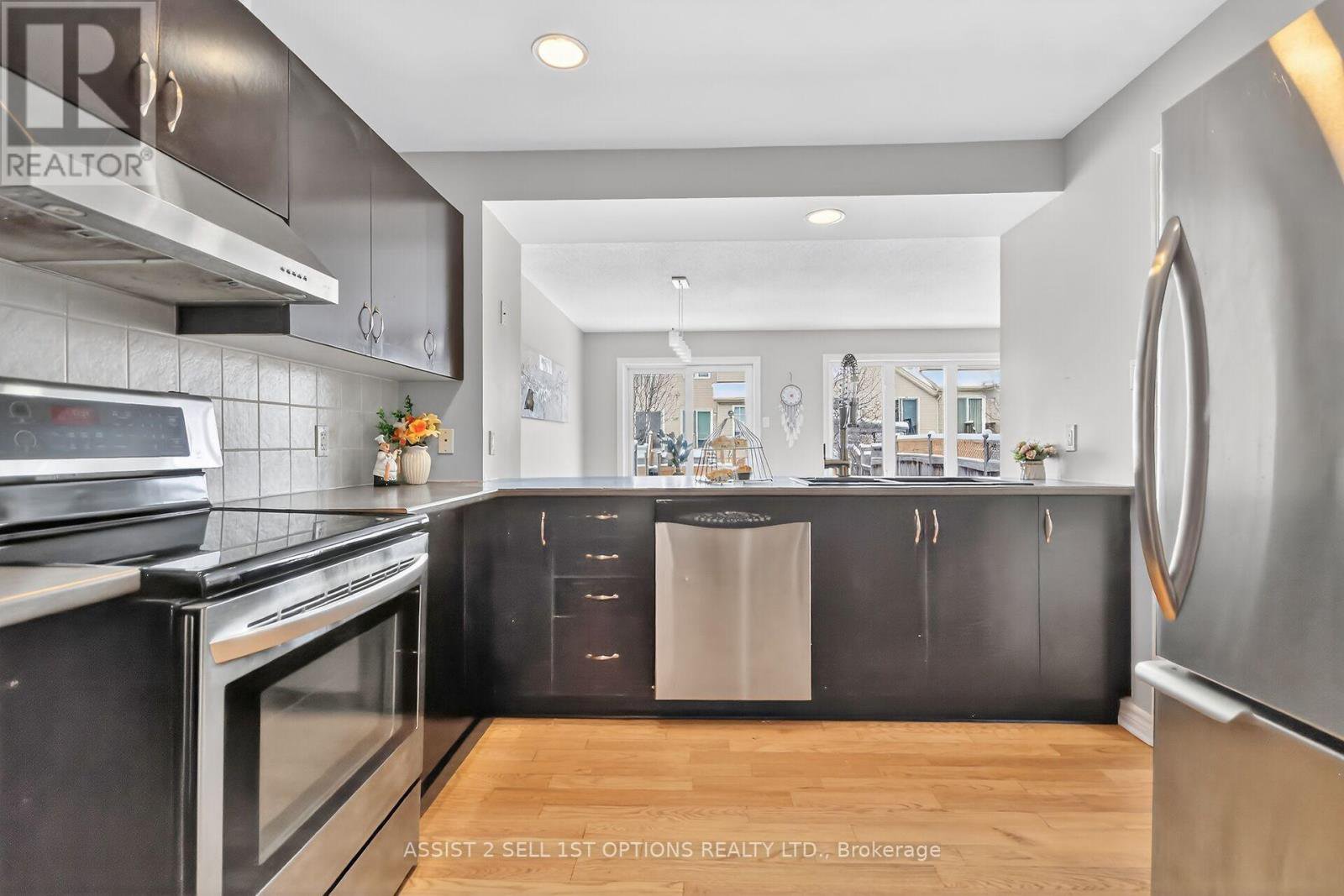 Welcome to 182 Saddlesmith Drive, a beautifully updated and well-maintained townhome offering a bright, functional layout and inviting living spaces. The main level features gleaming refinished hardwood floors and large, bright windows that fill the home with natural light. An open-concept design seamlessly connects the living room, dining area, and kitchen-ideal for both everyday living and entertaining. The living room is anchored by a cozy gas fireplace, creating a warm and welcoming focal point. Ceramic flooring enhances the foyer, kitchen, and all bathrooms, adding durability and style. The home has been freshly painted throughout in tasteful, neutral tones, making it truly move-in ready. The kitchen offers ample counter space with a convenient pantry and breakfast bar which overlooks the main living area, perfect for hosting family and friends. Refinished hardwood railings add a polished touch to the interior. Upstairs, Newer Berber carpeting leads to a spacious primary bedroom that serves as a private retreat, complete with a walk in closet and full ensuite featuring a separate shower and a relaxing soaker tub. Two additional well-sized bedrooms and a full main bathroom complete the upper level. The finished lower level provides versatile living space ideal for a family room, media area, or home gym, along with generous storage and rough in for future bath . Step outside to the fully fenced backyard and enjoy the wonderful deck-perfect for summer barbecues and outdoor relaxation. Additional Updates include : garage fully finished and painted, insulated garage door, aluminum wrapping around the frame, updated weather stripping , freshly painted utility room floor, fixtures, Gas hook up for BBQ and Dryer, much more ! Situated on a quiet street with convenient access to parks, top rated schools, shopping, and transit, this home offers comfort, quality upgrades, and an exceptional opportunity in a desirable Kanata neighbourhood.