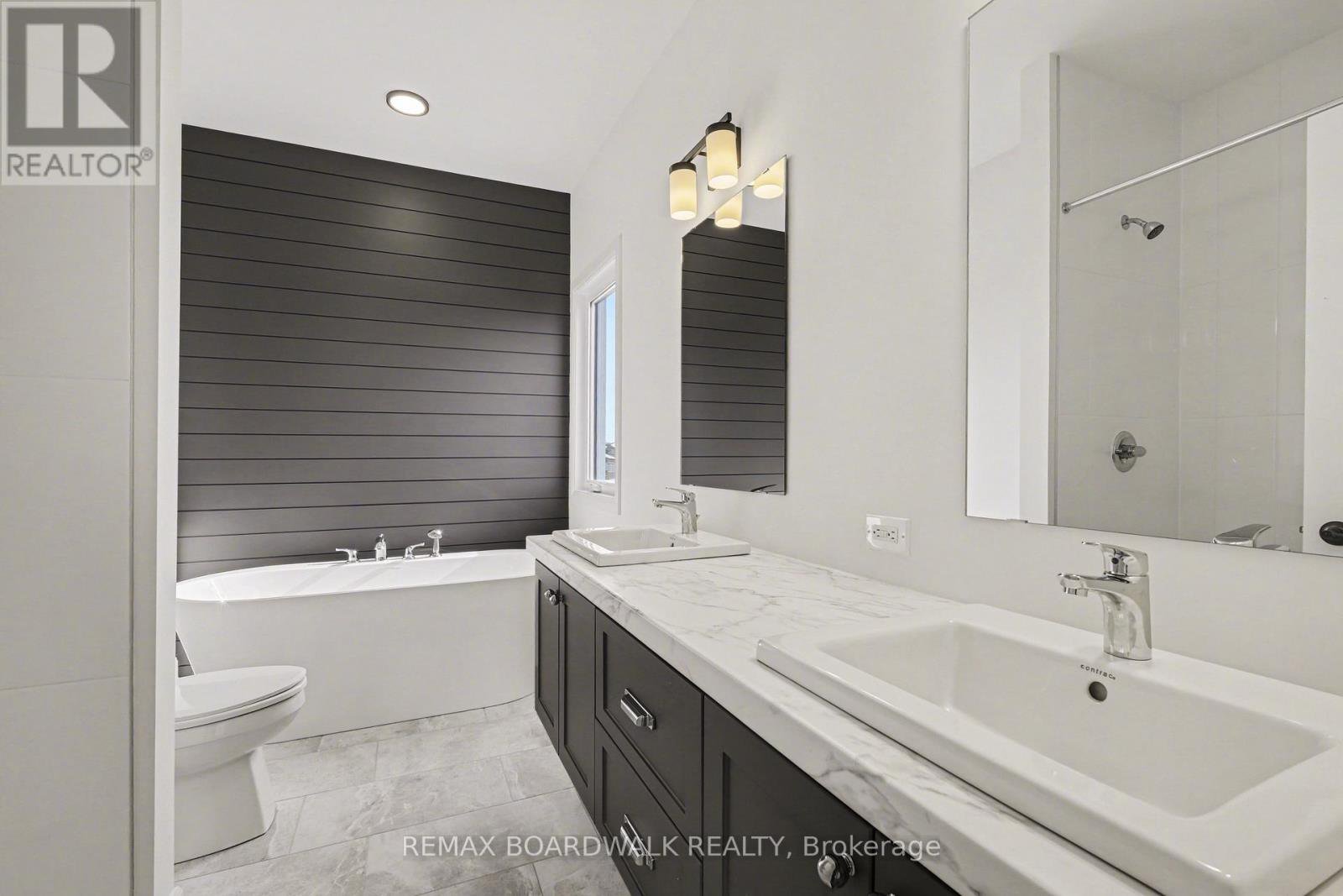 New 2025 - Melanie Construction "Vienna II" Model - Ready February 12, 2026. This stunning 4-bedroom single-family home showcases exceptional craftsmanship, thoughtful upgrades, and a beautifully expanded layout designed for modern living. The upgraded double-car garage has been extended by 2ft, allowing for 2 full garage doors and an enlarged laundry room for added convenience. Step into the impressive sunken front entrance, accented with ceramic tile, and flow into the bright and spacious open-concept main floor. The gourmet kitchen is a true showstopper, featuring quartz countertops, an oversized center island, walk-in pantry, and upgraded finishes throughout. The adjoining family room offers a warm and inviting space highlighted by a beautiful gas fireplace. A front study with French doors and a full closet provides the ideal home office or optional guest room. Additional main-floor upgrades include a man door in the garage and a rear door off the laundry room complete with a landing and stairs for added accessibility. Enjoy outdoor living on the upgraded 12' x 12' rear deck, perfect for relaxing or entertaining. The second level impresses with 9ft ceilings and four generous bedrooms, including a luxurious primary suite featuring coffered ceilings, a massive walk-in closet, cathedral-style ceiling detail, and a spa-inspired ensuite with a roman tub and separate shower. The fully finished basement adds even more value, offering a spacious recreation room, a bedroom, and a full bathroom, all finished with luxury vinyl flooring, along with 9 ft ceilings for an open and airy feel. With its premium upgrades, thoughtful enhancements, and high-quality finishes, this Vienna II model delivers exceptional style, comfort, and functionality for today's modern family.