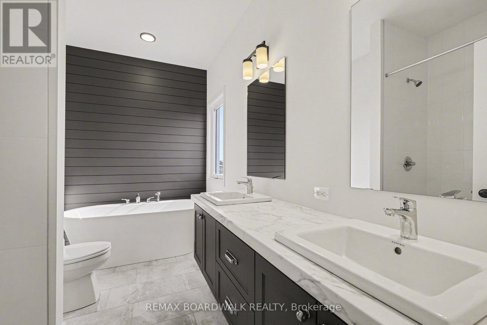 New 2025 - Melanie Construction "Vienna II" Model - Ready. This stunning 4-bedroom single-family home showcases exceptional craftsmanship, thoughtful upgrades, and a beautifully expanded layout designed for modern living. The upgraded double-car garage has been extended by 2ft, allowing for 2 full garage doors and an enlarged laundry room for added convenience. Step into the impressive sunken front entrance, accented with ceramic tile, and flow into the bright and spacious open-concept main floor. The gourmet kitchen is a true showstopper, featuring quartz countertops, an oversized center island, walk-in pantry, and upgraded finishes throughout. The adjoining family room offers a warm and inviting space highlighted by a beautiful gas fireplace. A front study with French doors and a full closet provides the ideal home office or optional guest room. Additional main-floor upgrades include a man door in the garage and a rear door off the laundry room complete with a landing and stairs for added accessibility. Enjoy outdoor living on the upgraded 12' x 12' rear deck, perfect for relaxing or entertaining. The second level impresses with 9ft ceilings and four generous bedrooms, including a luxurious primary suite featuring coffered ceilings, a massive walk-in closet, cathedral-style ceiling detail, and a spa-inspired ensuite with a roman tub and separate shower. The fully finished basement adds even more value, offering a spacious recreation room, a bedroom, and a full bathroom, all finished with luxury vinyl flooring, along with 9 ft ceilings for an open and airy feel. With its premium upgrades, thoughtful enhancements, and high-quality finishes, this Vienna II model delivers exceptional style, comfort, and functionality for today's modern family.