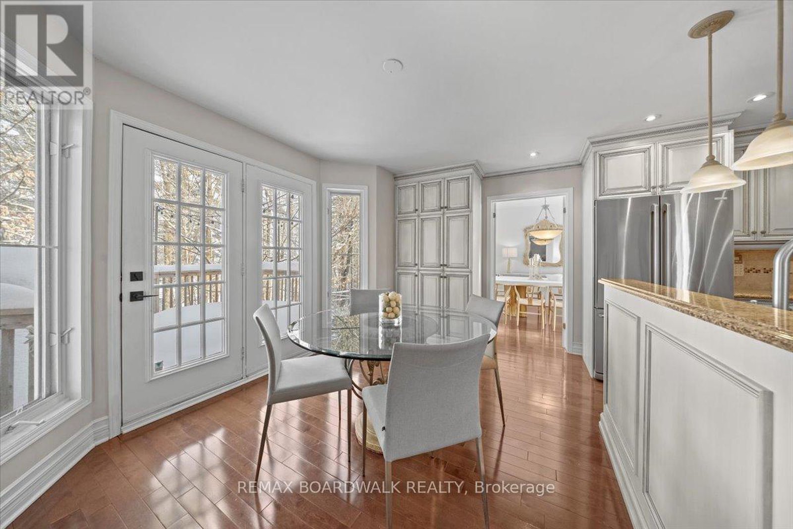 Prestigious 4+1 bedroom home w/pie-shaped rear yard backing onto ravine, twin garage doors, multiple roof peaks, curved transom windows, brick front exterior, interlock walkway, covered front entrance, modern front door w/vertical transom, foyer w/ceramic tile & closet, high baseboards, Victoria-style open hardwood staircase & 2-storey high ceiling, living room w/vaulted ceilings, wide-plank hardwood flooring & oversized windows, dining room w/ravine views & butler doors, stylish centre-island kitchen w/granite countertops, recessed sink, pot drawers, marble backsplash, detailed upper and lower mouldings, custom hood-fan, built-in oven & microwave, 4 x burner induction cooktop, deep 24-inch pantry w/pull-out shelving, eating area w/panoramic windows & twin garden doors onto elevated entertainment-sized deck, sunken family room w/pot lighting & wood-burning fireplace framed in marble, open main-floor den w/glass doors & California shutters, 2-pc powder room, main-floor laundry room w/soaker sink & side-door entrance, 2nd level landing w/hardwood, mezzanine railings & linen closet, primary bedroom retreat w/French doors, multiple windows, soft pot lighting, updated spa-style ensuite w/double raised boxed sinks & waterfall taps, quartz-topped vanity, oversized ceramic tile flooring, double-wide glass shower w/rain head and European faucet, stand alone soaker tub positioned w/serene ravine views, deep double-sided walk-in closet, 3 x additional bedrooms w/generous closet space, 4-pc main bathroom w/extra linen storage & window bench seat, straight staircase to multifunctional recreation room w/9-ft high ceilings, twin oversized chest-height windows, coffered ceiling, pot lighting, gas fireplace & entertainment bar, 5th bedroom w/double closets, 3-pc bathroom w/stand-up shower, exercise room w/seasonal closet, storage room w/built-in shelving, rear yard framed by mature trees & side fencing, 2x car garage w/inside access, 24 Hour Irrevocable on Offers