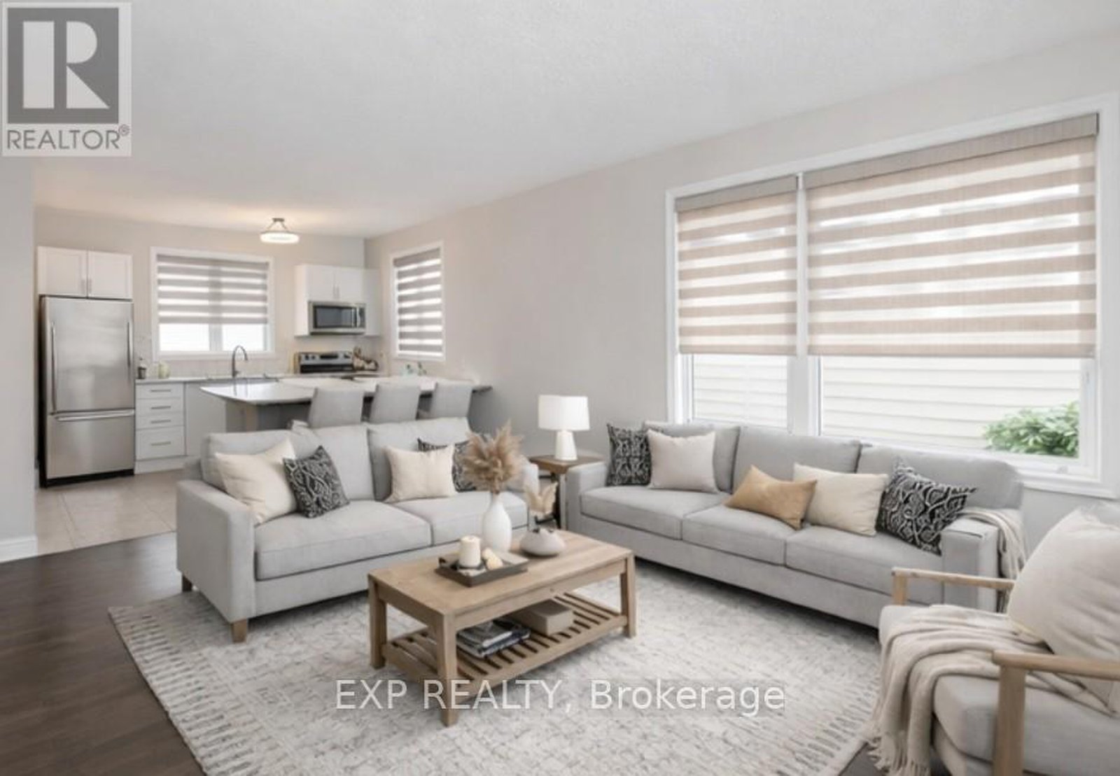 Welcome to Loury Row in the heart of Orleans Village, where modern design, quality craftsmanship, and thoughtful upgrades come together in this 2020-built, 3-bedroom home offering 3 full bathrooms plus a convenient main-floor powder room. Designed for both comfort and functionality, the open-concept main level features a well-appointed kitchen with stainless steel appliances, granite countertops, upgraded ceramic tile backsplash, breakfast bar, and direct access to the backyard, making it ideal for everyday living and entertaining. Hardwood flooring and a hardwood staircase, paired with 9' ceilings, large windows, and custom modern window blinds, create a bright and inviting atmosphere throughout the living and dining areas. The second level offers three generously sized bedrooms, a convenient upper-level laundry room, and two full bathrooms, including a spacious primary bedroom with ensuite privileges. The fully finished lower level adds valuable living space with a large family room and an additional full bathroom, offering excellent flexibility for a home office, guest suite, gym, or recreation area. Finished in modern, neutral tones and upgraded directly through the builder, this home includes approximately $40,000 in upgrades, including a full basement bathroom, upgraded upstairs laundry room, hardwood flooring and staircase throughout the main and second floors, enhanced backsplash, and upgraded light fixtures throughout. Ideally located close to schools, parks, shopping, transit, and all amenities Orleans has to offer, this move-in-ready home delivers comfort, style, and long-term value for today's discerning buyer. Currently Tenanted Month to Month @ 2700.00/month or 60 Days Buyers Notice for Vacant Possession.