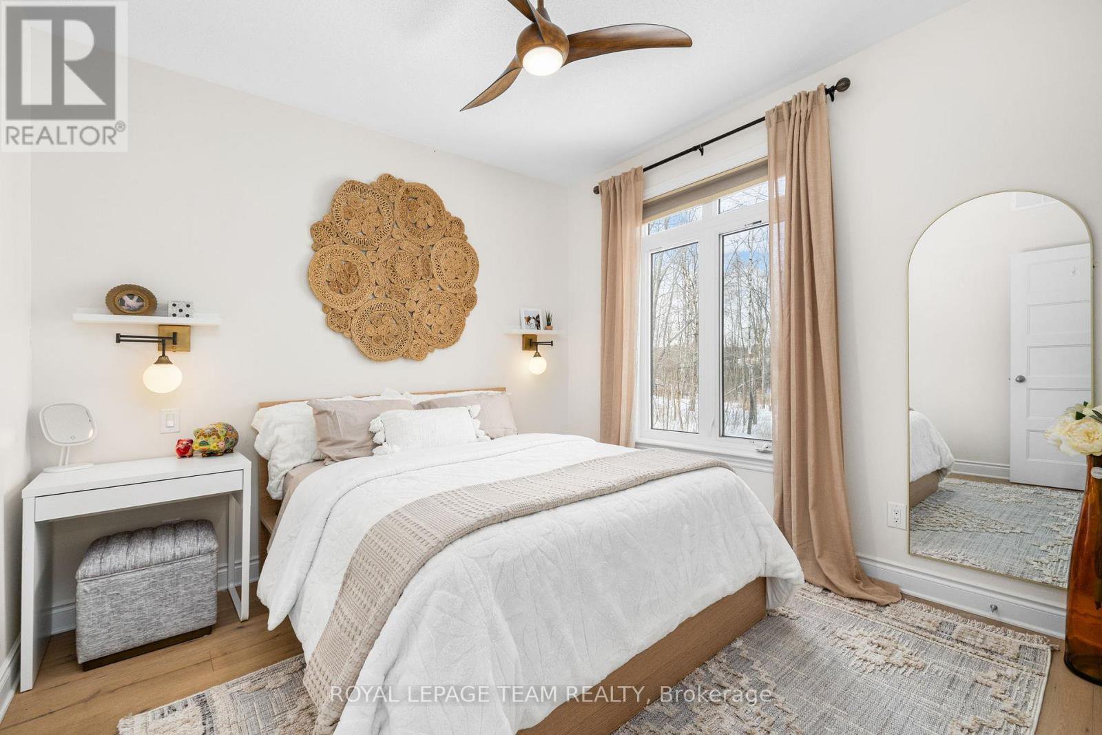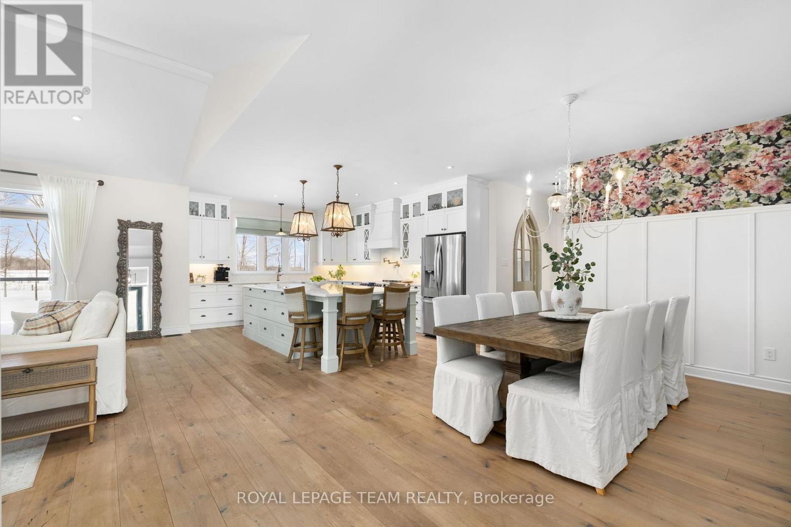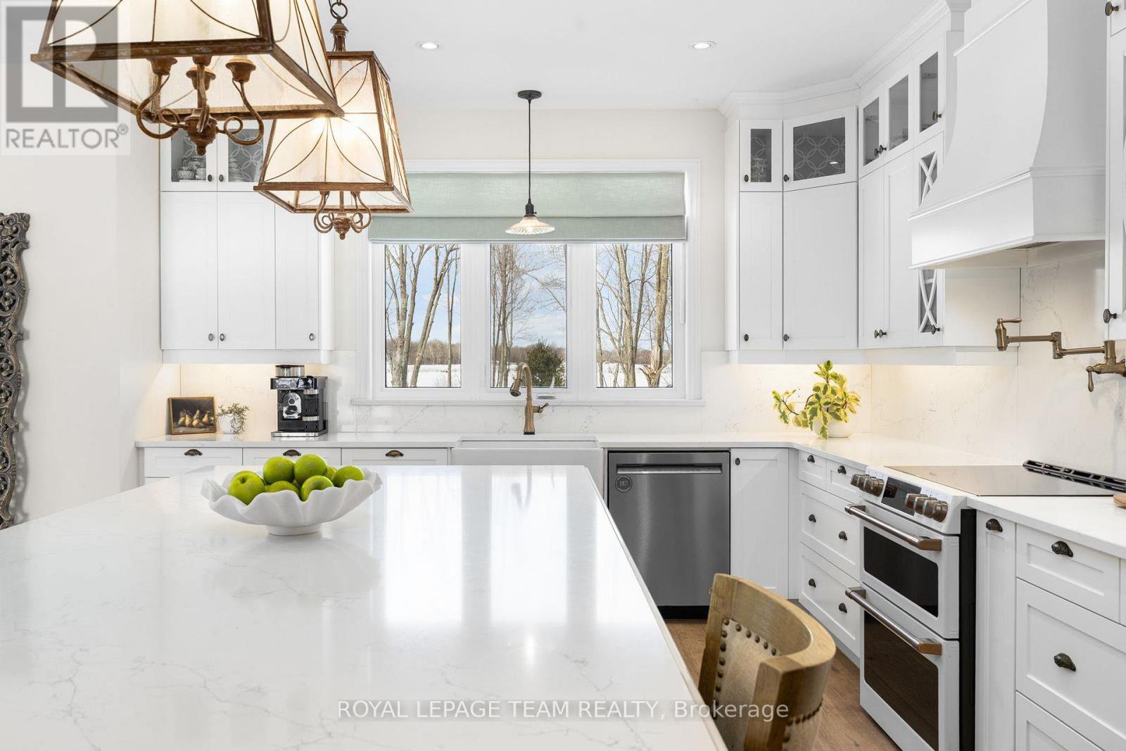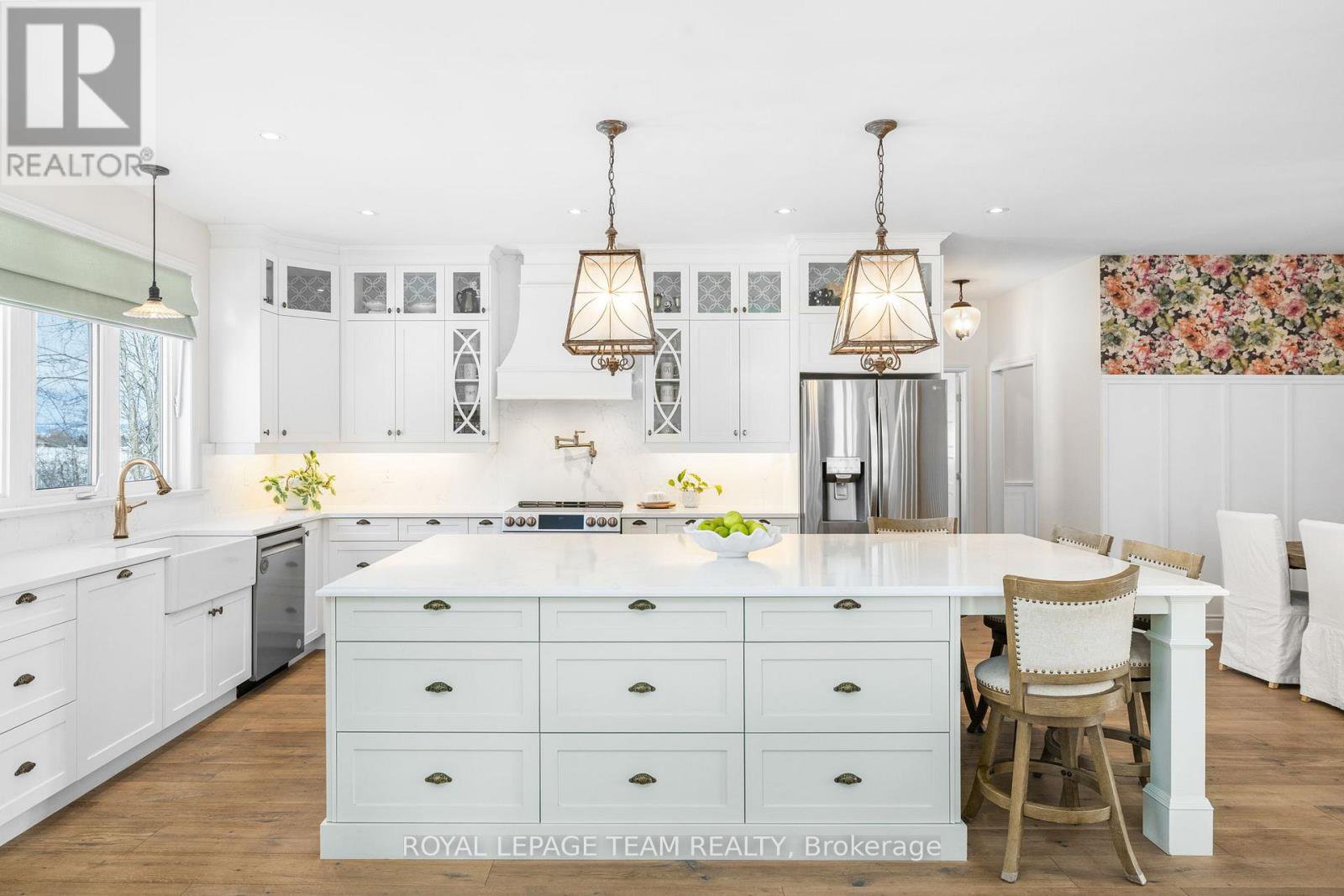 Welcome to 26 Synergy Way, an exceptional custom-built residence located in prestigious March Crest Estates. Nestled on over 2 private, treed acres in rural Kanata and backing onto open farmland, this property offers peaceful surroundings, and sweeping views of the Gatineau Hills. Built in 2018 by Grizzly Homes, this meticulously crafted home blends refined design, thoughtful functionality, and outstanding craftsmanship throughout. The main level features a bright, open-concept layout ideal for both everyday living and entertaining. A chef-inspired kitchen showcases quartz counters & backsplash, extra-tall stacked cabinetry, built-in microwave, pot filler, stainless steel appliances, and an impressive 10' x 5' island with extensive storage and seating. The dining area & vaulted great room offers designer lighting, pot lights, and a striking 12' real stone gas fireplace with reclaimed barn beam mantle. Sliding doors lead to a two-storey TREX composite deck with glass railings, perfect for enjoying panoramic views. Three bedrooms on the main level, including a stunning primary suite with vaulted ceilings, walk-in closet, and award-winning 5-piece ensuite with heated floors. A spacious mudroom/laundry area with built-ins offers convenient access to the heated triple-car garage. Wide-plank brushed white oak hardwood flooring throughout main level. The walk-out lower level includes a fully self-contained 1,600 sq.ft. in-law or nanny suite with two bedrooms, full kitchen, living room with electric fireplace, in-suite laundry, private garage entrance, access to a lower deck & park-like backyard. Additional unfinished space provides excellent storage. Extensive upgrades include an oversized paved driveway, Generlink 12,000W generator, irrigation system, landscaped gardens with mature trees & fruit plantings, firepit, shed, and meticulous ongoing maintenance. Stylish, versatile, and impeccably cared for, this one-of-a-kind home offers an extraordinary lifestyle opportunity.