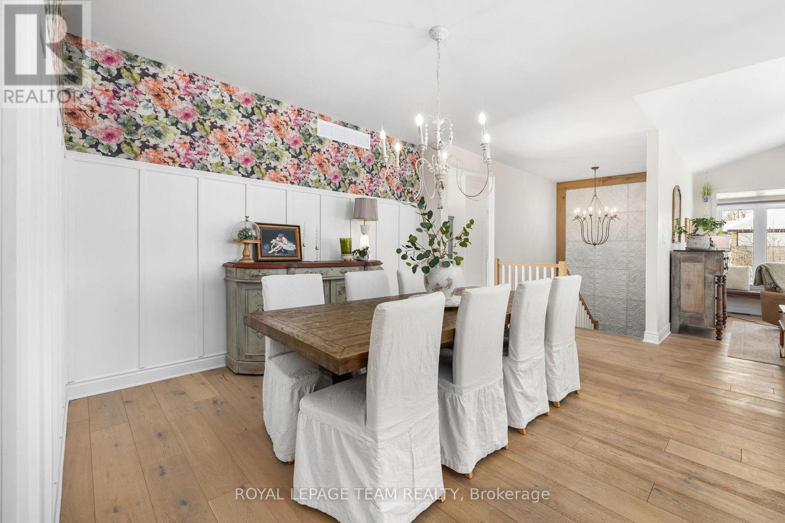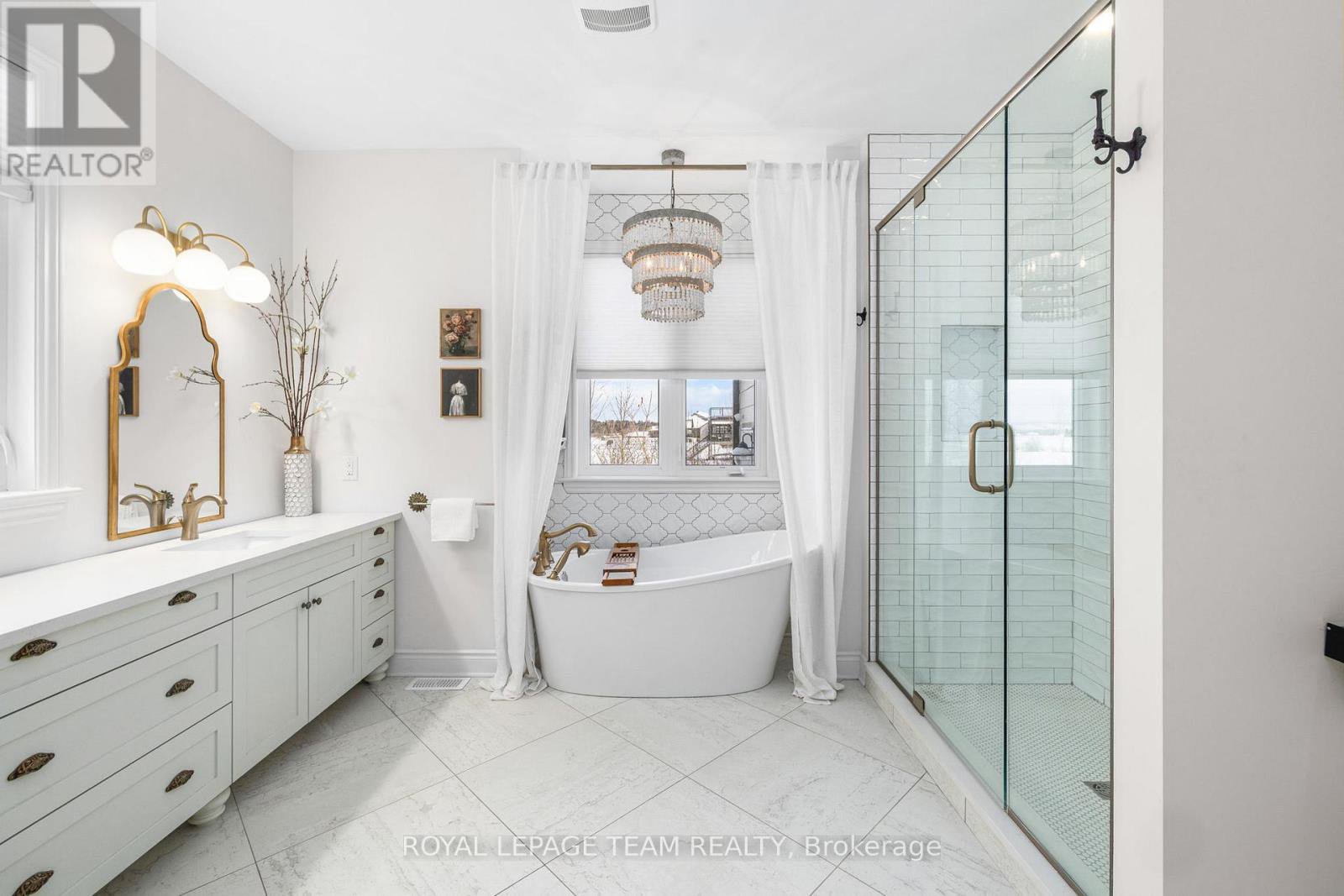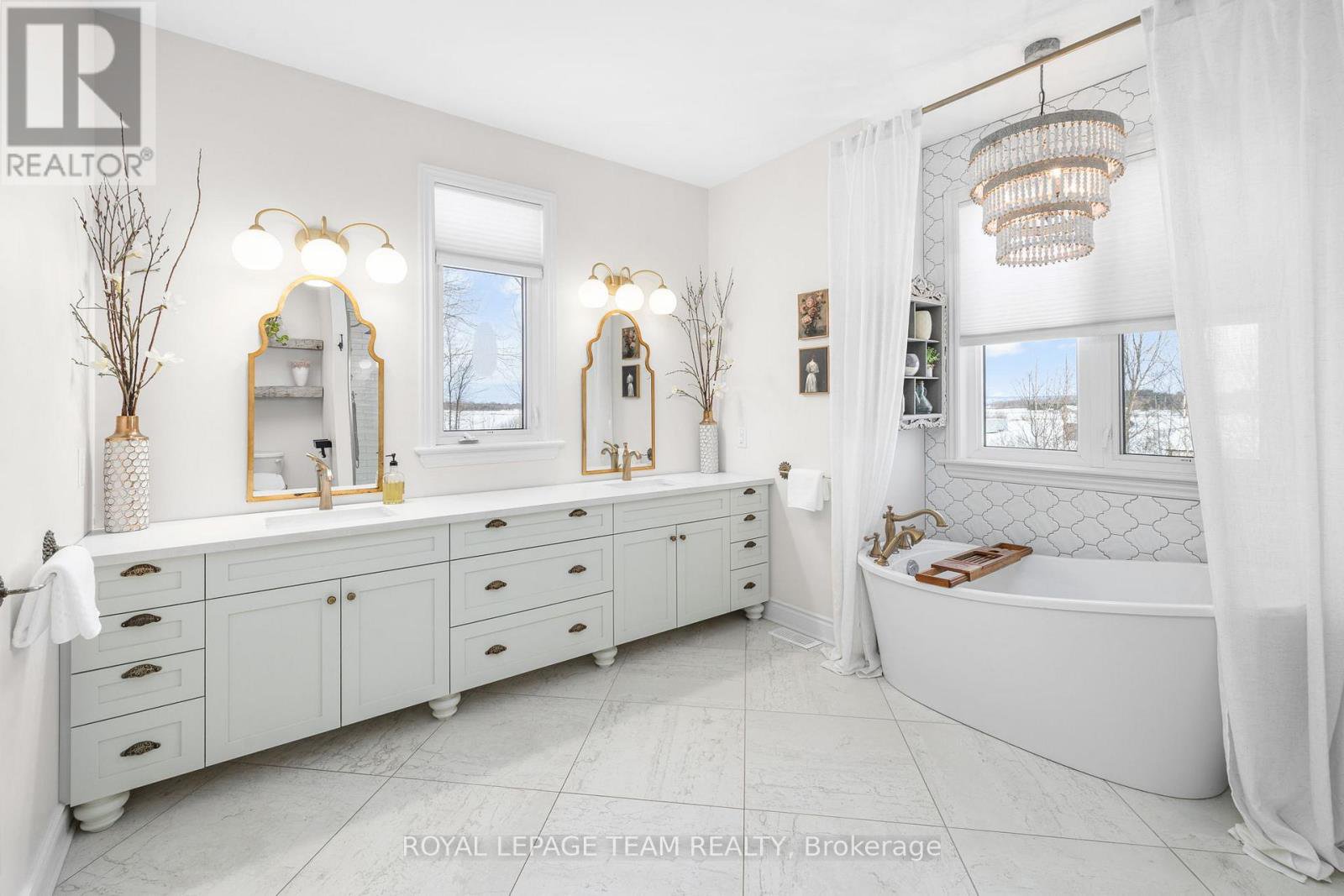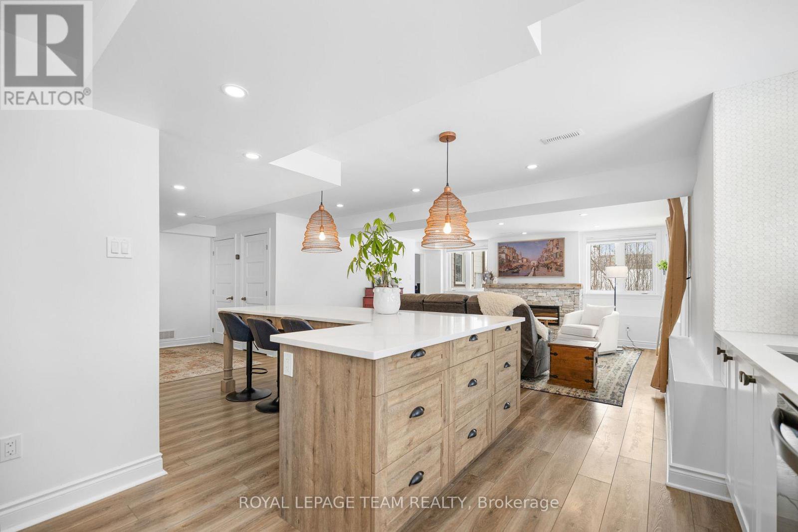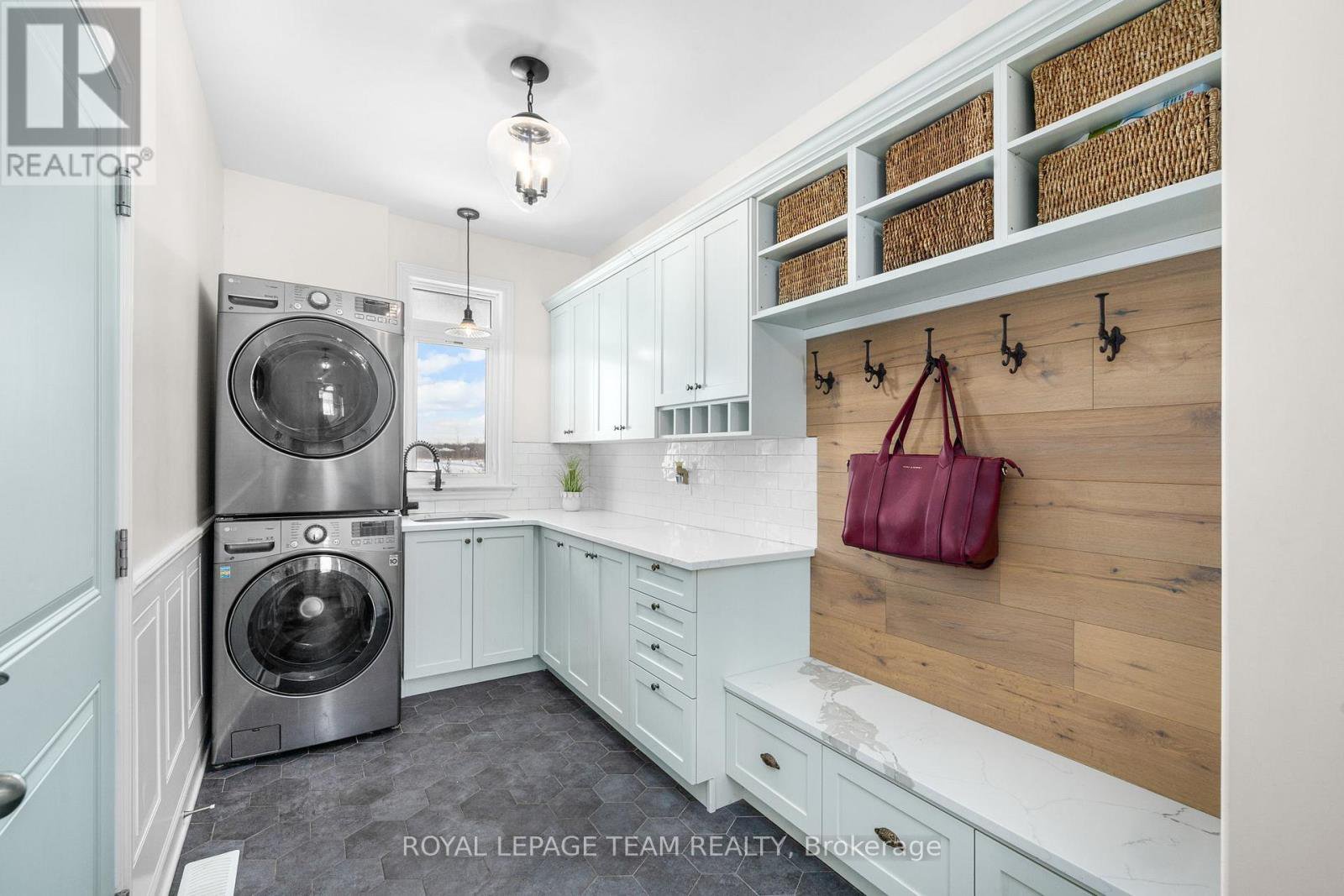 Welcome to 26 Synergy Way, an exceptional custom-built residence located in prestigious March Crest Estates. Nestled on over 2 private, treed acres in rural Kanata and backing onto open farmland, this property offers peaceful surroundings, and sweeping views of the Gatineau Hills. Built in 2018 by Grizzly Homes, this meticulously crafted home blends refined design, thoughtful functionality, and outstanding craftsmanship throughout. The main level features a bright, open-concept layout ideal for both everyday living and entertaining. A chef-inspired kitchen showcases quartz counters & backsplash, extra-tall stacked cabinetry, built-in microwave, pot filler, stainless steel appliances, and an impressive 10' x 5' island with extensive storage and seating. The dining area & vaulted great room offers designer lighting, pot lights, and a striking 12' real stone gas fireplace with reclaimed barn beam mantle. Sliding doors lead to a two-storey TREX composite deck with glass railings, perfect for enjoying panoramic views. Three bedrooms on the main level, including a stunning primary suite with vaulted ceilings, walk-in closet, and award-winning 5-piece ensuite with heated floors. A spacious mudroom/laundry area with built-ins offers convenient access to the heated triple-car garage. Wide-plank brushed white oak hardwood flooring throughout main level. The walk-out lower level includes a fully self-contained 1,600 sq.ft. in-law or nanny suite with two bedrooms, full kitchen, living room with electric fireplace, in-suite laundry, private garage entrance, access to a lower deck & park-like backyard. Additional unfinished space provides excellent storage. Extensive upgrades include an oversized paved driveway, Generlink 12,000W generator, irrigation system, landscaped gardens with mature trees & fruit plantings, firepit, shed, and meticulous ongoing maintenance. Stylish, versatile, and impeccably cared for, this one-of-a-kind home offers an extraordinary lifestyle opportunity.