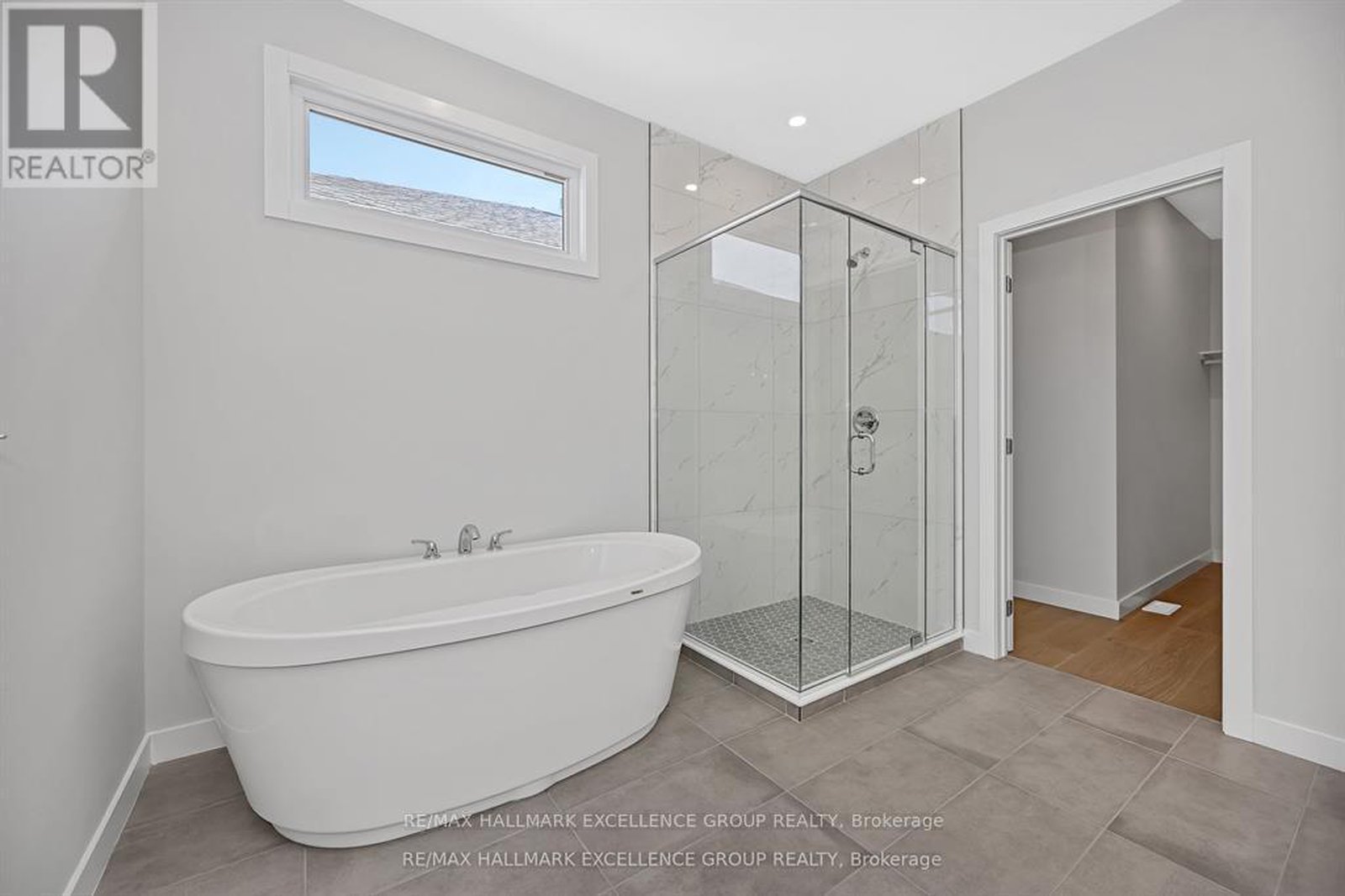 Brand-new above average bungalow offering elegant design and modern comfort! This stunning 1,862 sq ft home features a timeless stone façade, a double garage with access to inside, and an inviting layout perfect for todays lifestyle. Step inside to a spacious foyer with a walk-in closet, leading to an impressive open-concept living space that blends the kitchen, dining & living areas seamlessly... Ideal for entertaining and everyday living. The gourmet kitchen boasts quartz countertops, a pantry, backsplash, quality cabinetry with pull-out drawers, and a functional island with built-in recycling station. Enjoy easy access from the dining & living areas to the exterior deck overlooking a deep backyard, perfect for summer gatherings. The primary bedroom offers a peaceful retreat with a luxurious ensuite featuring a soaker tub, walk-in tile/glass shower, double vanity, and walk-in closet. Two additional bedrooms provide ample space with generous closets. A secondary side entrance conveniently connects to both the main floor hallway and the unfinished basement, which is roughed-in for a full in-law suite offering future income potential or multi-generational living flexibility. Additional features include ceramic & wide plank hardwood flooring throughout, owned furnace & air exchanger, 200 amp electrical panel, and immediate possession available. 24 Hours Irrevocable on all offers. Some photos virtually staged.