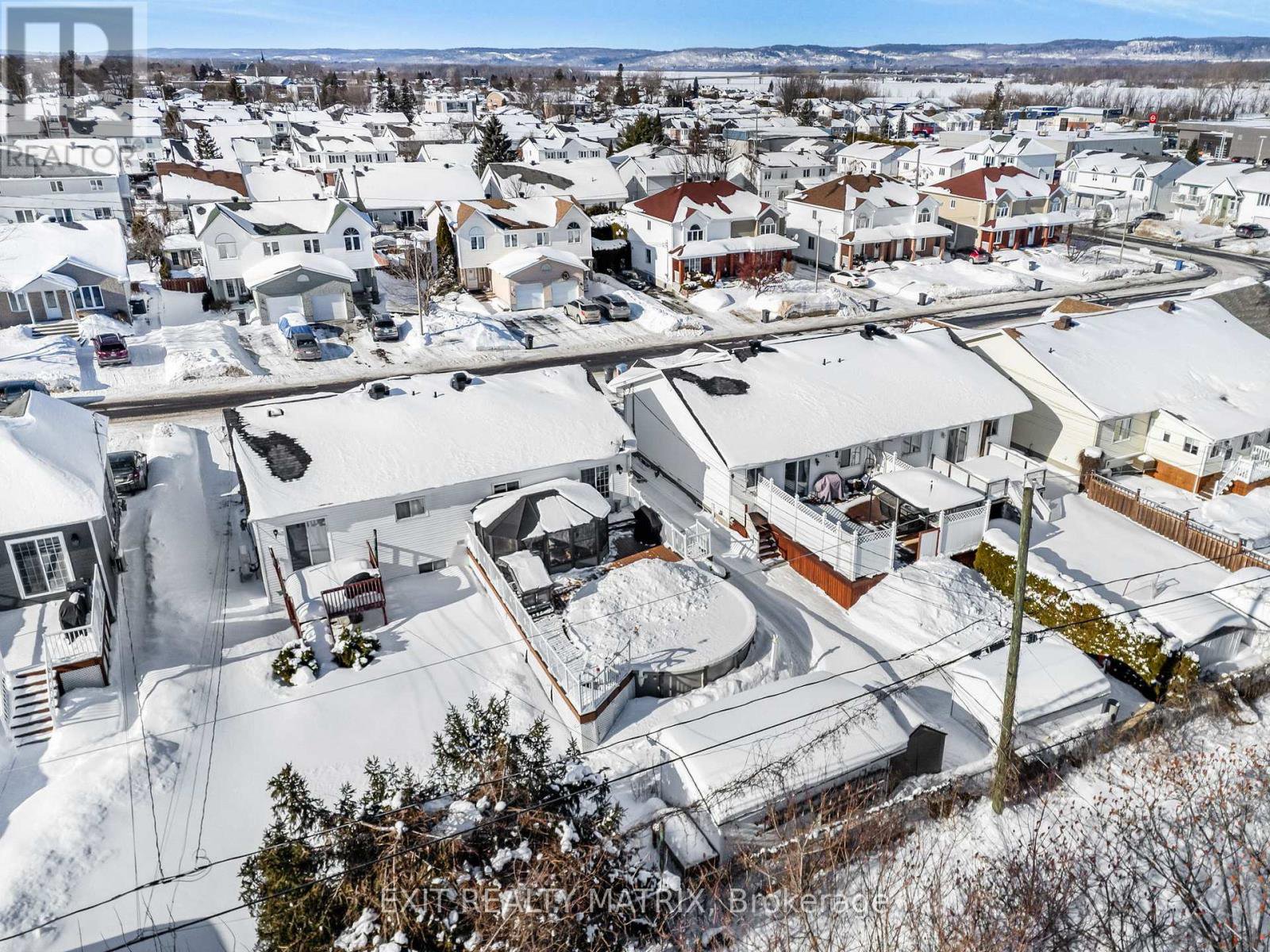 SEMI-DETACHED home, ideally located on a quiet dead-end street at 443 Christine Street in Hawkesbury. The main floor offers a bright open-concept living room with bow window, dining area, and kitchen with epoxy countertops, beautifully redone in 2014 and complete with refrigerator, built-in cooktop & stove, and dishwasher. The primary bedroom and a full bathroom are also conveniently located on the main level. This home is designed for everyday comfort with features such as central vacuum and a wall-mounted air conditioning unit. The fully finished basement provides two additional bedrooms, a partial bathroom, and extra space perfect for a family room or recreational area. Step outside to enjoy a private backyard oasis featuring extensive hardscaping, a composite deck, a natural gas Napoleon BBQ, an above-ground pool, and a 10 x 20 storage shed. The roof was redone in 2011, adding peace of mind for future owners. A great opportunity to own a move-in-ready home in a desirable, family-friendly neighborhood.