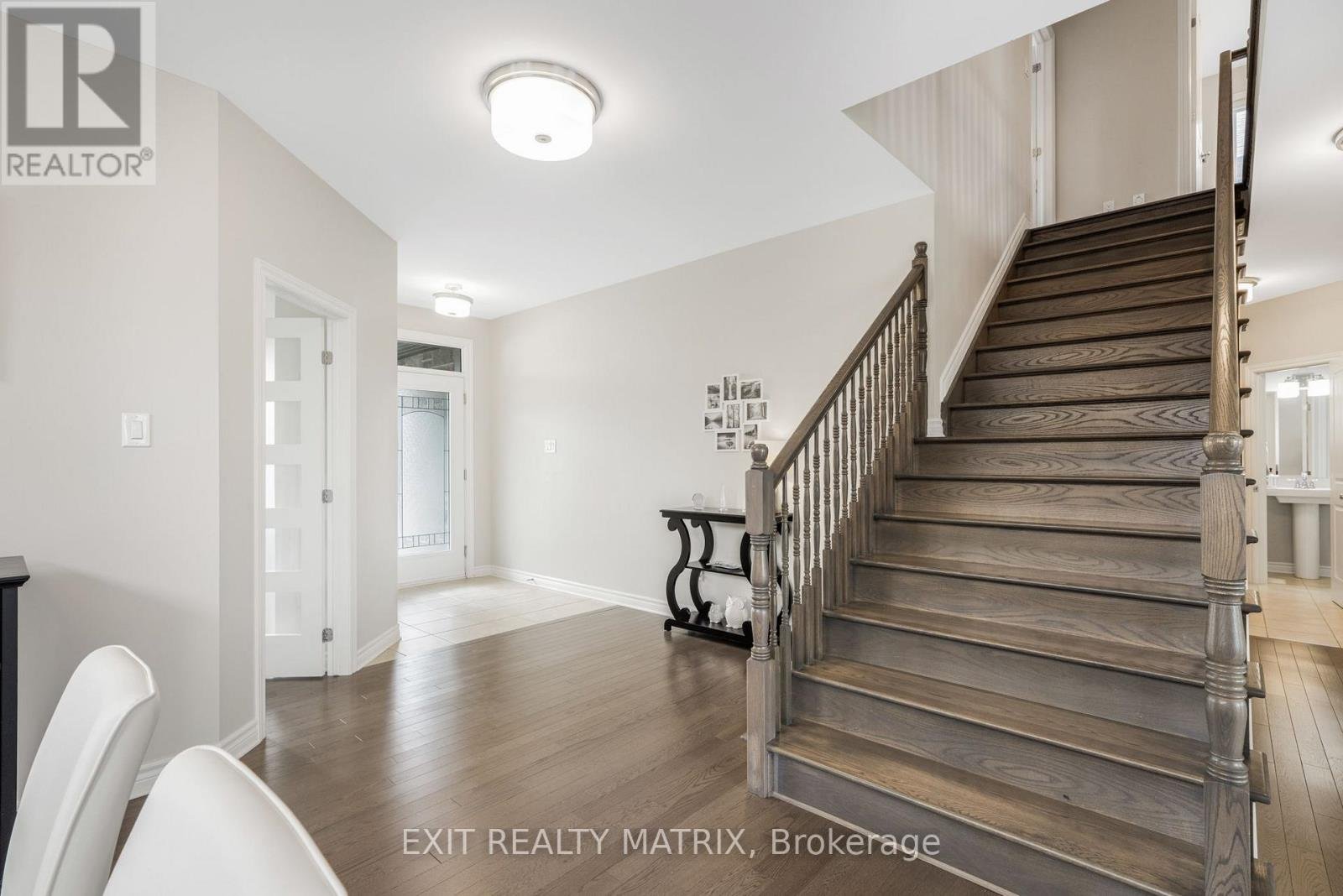 Stylish, spacious, and perfectly positioned, this impressive two-storey corner-lot home is tucked into one of the area's most sought-after, family-friendly neighborhoods. Surrounded by lush hedges and a sleek PVC fence, it offers enhanced privacy with standout curb appeal. Inside, discover 5 bedrooms plus a main-floor den/office that can easily be converted to an additional bedroom, and 4 bathrooms, offering generous space for growing families. The open-concept layout is filled with natural light and thoughtful design, featuring a front office, formal dining room, and a striking double-sided fireplace with a warm oak mantel connecting the main living areas. The chef-inspired kitchen is the heart of the home, complete with quartz countertops, a stylish backsplash, a large island, and a walk-in pantry. A bright dining nook with vaulted ceilings and backyard access adds charm and versatility, all set atop elegant engineered hardwood flooring. Upstairs, four spacious bedrooms and two full bathrooms provide comfort and convenience for the whole family. The primary suite is a luxurious escape with a spa-like 5-piece ensuite and walk-in closet. The fully finished basement adds even more living space with a large family room, an extra bedroom, and a full bathroom, ideal for guests, teens, or entertaining. Step outside to your private backyard retreat with a shed and space to unwind. With parks, scenic walking trails, and everyday amenities just moments away, this home blends comfort, privacy, and location in one irresistible package.