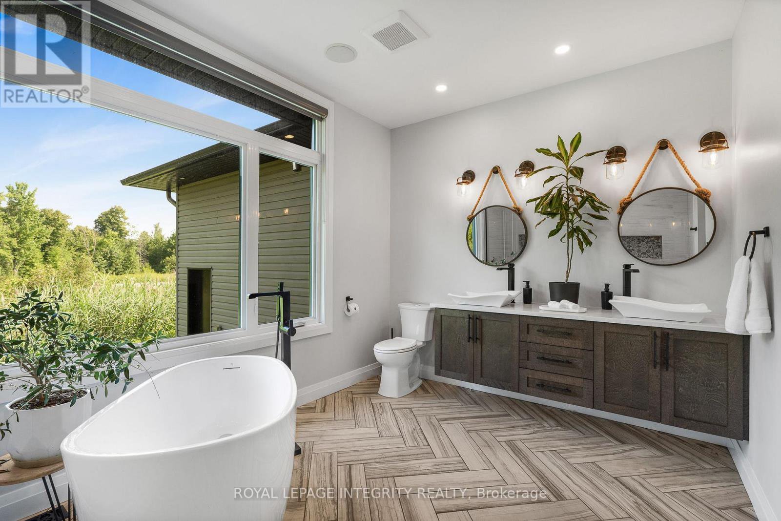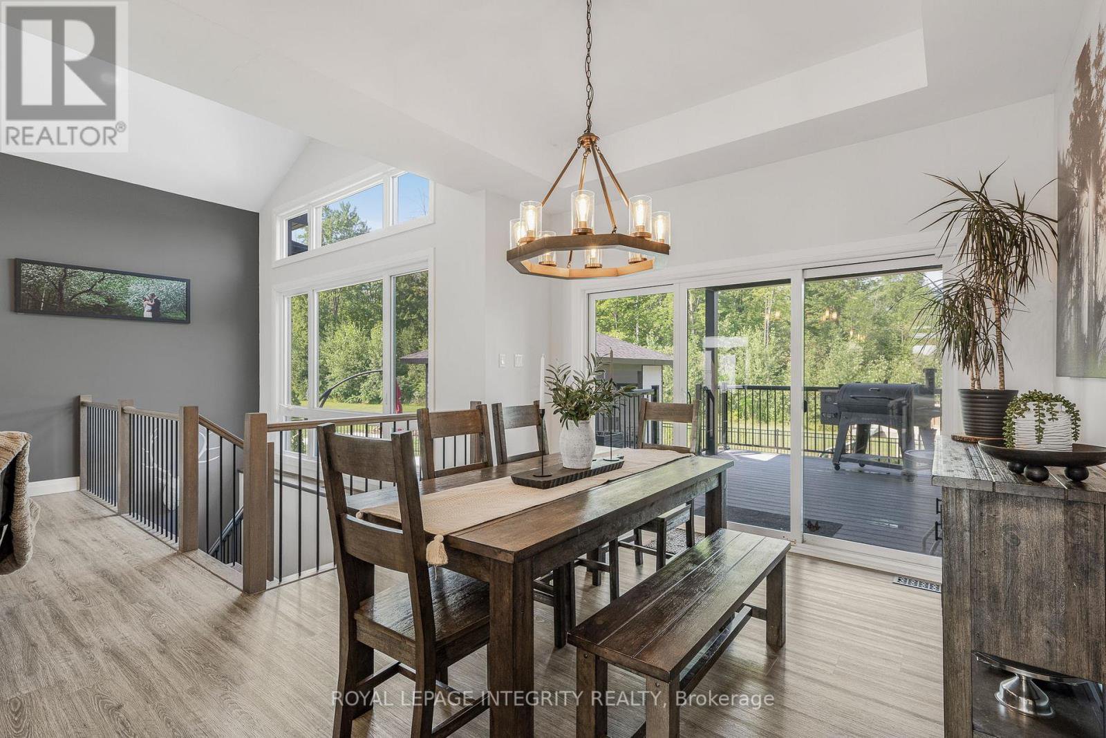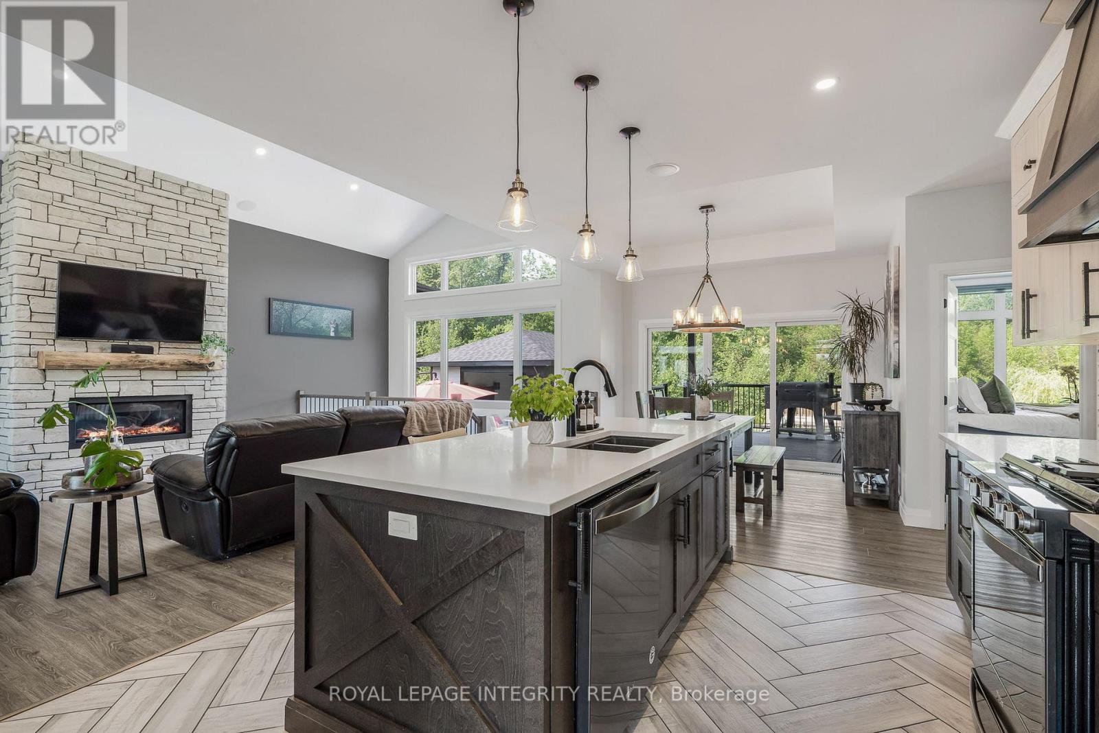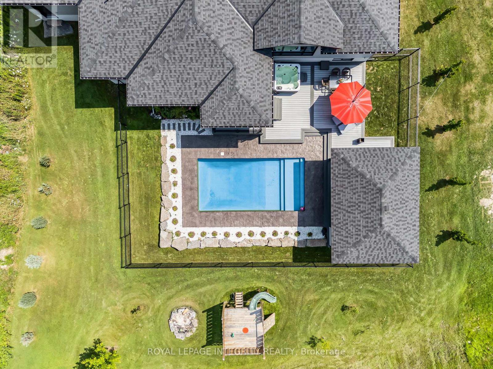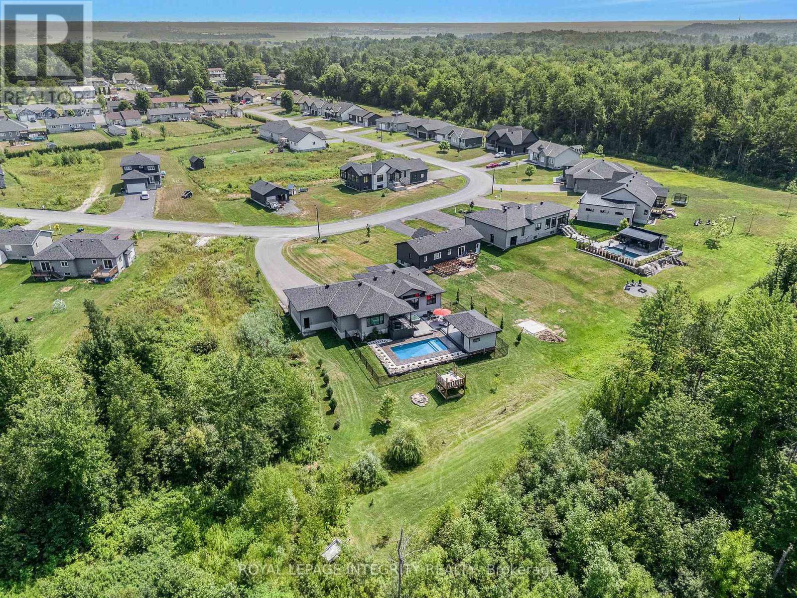 Welcome to this exceptional 3+1 bedroom, 3.5 bathroom custom-built bungalow, thoughtfully designed with high-end finishes and modern comfort in mind. Set on a private, landscaped lot, this home offers a perfect blend of style, function, and serenity. The open-concept main level features vaulted ceilings, wide plank flooring, and oversized windows that flood the space with natural light. The chefs kitchen impresses with quartz countertops, two-tone cabinetry, a statement backsplash, and a large island ideal for both cooking and entertaining. The primary suite is a true retreat with a luxurious ensuite boasting a freestanding soaker tub, walk-in shower with custom tile, and expansive windows with views of nature. The fully finished basement adds a spacious recreation room, a fourth bedroom, full bath, and room for a gym or office. Step outside to your own private oasis: a beautifully fenced yard with an inground pool, hot tub, and multi-level composite deck, offering the perfect setting for relaxation or entertaining. Complete with an oversized three-car garage, paved driveway, and surrounded by greenery, this property offers refined living in a peaceful, family-friendly location just minutes to local amenities.