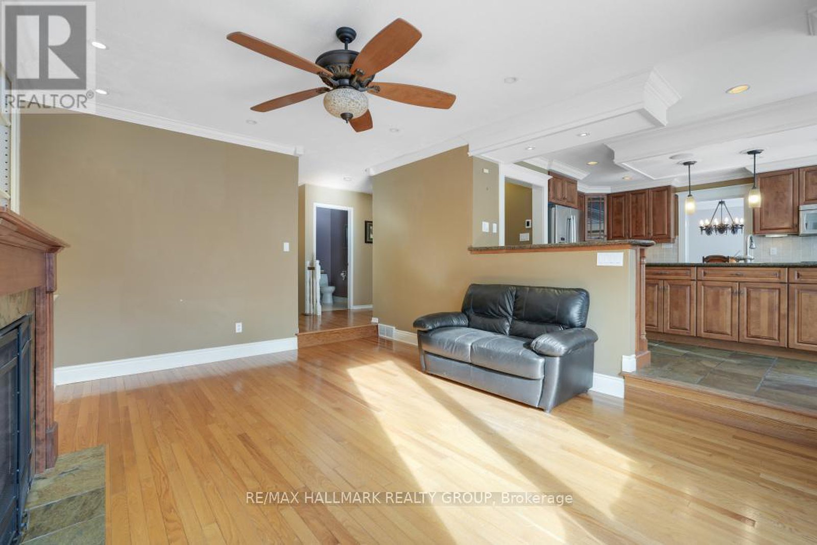 Welcome to 41 Bramblegrove Crescent-a spacious and unique Greenboro home with double-garage, on a 6,600 sq ft (according to MPAC) pie-shaped lot. This well-cared-for property offers 5 bedrooms above ground, 3 bathrooms, and hardwood floors on the main and second levels. The updated kitchen includes a centre island, granite counters, stainless steel appliances, gas stove, walk-in pantry, built-in banquet, breakfast bar and heated flooring. The sunken family room features a gas fireplace and built-ins. The kitchen overlooks the backyard, and connecting seamlessly to large living and dining rooms with French and pocket doors. Upstairs, the primary bedroom boasts a 5-piece ensuite with double sinks, vanity, separate shower, his & hers closets, and a whirlpool tub; four additional bedrooms and a main bath complete this floor. The finished basement provides a recreation area, workshop, office, and very functional storage. The backyard has an extra high privacy fence believed to have been installed by the city of Ottawa. Outside, enjoy a private and peaceful, landscaped, treed backyard with deck, flagstone patio, gazebo, waterfall and pond, plus direct access to walking trails and parkland. Just a short walk to Roberta Bondar Public School (Grs 1-8), St. Marguerite d'Youville School (JK-6), Diane Deans Community Centre, and LRT nearby at South Keys Station, with 2 major grocery stores only 5 minutes away. Go and Show. "Other" in measurements are storage rooms, and a roughed-in bathroom.