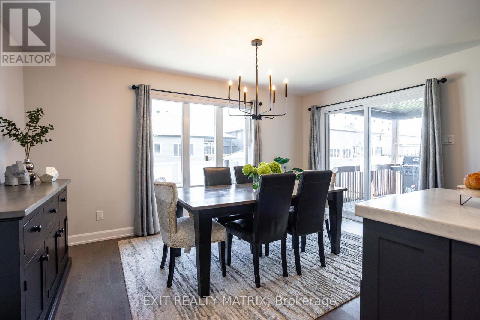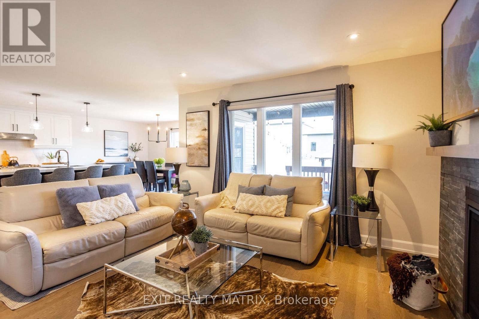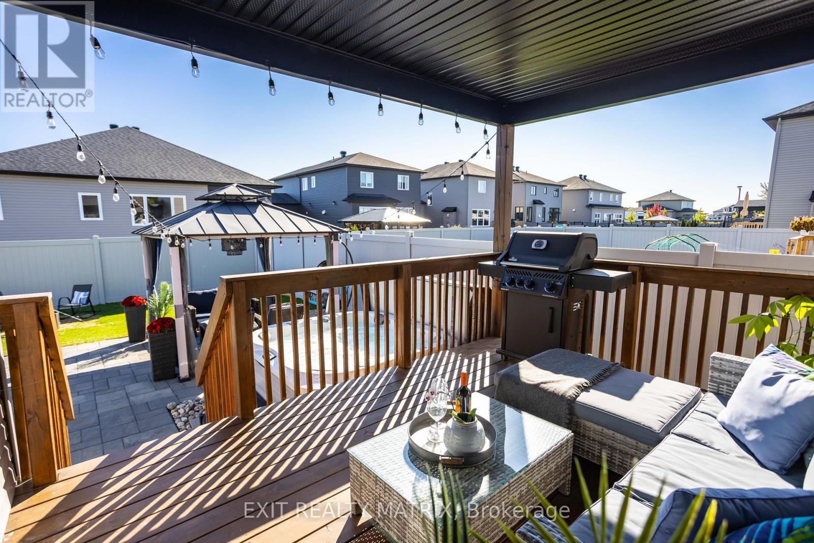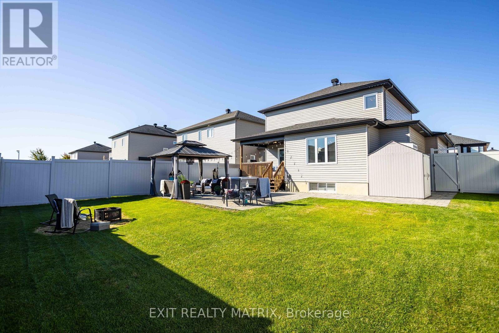 Welcome to 521 Marseille Street, a beautifully upgraded Melanie Construction modified Terracotta model designed to meet the needs of today's families. With 4 bedrooms and 4 bathrooms, this home offers the perfect blend of comfort, functionality, and flexibility, whether you're raising a family, accommodating multiple generations, running a home-based business, or exploring opportunities for rental income. Step into a bright and inviting foyer that flows seamlessly to a dedicated office and convenient half bath. Beyond, the main floor opens into a spacious living area anchored by a gas fireplace with a striking stone surround. The kitchen is a true centrepiece, featuring ceiling-height cabinetry, stainless steel appliances, a stylish centre island with seating for four, and a walk-in pantry. The dining room has been thoughtfully extended from the original builder's plan, creating an ideal space for gatherings and celebrations. Up the elegant hardwood staircase, the primary suite boasts a walk-in closet and a luxurious 4-piece ensuite. Two additional bedrooms, both with walk-in closets, and a full bathroom complete this level. The lower level offers incredible flexibility with its private exterior access. Currently set up for an aesthetics business, it includes a reception/rec area, treatment room, additional bedroom, and a full bathroom. With minimal modifications, it could serve as an extended living space, a spacious in-law suite, private guest quarters, or a rental unit that generates income. Outdoors, enjoy a fully fenced yard with an interlock patio, gazebo, hot tub, and a covered deck, perfect for year-round entertaining. Located in the welcoming community of Embrun, you're minutes from schools, shopping, recreation facilities, and parks, with an easy commute to Ottawa for work or play. This property combines small-town charm with modern convenience, making it an exceptional opportunity for today's lifestyle.