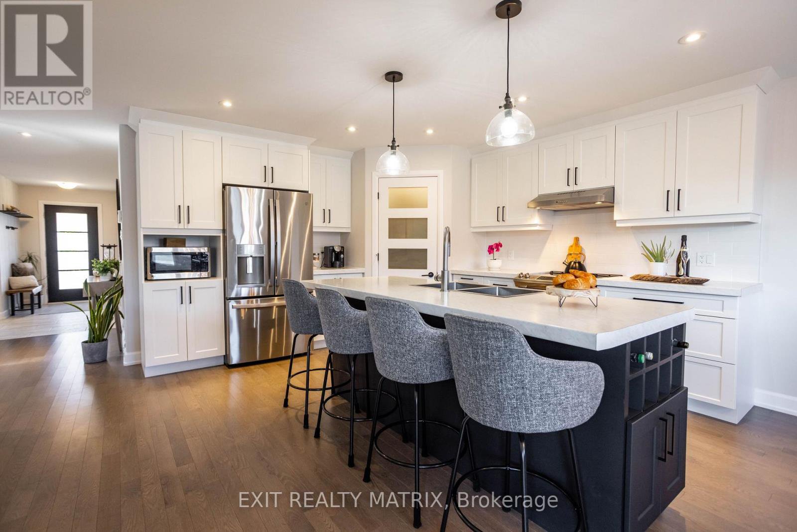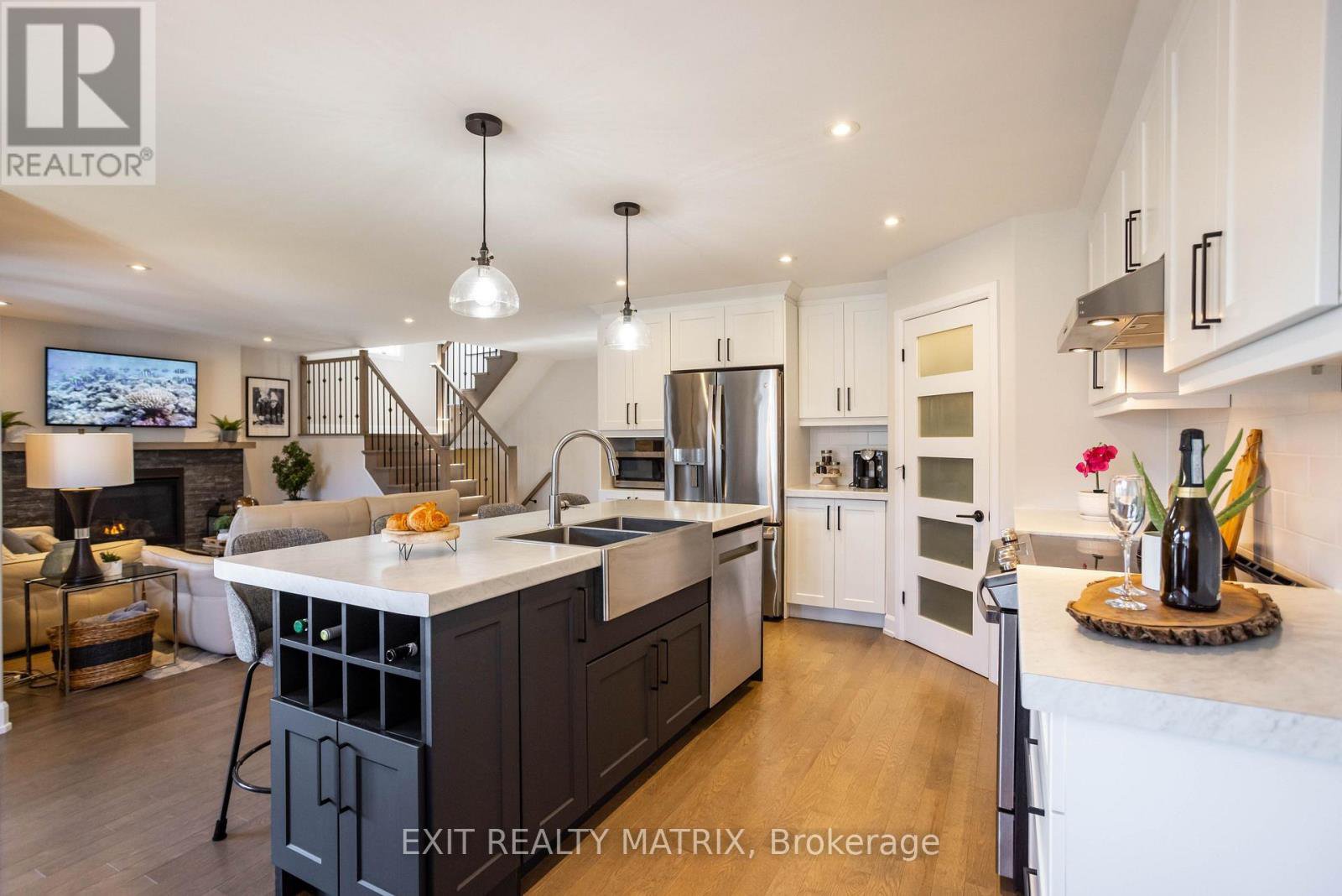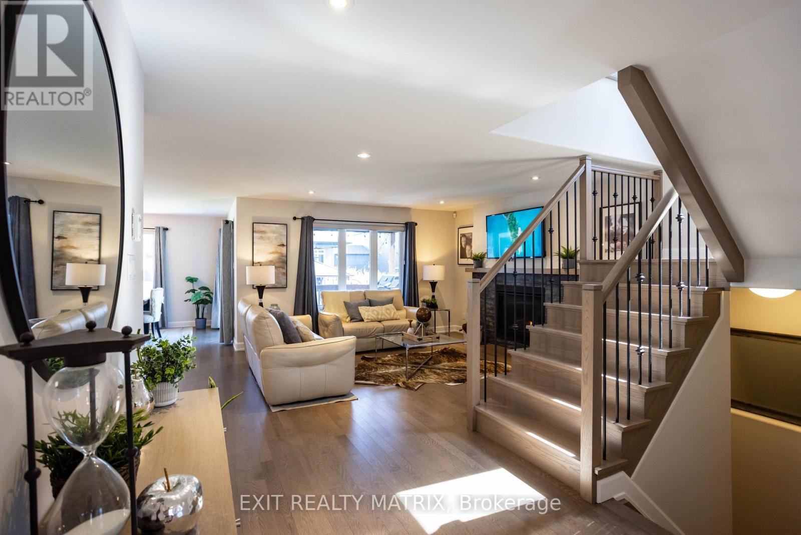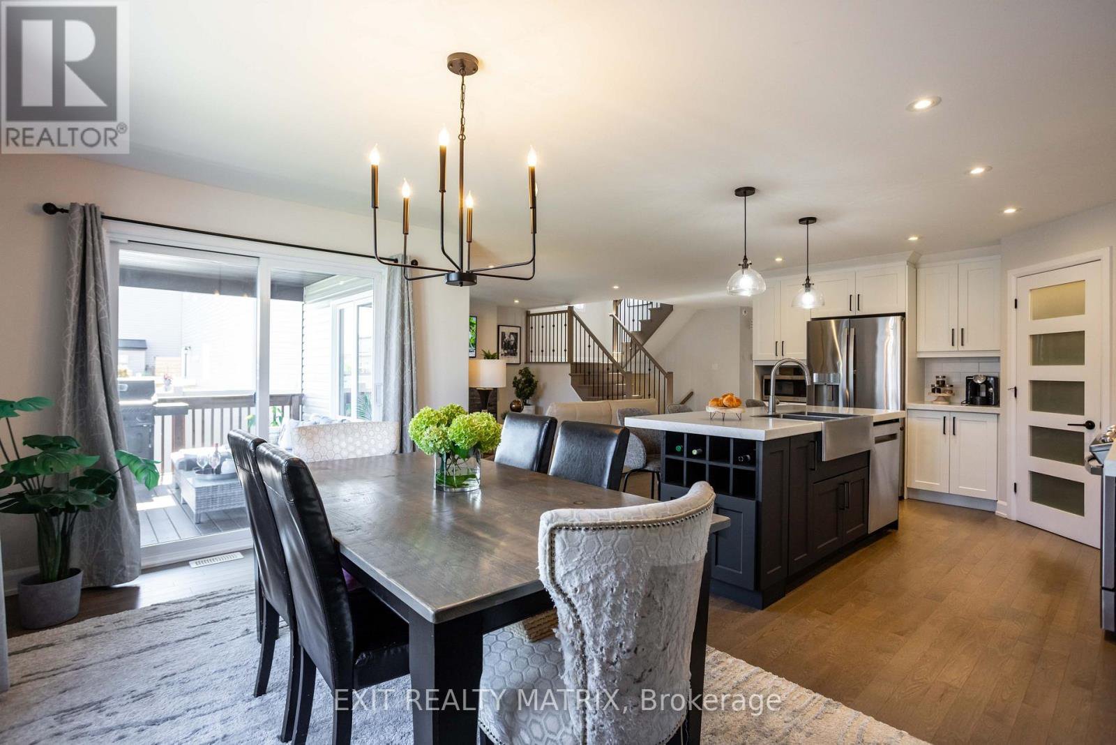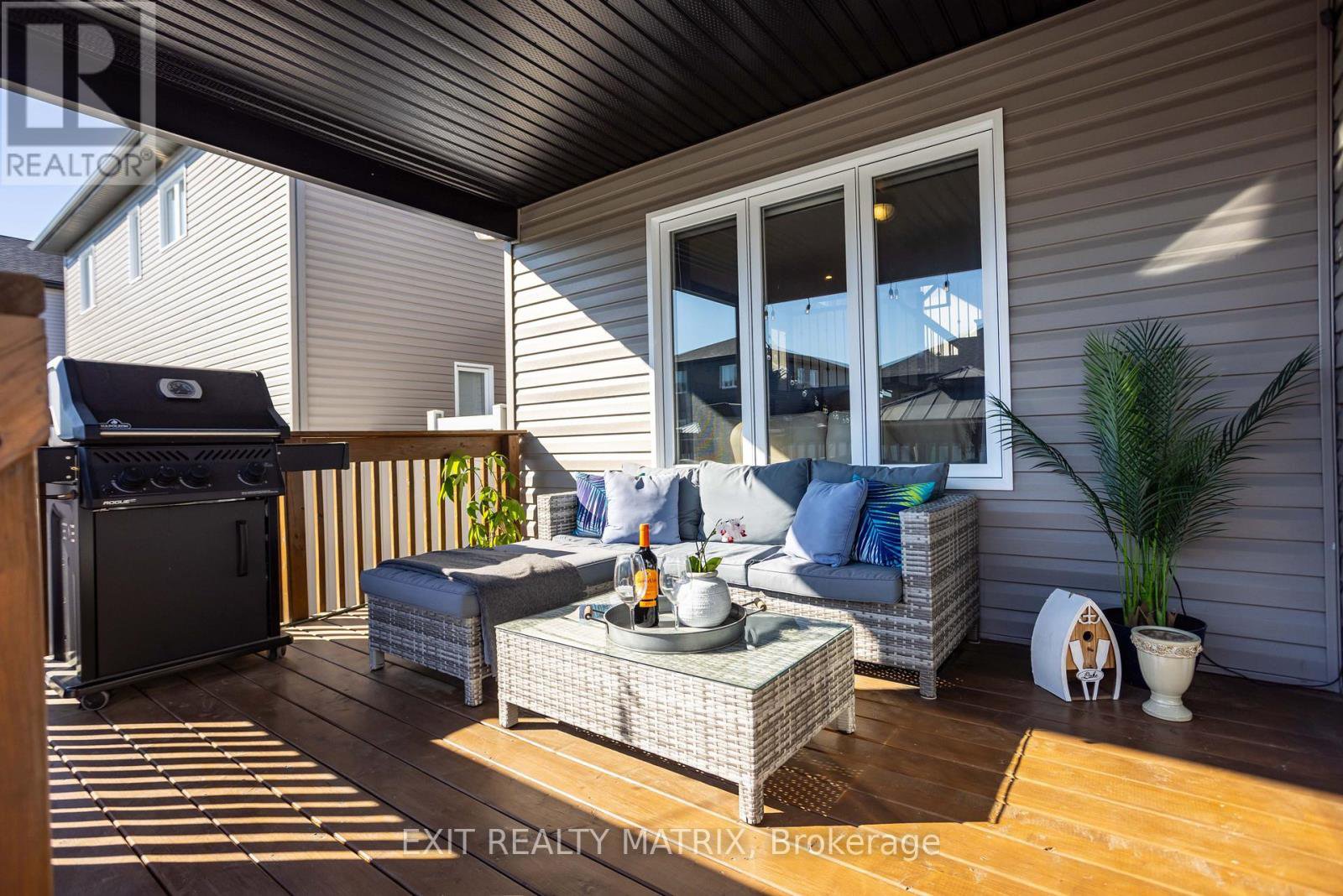 Welcome to 521 Marseille Street, a beautifully upgraded Melanie Construction modified Terracotta model designed to meet the needs of today's families. With 4 bedrooms and 4 bathrooms, this home offers the perfect blend of comfort, functionality, and flexibility, whether you're raising a family, accommodating multiple generations, running a home-based business, or exploring opportunities for rental income. Step into a bright and inviting foyer that flows seamlessly to a dedicated office and convenient half bath. Beyond, the main floor opens into a spacious living area anchored by a gas fireplace with a striking stone surround. The kitchen is a true centrepiece, featuring ceiling-height cabinetry, stainless steel appliances, a stylish centre island with seating for four, and a walk-in pantry. The dining room has been thoughtfully extended from the original builder's plan, creating an ideal space for gatherings and celebrations. Up the elegant hardwood staircase, the primary suite boasts a walk-in closet and a luxurious 4-piece ensuite. Two additional bedrooms, both with walk-in closets, and a full bathroom complete this level. The lower level offers incredible flexibility with its private exterior access. Currently set up for an aesthetics business, it includes a reception/rec area, treatment room, additional bedroom, and a full bathroom. With minimal modifications, it could serve as an extended living space, a spacious in-law suite, private guest quarters, or a rental unit that generates income. Outdoors, enjoy a fully fenced yard with an interlock patio, gazebo, hot tub, and a covered deck, perfect for year-round entertaining. Located in the welcoming community of Embrun, you're minutes from schools, shopping, recreation facilities, and parks, with an easy commute to Ottawa for work or play. This property combines small-town charm with modern convenience, making it an exceptional opportunity for today's lifestyle.