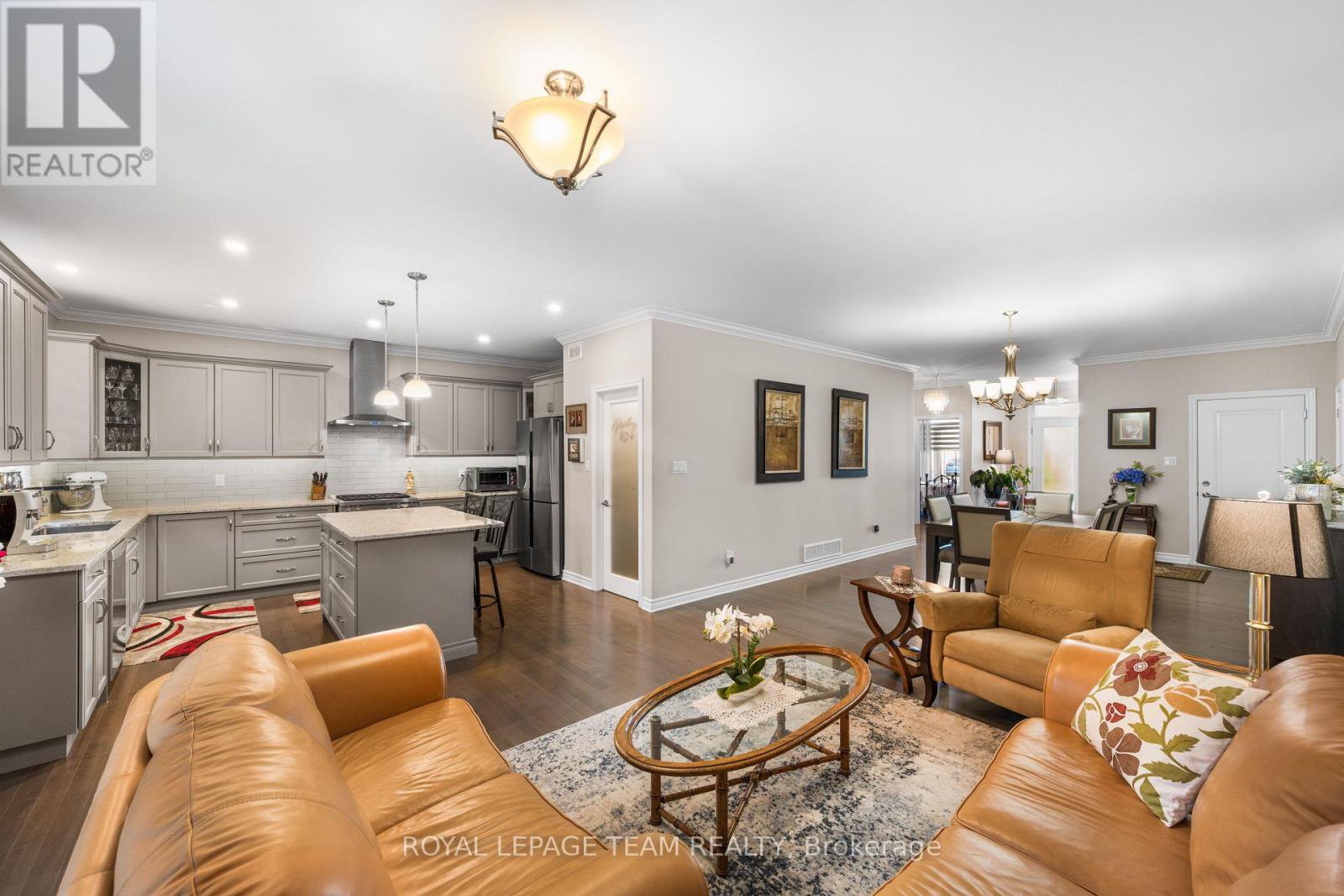 Welcome to this stunning custom-built bungalow in the prestigious Chase Meadows community! Situated on a premium lot in one of the area's most desirable neighborhoods, this impeccably maintained home offers exceptional quality construction, upscale finishes, and thoughtful design throughout. Owned and cared for by the original owner, this spacious residence combines elegance, comfort, and modern convenience. Key features include: 3+1 Bedrooms, 3 full bathrooms, open concept layout, bright, spacious living areas perfect for everyday living and entertaining. The gourmet kitchen features a large island with granite countertops, high-end Wolf gas stove, ample cabinetry and drawers and abundance of prep space. Ideal for the home chef! Primary suite retreat has a generously sized bedroom with a spa-like ensuite and an expansive walk-in closet. Main floor laundry is convenient and efficient layout. Fully finished lower level includes radiant in-floor heating, a large bedroom, full bathroom, spacious family room, and a recreation area perfect for guests or extended family. Step outside to the beautifully landscaped yard, where you'll find a spacious deck designed for entertaining, along with a relaxing swing to enjoy peaceful moments outdoors. Located just minutes from the St. Lawrence River and nearby parks, this home offers the perfect blend of tranquility and accessibility.