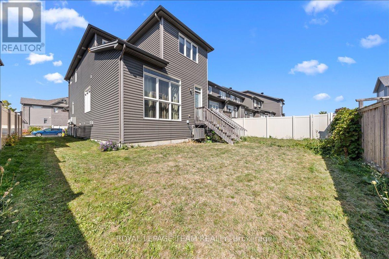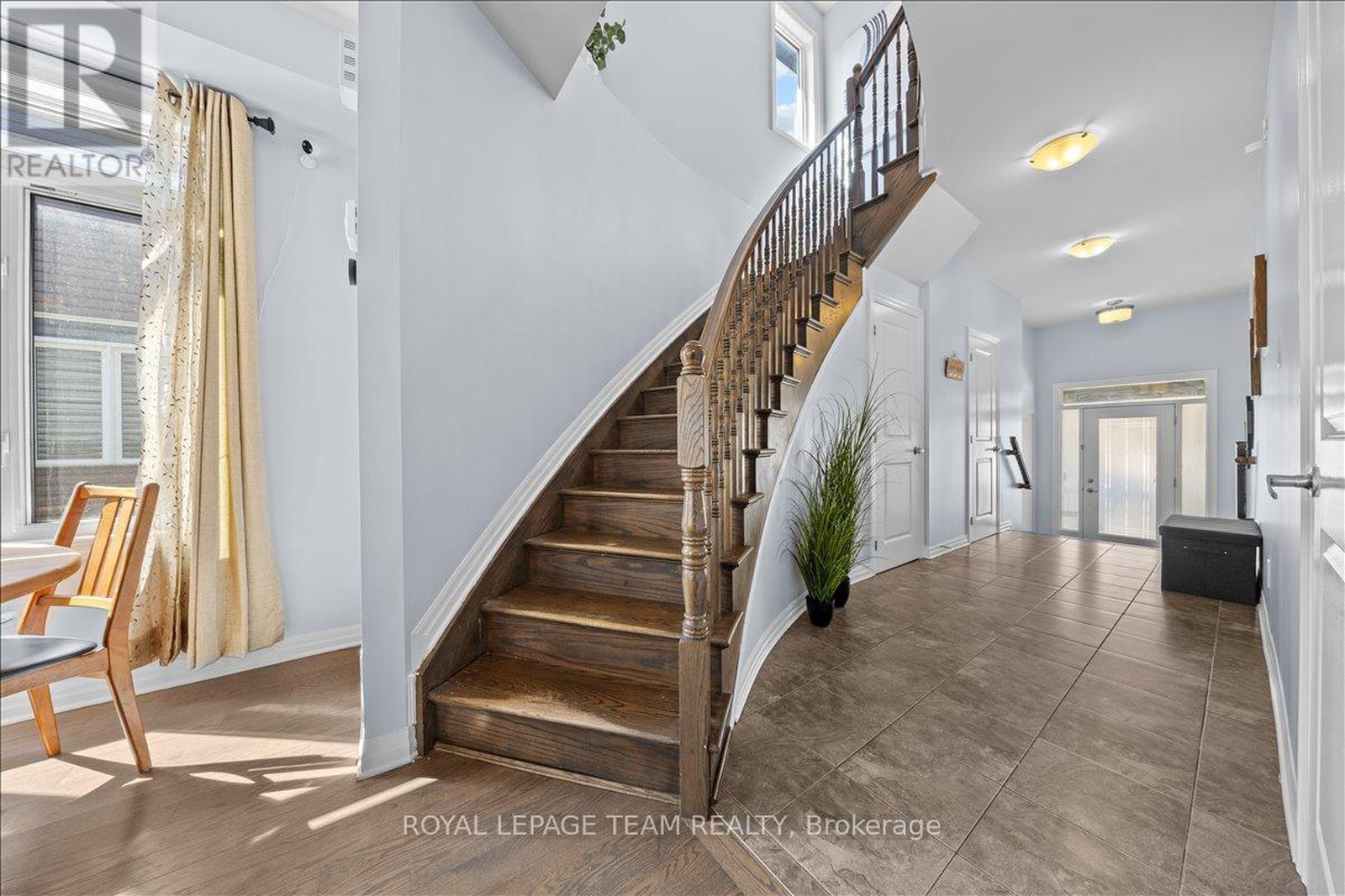 Located in the highly desirable Trailwest community of South Kanata, this sun-filled 4 bedroom, 3.5 bathroom end-unit townhouse offers the perfect balance of style, space, and convenience. Set on an extra-wide lot, the home boasts a carpet-free design, soaring 9-ft ceilings, elegant hardwood floors, and oversized windows that fill every level with natural light. The modern kitchen features granite countertops, a center island, stainless steel appliances, and abundant cabinetry, opening seamlessly to bright and spacious living and dining areas perfect for entertaining or everyday family living. A convenient powder room, mudroom with laundry, and a hardwood spiral staircase complete the main level. Upstairs, discover four generous bedrooms, including a primary retreat with a walk-in closet and private ensuite, along with a second full bathroom. The fully finished basement adds even more living space with a large recreation room, full bath, and generous storage, ideal for a home office, gym, or family gatherings. Freshly painted in 2025 and move-in ready, this home is ideally located just steps from schools, parks, shopping, and public transit.