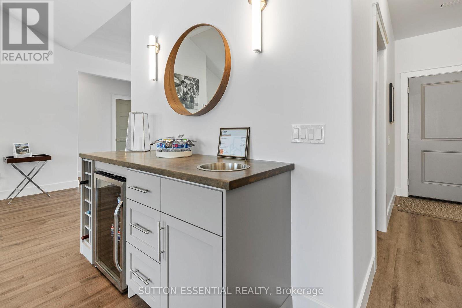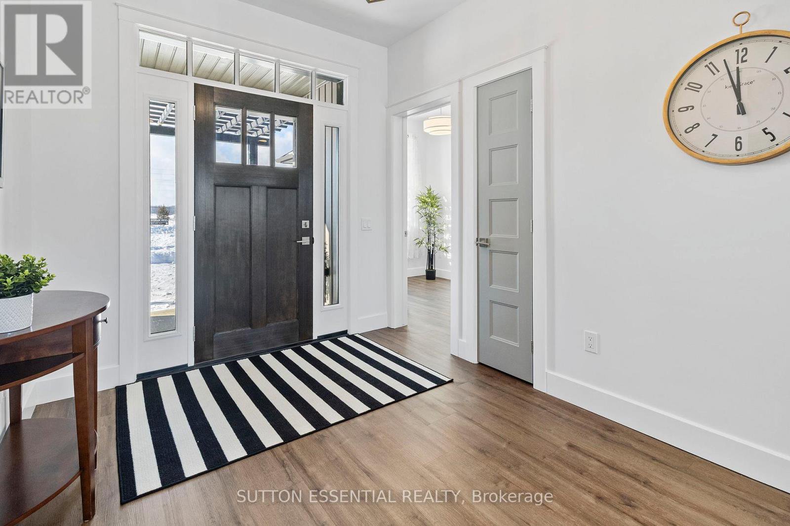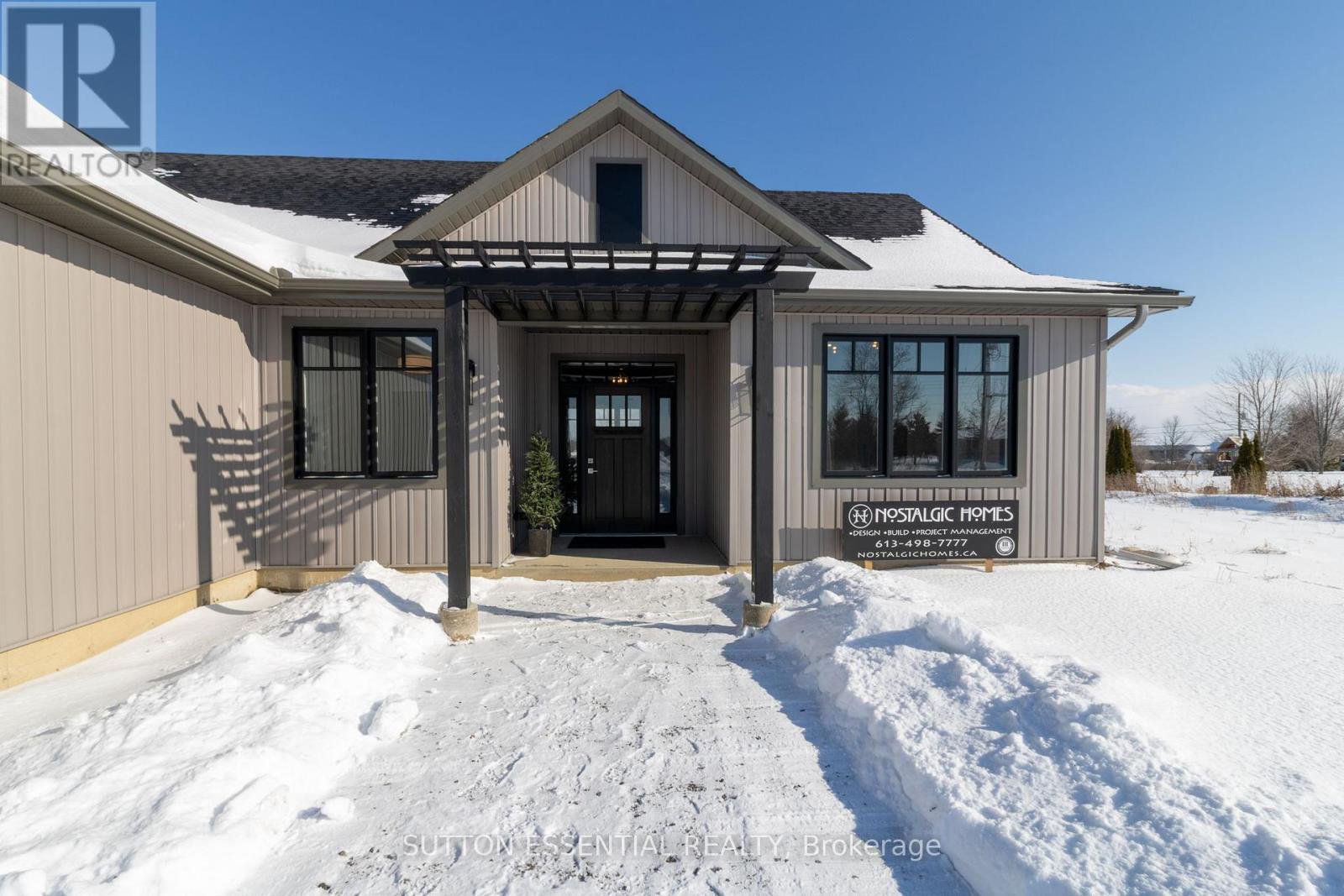 Nearing Completion! Brand-new, custom-built bungalow by Nostalgic Homes, offering refined country living with over $60,000 in value-added standard features. This thoughtfully designed 3-bedroom + office, single-storey home provides over 1,920 sf of low-maintenance, high-comfort living on a peaceful one-acre cul-de-sac lot, backed by a full Tarion Warranty. This basement-free, low-threshold home is built on a fully insulated, heated slab with radiant in-floor heating beneath luxury vinyl flooring and central air conditioning for year-round comfort. Enjoy worry-free living with no sump pumps, sewage pumps, or damp basements. The exterior showcases timeless curb appeal with dark grey board-and-batten siding, black vinyl windows, a fibreglass Craftsman door, stained custom entry trellis, and two covered porches. Inside, soaring vaulted ceilings, quartz countertops throughout, and an open-concept layout elevate the living space. The kitchen is designed for both function and style, featuring a large island and custom cabinetry, ideal for everyday living and entertaining. The vaulted great room offers a cozy fireplace and a custom wet bar, perfect for hosting happy hour or relaxing with guests. The primary suite is a private rear of the home retreat, highlighted by a tray ceiling and decorative feature wall. The spa-inspired ensuite includes dual floating vanities, LED mirrors, soaker tub, a custom low-threshold tile shower, and a private water closet. Additional features include a covered rear porch and an oversized 2.5-car attached garage that is fully insulated, drywalled and painted, providing excellent storage and convenience. Located just minutes from Brockville and the 1000 Islands, with nearby parkland, athletic fields, and a quaint new general store and café. This exceptional home offers the perfect blend of modern luxury, thoughtful craftsmanship, and serene country living. Dare to compare this exceptional level of quality, design, and value.