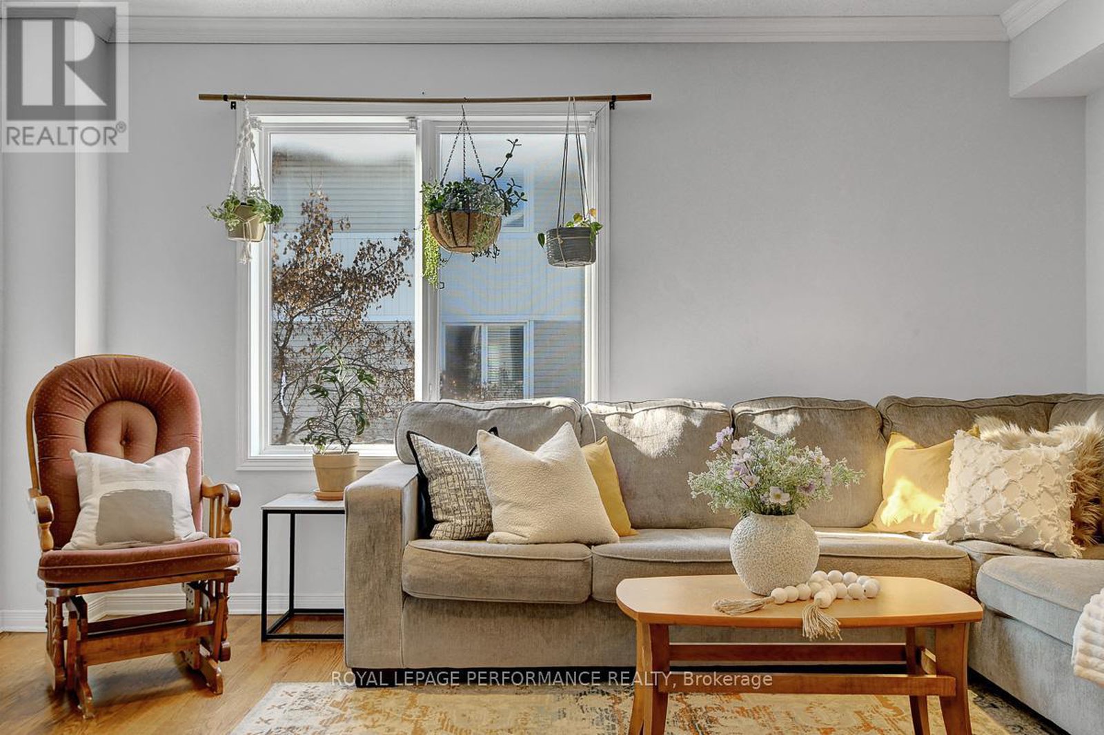 Ideally located on a quiet crescent in the coveted community of Central Park, half a block away from the Experimental Farm and Celebration Park, this turn-key 2bed/2bath end-unit townhome is the perfect for any urbanite who wants a move-in ready freehold option close to greenspace with easy access to the downtown core. Stunning eat-in kitchen with timeless white cabinetry, tiled floors, granite countertops, ceramic backsplash and functional centre island. Bright and airy open-concept main living area with hardwood floors, recessed lighting and crown moulding. Convenient main floor powder room. Spacious primary bedroom with walk-in closet. Well-proportioned secondary bedroom with wall-to-wall closets. Updated full bathroom with soaker tub and granite countertops. Fully-finished main floor family room with patio-door leading to a low maintenance backyard with oversized deck. Practical 1-car attached garage with inside entry. Convenient storage area in lower level perfect for all of your seasonal items. Easy access to Experimental farm, public transit, downtown core, 417, and all of your retail needs just down the street. Who says you need to move to the suburbs to find a turn-key freehold townhome under 600k?!