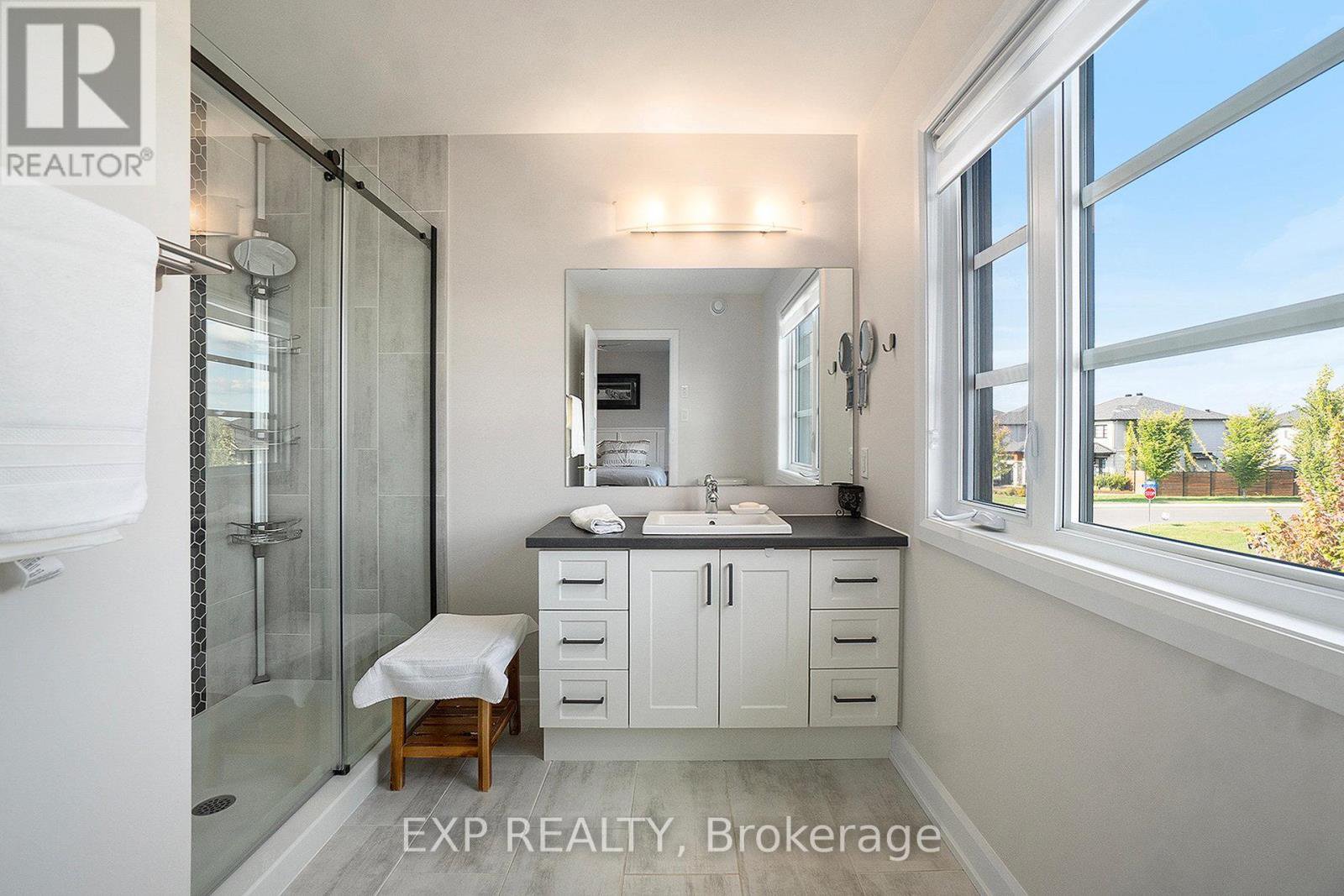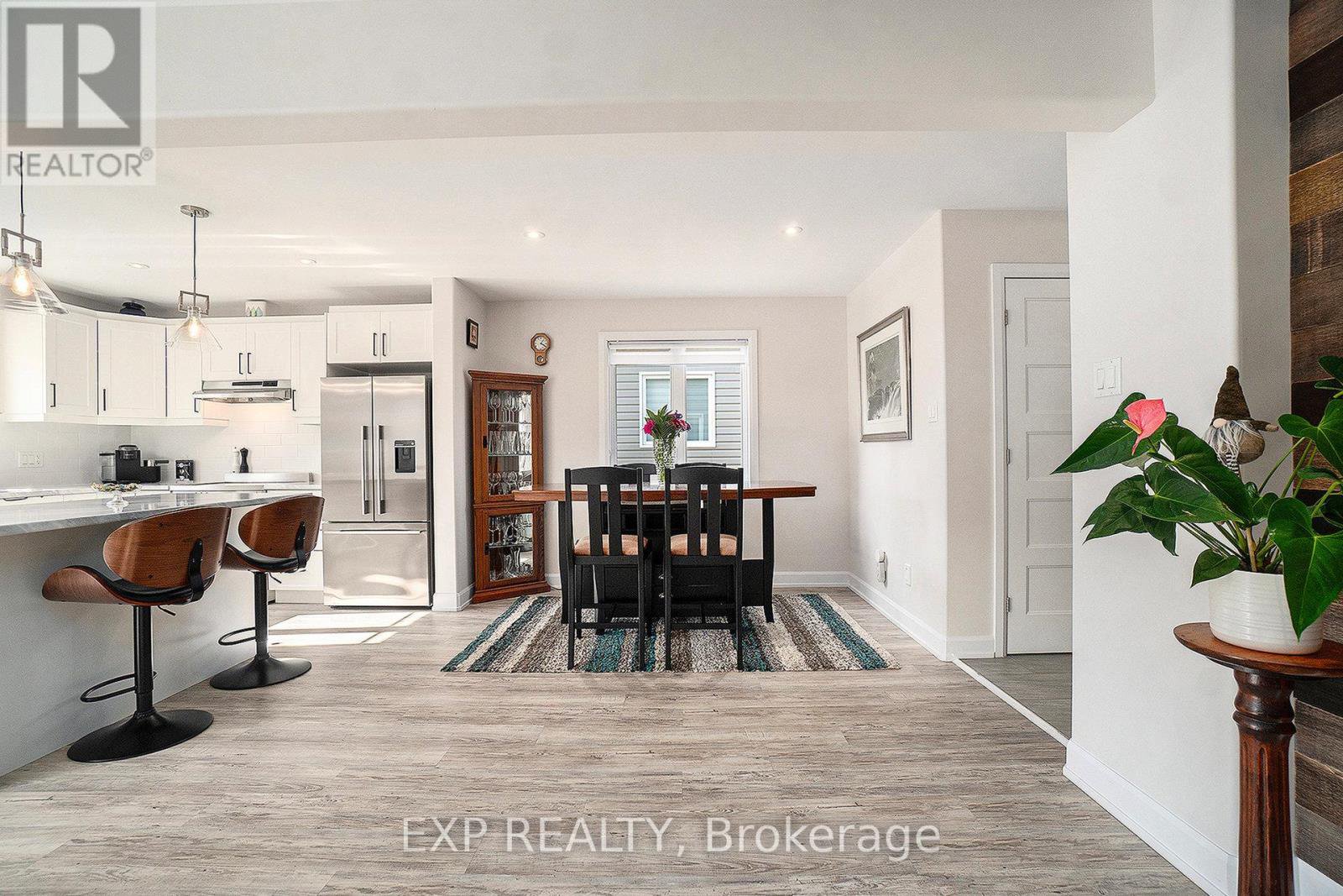 Welcome to 704 Azure, a turnkey 3 bedroom, 2.5 bath semi-detached two-storey home located in the sought-after Sunset Flats community of Russell. Thoughtfully designed and well laid out, this home offers a bright, open-concept layout that blends comfort, function, and contemporary style.The main level features a spacious, sun-filled living room, a well-appointed kitchen with ample cabinetry, stainless steel appliances and a central island with breakfast bar seating, all overlooking the dining area-ideal for everyday living and entertaining. Luxury vinyl flooring flows throughout the principal living spaces, complemented by ceramic tile in wet areas for easy maintenance. Upstairs, the primary suite provides a relaxing retreat with a walk-in closet and a 4 pc ensuite w/ large walk-in shower. Two additional bedrooms, a full bathroom and the convenience of second floor laundry complete this level. The partially finished basement offers flexibility and is ready for your personal touch - ideal for a home gym, TV room or recreation space. Outside, enjoy a west-facing, fully fenced backyard with a deck, covered gazebo and green space - ideal for kids, pets and relaxation. A double door side access adds practicality for storage and yard use. Situated on a 35-ft frontage lot with a double-wide driveway and attached garage, this move-in-ready home is just steps from schools, parks, trails, and recreation, with downtown Ottawa only 20 minutes away.