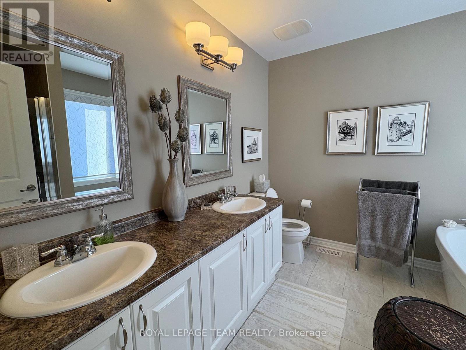 Meticulously maintained 3 bedroom + loft single family detached home w single car garage in family oriented Kanata. Your family will appreciate the roomy front entrance. It provides lots of space for removing boots & coats. The main floor features pristine oak flooring, a large dining room for family dinners & entertaining, & a cozy great room anchored by the warmth and elegance of a gas fireplace. The open concept great room/kitchen makes it easy to chat with those in the updated kitchen. It features quartz countertops, pantry, subway style backsplash & stainless steel appliances. It was updated in 2021 with pot lights, extra cabinets and a long convenient island with attached seating for two. Upstairs you are welcomed by a bonus room/loft. A great place to watch tv, have an office workspace or use as a spot for children to do homework. The family bathroom has a combo shower/tub, great for the children. Also on the second level is a convenient laundry room. You will also find 3 bedrooms. The bright primary bedroom has as walk in closet, room for a king size bed and includes the wall-mounted TV and associated TV wall-mount bracket. It also features a large 5 piece ensuite bathroom (complete with separate shower, free-standing modern deep soaker bathtub, as well as double sinks. Come summer, your family will enjoy the partially fenced low maintenance backyard w two tier decks cleverly partitioned with privacy in mind. The lower tier has a direct gas hookup for the included BBQ and leads to a garden shed. The top tier deck has a direct hookup to water access. The unfinished basement is perfect for storage or you can design it as you see fit (it has a rough in for a bathroom). Safety features: an alarm system w connection to fire alarm system in basement, a doorbell w camera, & a whole home surge protector. 2021 updates: New washer/dryer, interior of home fully painted, kitchen reno, window film on patio + front doors. 2024 updates: new stove & microwave.