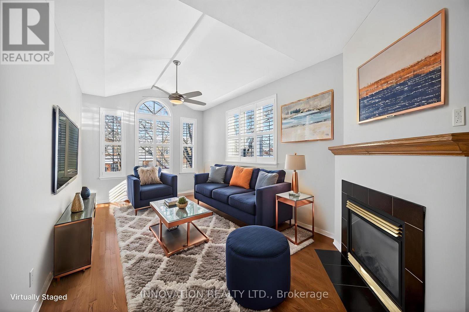 Is this a detached home in a 3 bedroom townhouse disguise? It is hard to believe that it is indeed an end unit townhome! Hardwood on both levels! Spacious principal rooms on main level with open concept living and dining room with room for the largest furniture. Hardwood flooring, lovely millwork and large windows. The kitchen is bright and functional with classic white cabinetry & great potential for modernization. The eating area overlooks backyard and skyline NOT another house directly behind! With easy access, the side garden door steps into the backyard with large, tiered deck. The yard is full fenced, and while there is an easement, the current neighbours do not use the backyard to access their own. New carpeting on the stairs brings you to the gem of this house - the upper level family room with gas fireplace & LOTS of natural light!. Hardwood floors, sunshine streaming through large windows with California shutters and a corner gas fireplace...absolutely stunning! The primary bedroom also offers hardwood flooring, a spacious and well thought out walk-in closet with pocket doors as well as a sunny 4 piece ensuite. The two secondary bedrooms are spacious with hardwood flooring and share a spacious main bath. The unfinished lower level is ideal for finishing with high ceilings, great layout, egress window and a bathroom rough-in. Goose River Avenue is a quiet street in the mature neighbourhood of Riverside South with all amenities you could need at your fingertips including great schools, access to public transport, shopping, parks, the Rideau River and more! Carpeting January 2026, Roof 2014, AC 2024, Kitchen Appliances 2023