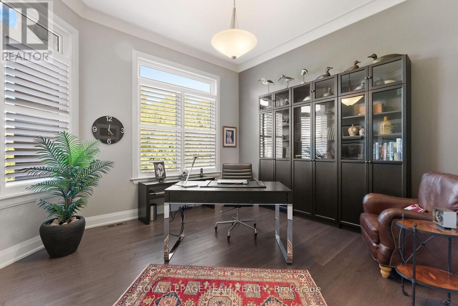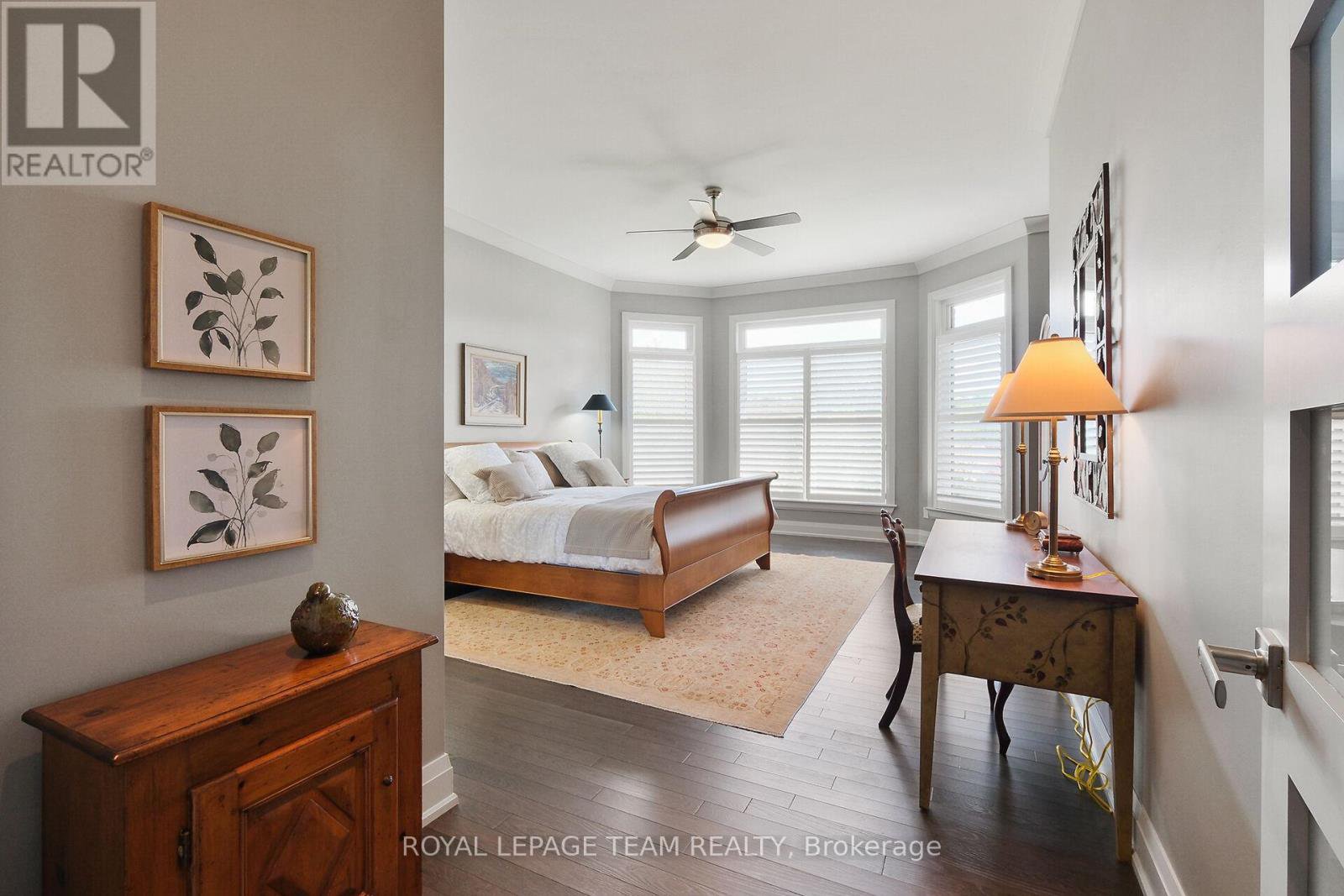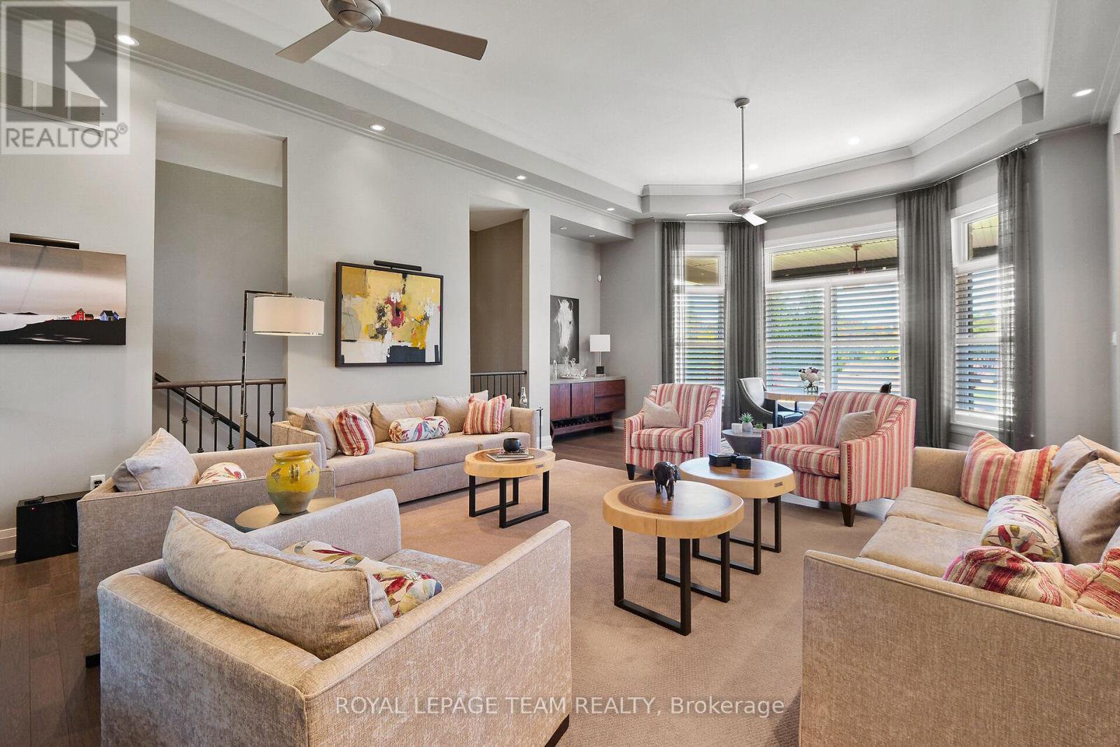Welcome to this executive-style bungalow offering refined luxury and timeless design on a beautifully landscaped 2+ acre country lot. Impeccably built with a stately stone and brick exterior; this home exudes sophistication with warmth from the moment you arrive. The covered front porch and elegant glass entry open to soaring tall ceilings, rich hand-scraped hardwood floors, and expansive transom windows that flood the home with natural light. The open-concept living space centers around a striking double-sided fireplace and flows seamlessly into the designer Deslaurier kitchen, a true showpiece featuring full-height custom cabinetry, granite countertops, built-in stainless steel appliances, and a grand island with seating for four; perfectly designed for entertaining or for everyday living. The spacious primary suite offers a tranquil retreat with large windows, a walk-in closet, and a spa-inspired ensuite showcasing dual vanities and contemporary finishes. Additional bedrooms and a main-floor office and cozy den provide flexibility for family or remote work. Enjoy the relaxed country air outside under a covered 16ft x 36ft back patio with discreet power sunscreen, while looking out onto manicured lawns, lush gardens, and a completely private backdrop, ideal for gatherings or peaceful evenings as the sun sets. An attached oversized 4-car garage with extra tall insulated doors, direct basement access, a fully paved driveway with decorative lit stone pillars, and impeccable attention to detail complete this exceptional rural property. Experience the perfect blend of luxury, comfort, and craftsmanship in this remarkable bungalow. Truly a home to fall in love with! Welcome Home!