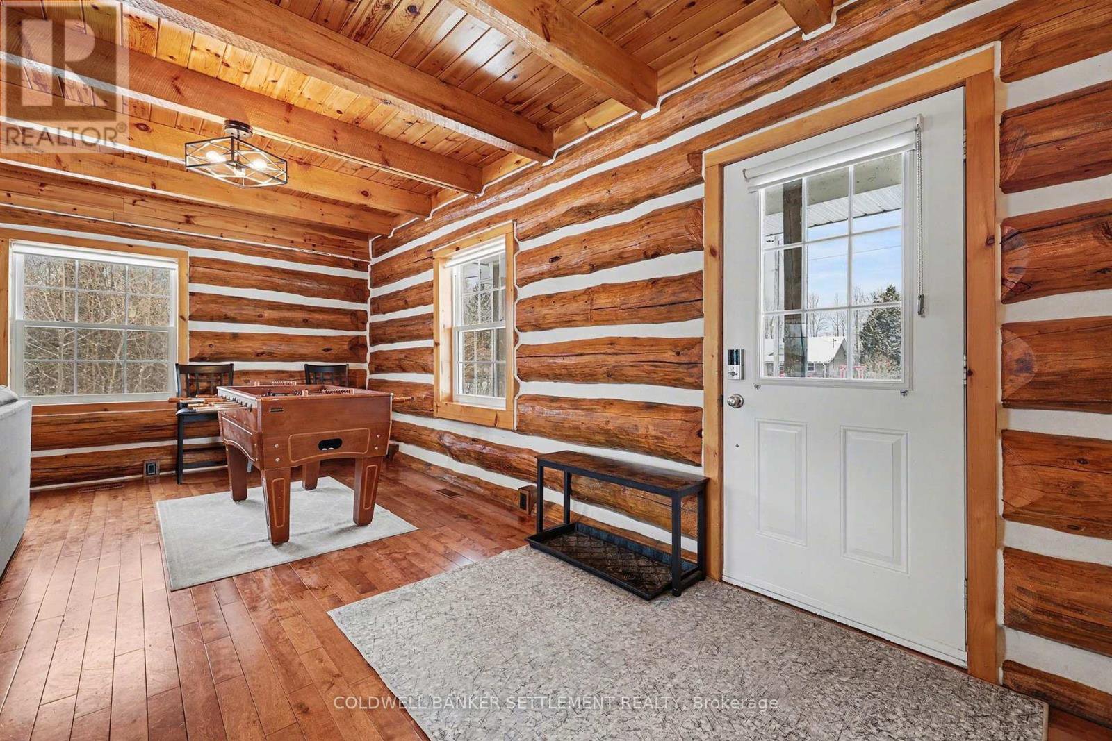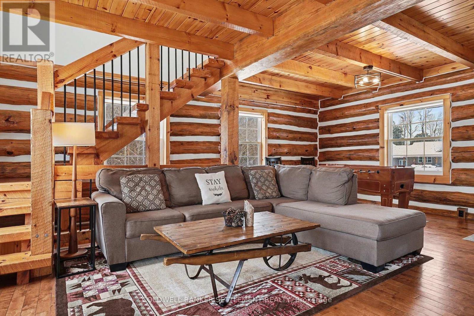 Experience waterfront living on Big Rideau Lake. This detached log home offers a rare blend of rustic elegance and turnkey comfort, providing the perfect retreat for those seeking relaxation, character, and unforgettable lakefront serenity. Featuring 3 bedrooms and 2 bathrooms, the home is offered fully furnished and thoughtfully equipped with everything needed to embrace the lake lifestyle - from outdoor entertaining furniture and BBQs to kayaks ready for your next adventure on the water. Inside, the main floor is both warm & welcoming, with a bright eat-in kitchen, convenient main floor laundry + 2 piece bathroom, an open living room anchored by a magnificent stone fireplace - a true statement piece & gathering area. Patio doors lead seamlessly to a beautiful stone patio, ideal for grilling dinner, or peaceful mornings overlooking the lake. Don't miss the pergola offering shade & an outdoor dining space. The second level has an additional sitting area or den at the top of the stairs - a perfect space for quiet relaxation & reading plus 3 lovely bedrooms (two of them have amazing views down the lake). Enjoy the ease of year-round access on a paved municipal road, complete garbage & recycling pick-up right at the door - a rare convenience! Perfectly situated just 12 minutes to the charm of Heritage Perth, with a boat launch just down the road and the Rideau Ferry Store and restaurant only a short drive - or scenic boat ride - away. Whether you're cruising the lake from your dock or paddling along the shoreline, this is a wonderful setting to truly enjoy the best of life on Big Rideau Lake.