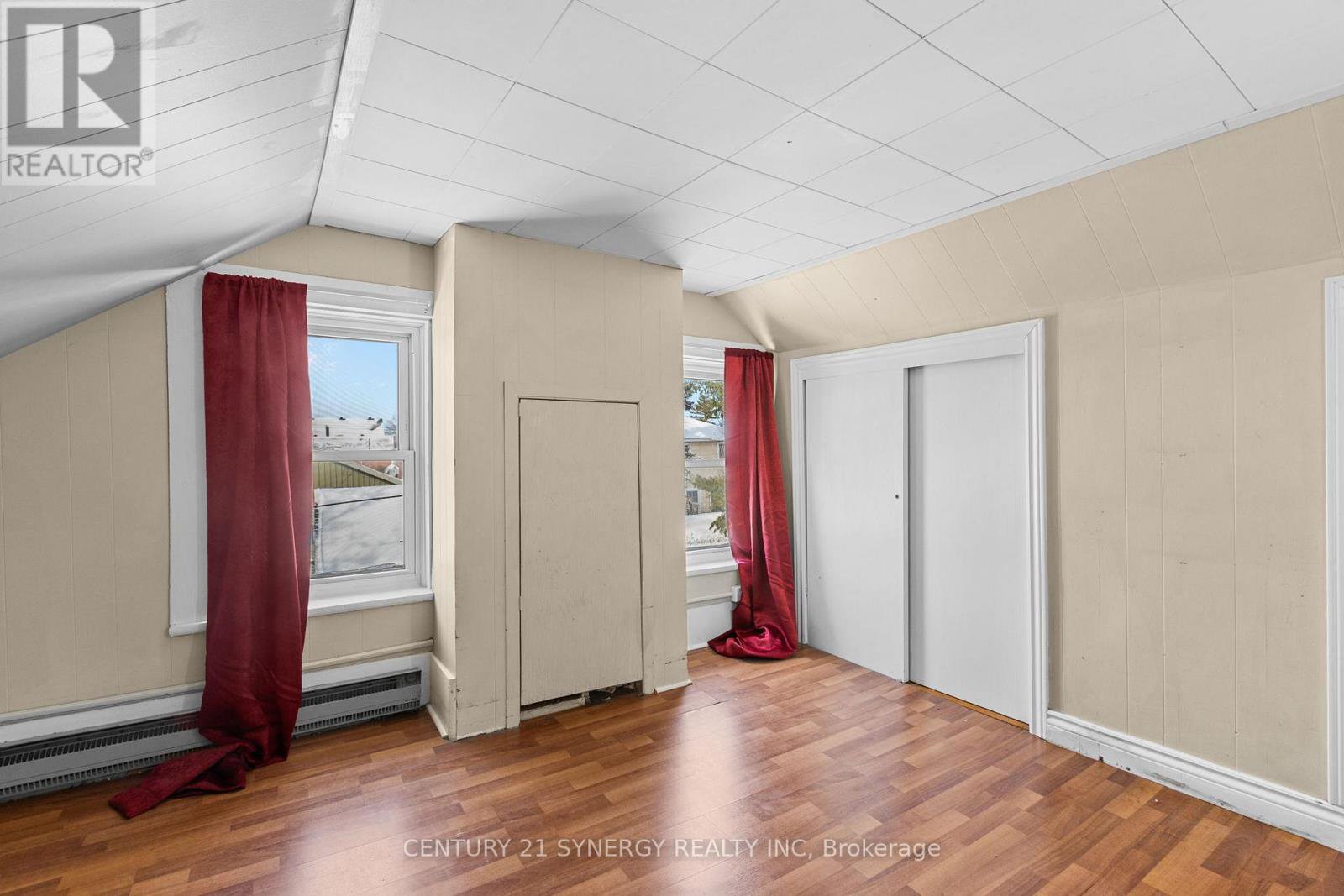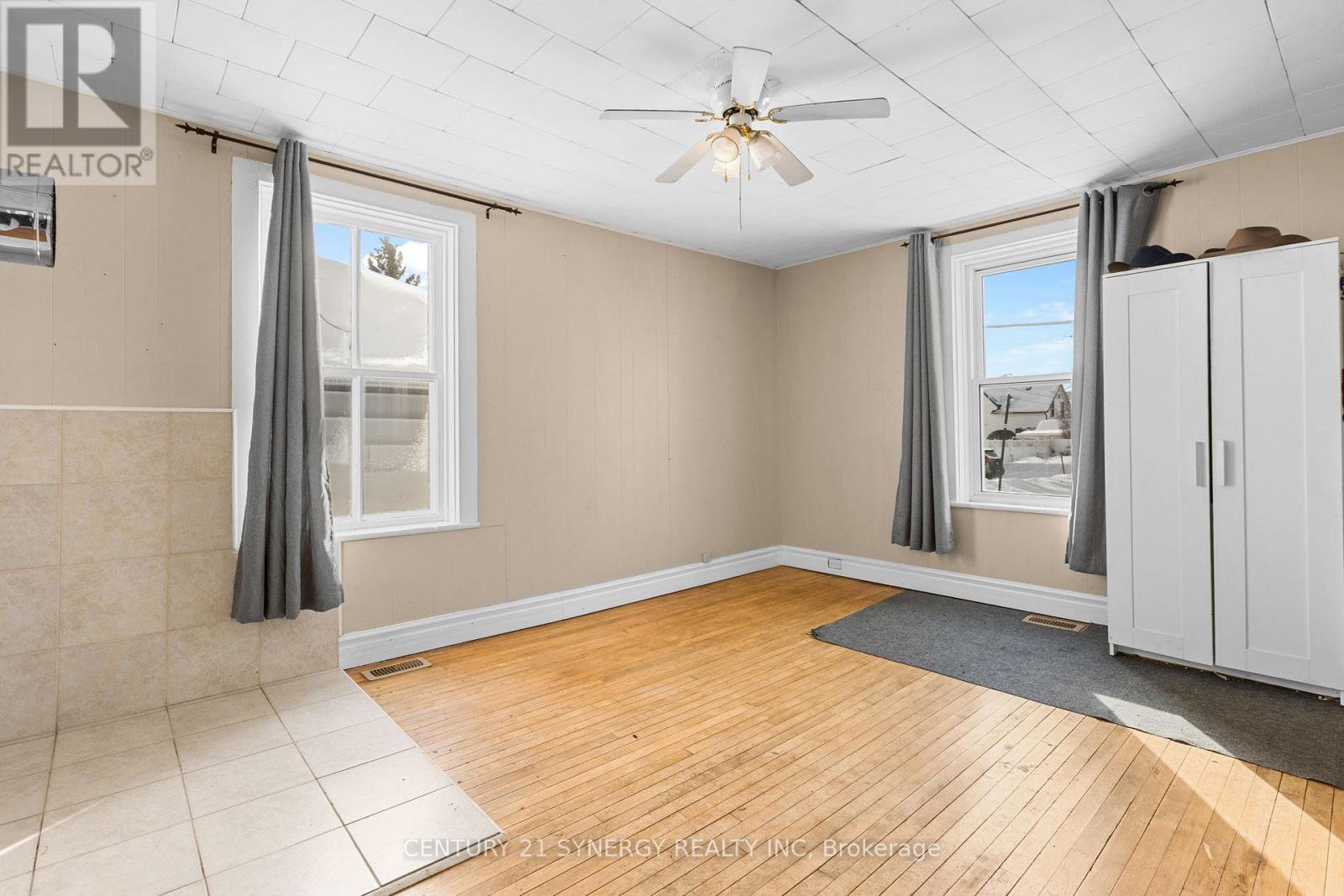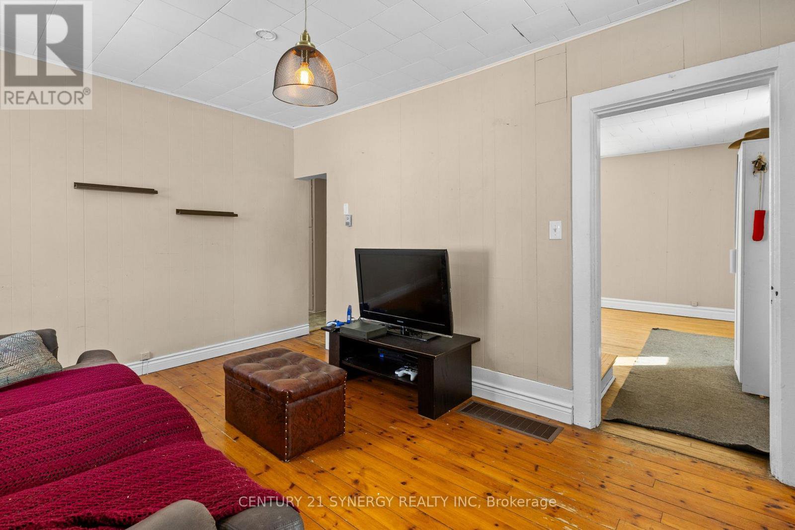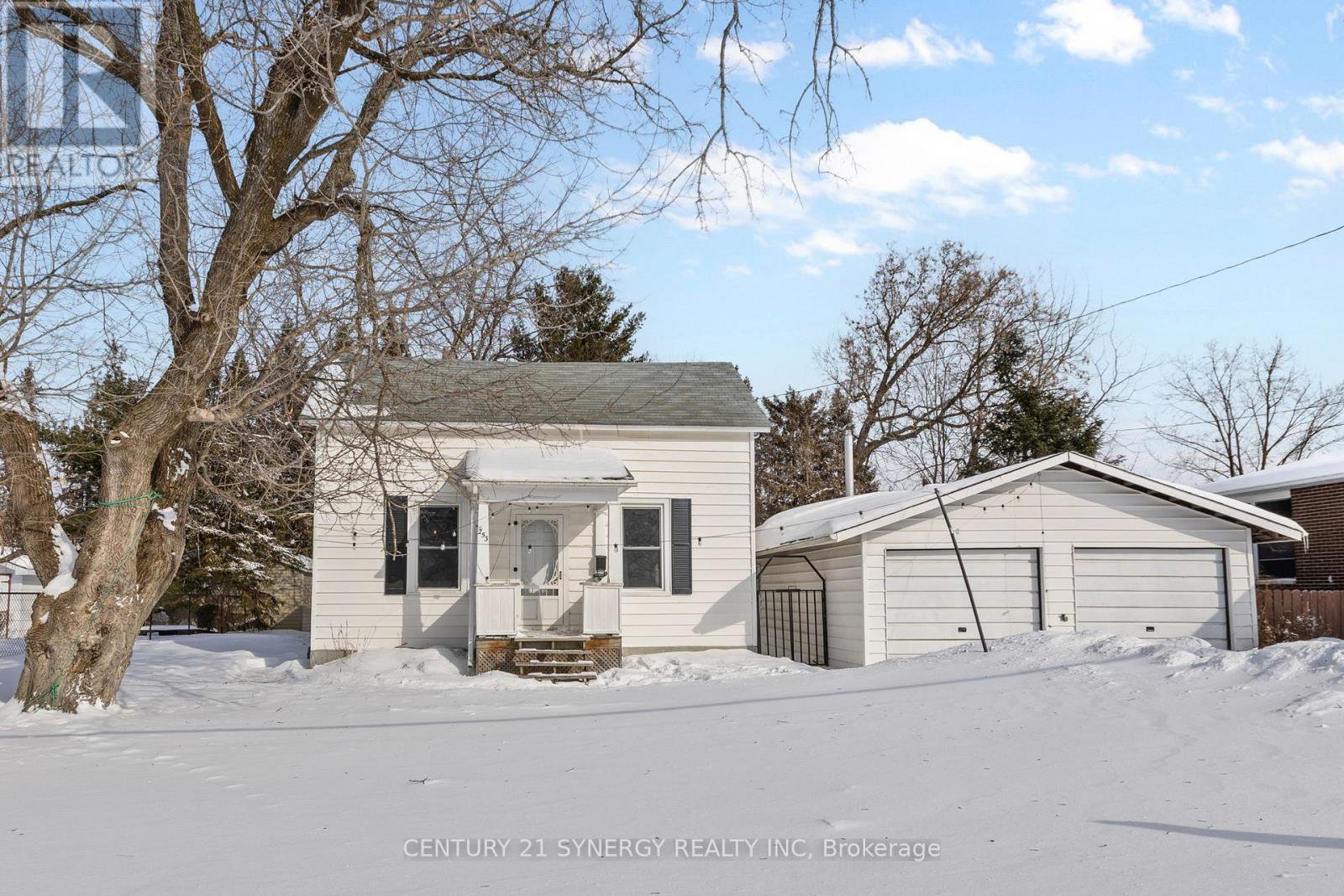 This affordable starter home offers a functional layout and plenty of potential for those looking to make it their own. A covered front porch welcomes you into the home, where two equal-sized rooms sit on either side of the staircase. These versatile spaces can be arranged to suit your needs, whether as a living room, dining area, home office, or playroom.The eat-in kitchen provides ample space for everyday meals and includes main-floor laundry, with all appliances included. Upstairs, the second level features three bedrooms and a full bathroom, offering comfortable accommodations for a family or guests.Set on a large lot, the home is positioned well back from the road, allowing for added privacy and framed by mature trees. A detached double-car garage includes a workshop area, ideal for hobbies or additional storage. There is also plenty of side-by-side parking available.With its generous lot size, flexible floor plan, and convenient location, this property presents a great opportunity for buyers looking to renovate, invest, or build equity over time.