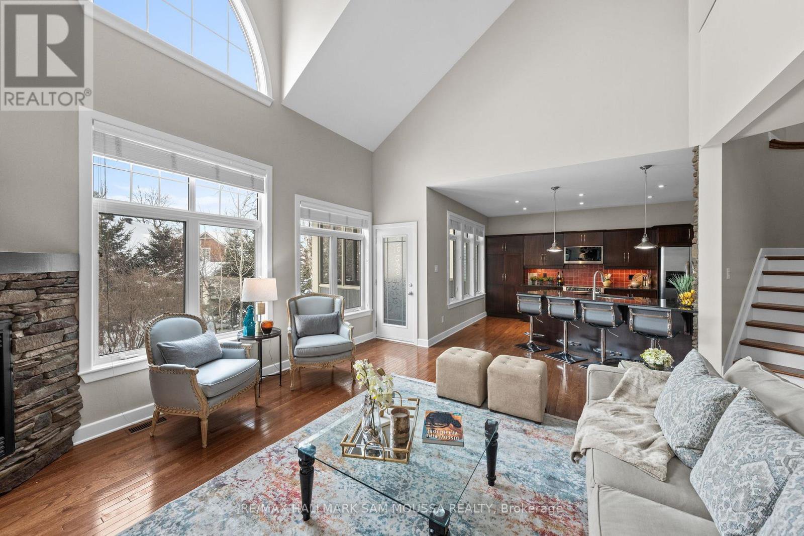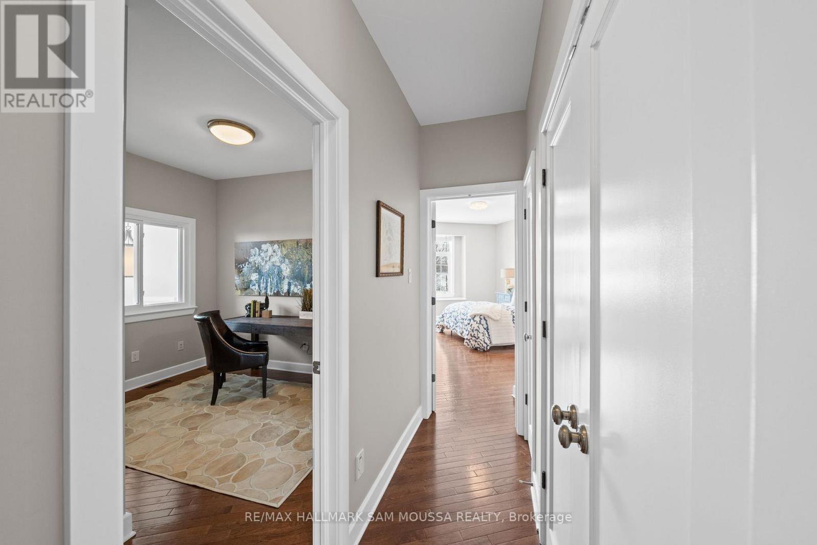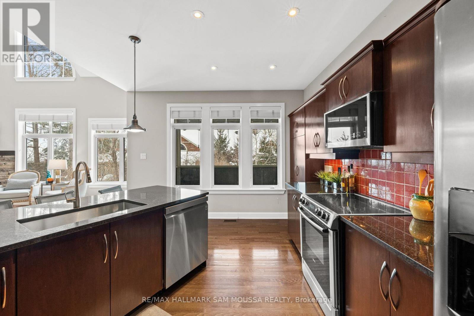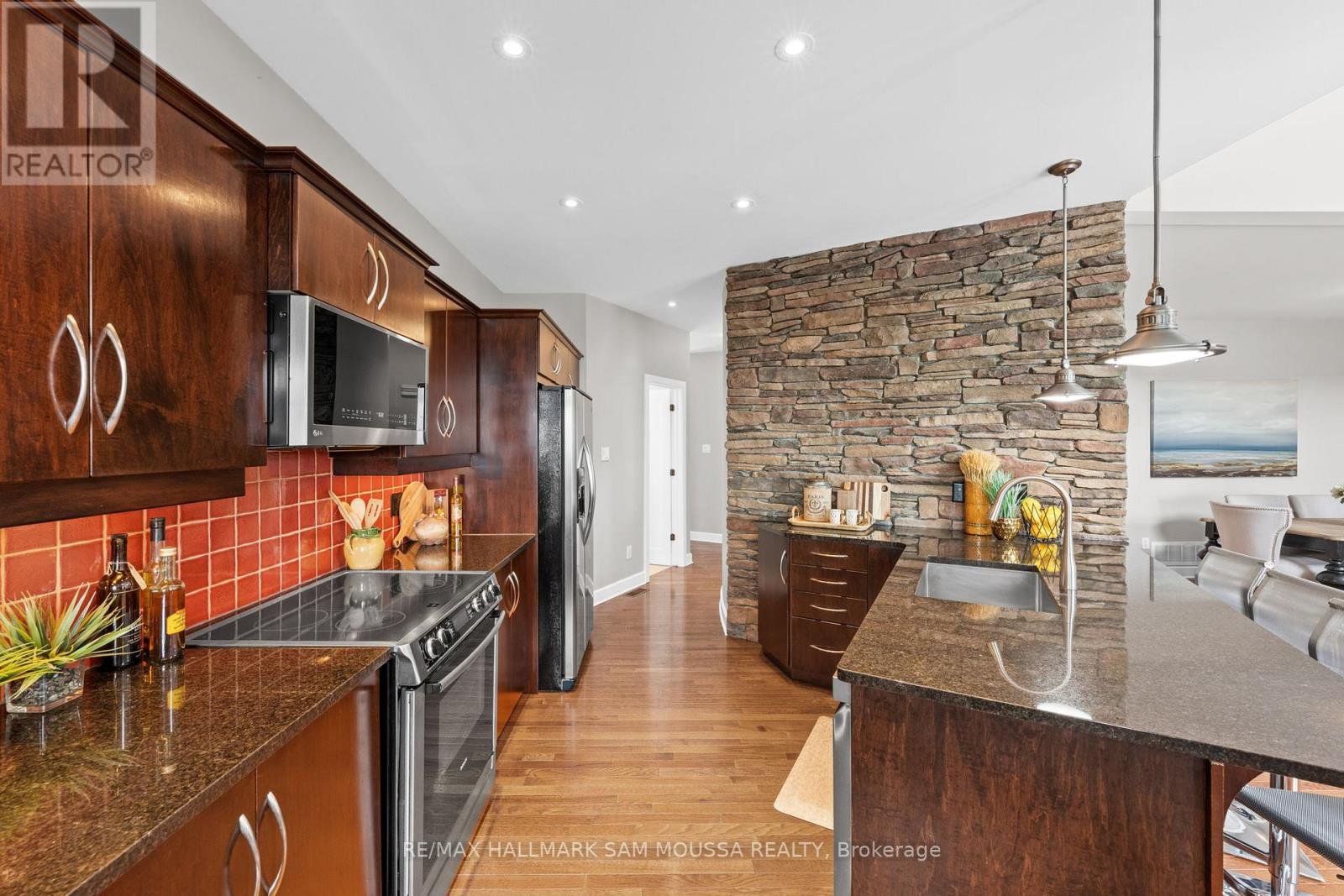 Tucked away in the sought-after enclave of Marshes Village, this beautifully upgraded end-unit townhome offers refined living. Thoughtfully maintained and tastefully enhanced. A foyer with Italian tile sets the tone, opening to open-concept living and dining spaces. Soaring ceilings, expansive windows, and a stone fireplace create a warm atmosphere. The kitchen is a standout, granite counters, stainless steel appliances, and generous cabinetry, all designed with beauty and practicality in mind. A dedicated office, renovated powder room, and laundry area enhance the main level. Off the main living area, a screened-in porch with a gas hookup for BBQ overlooks the back garden. The primary suite is a true retreat, with a large custom walk-in closet and a stunning spa-inspired ensuite. Upstairs, a versatile loft with two closets and a full bath provides flexible living space, ideal for a guest suite or reading nook. Oak hardwood flooring runs throughout, including all three staircases. The finished walk-out lower level offers even more flexibility with a second family room, a spacious bedroom overlooking the garden, a walk-through closet, and a beautifully renovated full bath. This level also features floating oak flooring, adding to the comfort throughout. Outside, professional landscaping enhances the front and rear gardens, a large cedar deck and elegant stone patio provide the perfect backdrop for outdoor entertaining. Recent upgrades include new roof tiles and new wooden front steps. Situated next to the prestigious Marshes Golf Course and just minutes from Kanata Norths high-tech hub, the Brookstreet Hotel, DND, the 417, local shops and restaurants, the Richcraft Rec Complex, and nearby pickleball courts, this home offers a luxurious lifestyle in one of the city's most exclusive communities. Marshes Village Homeowners Association fee is $196/month covers road snow removal, landscaping, general maintenance, audit and insurance with a reserve fund for future needs.