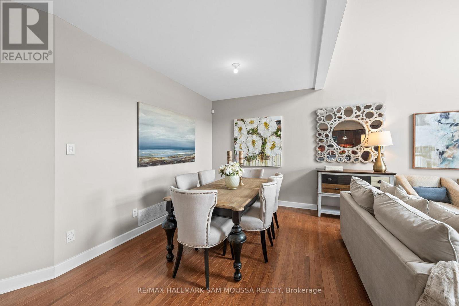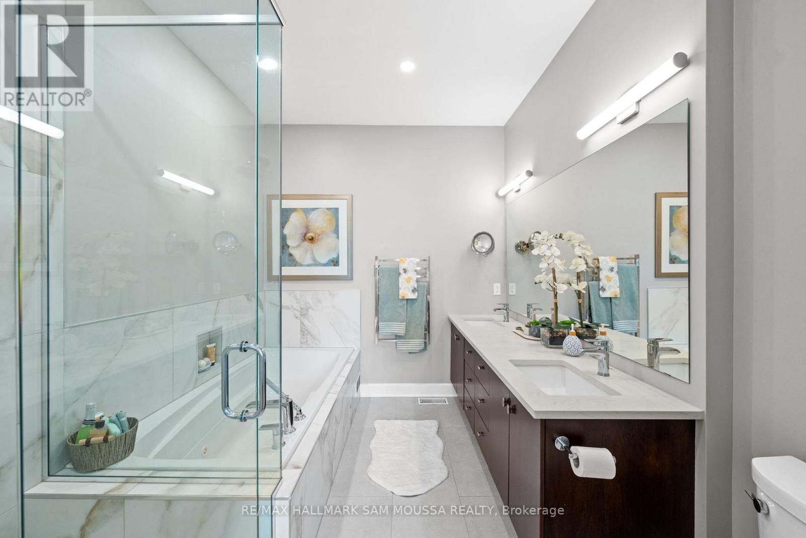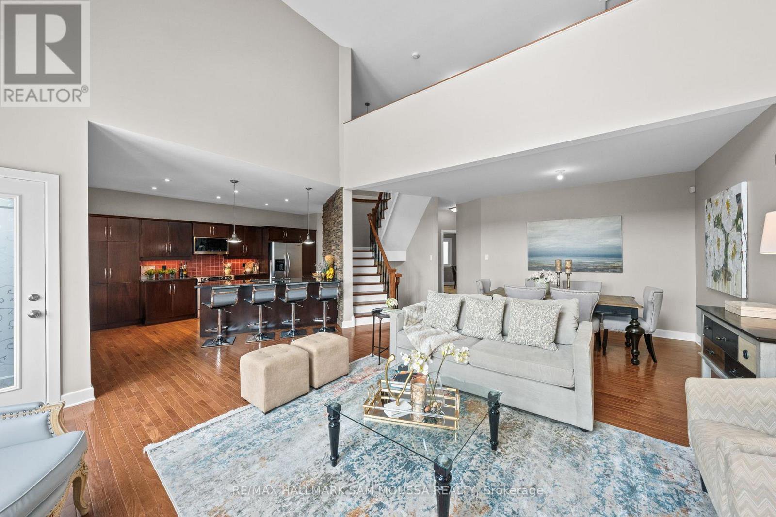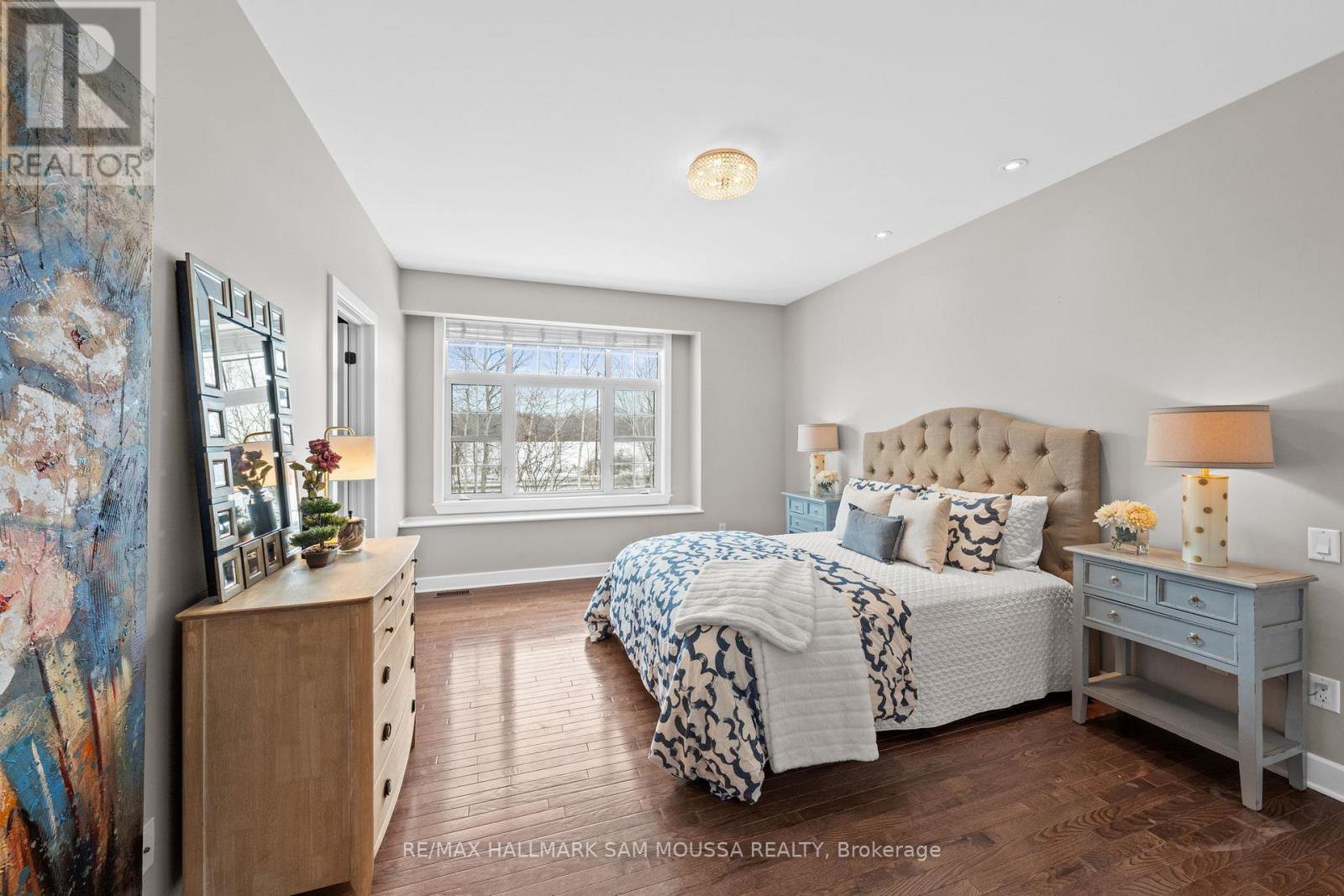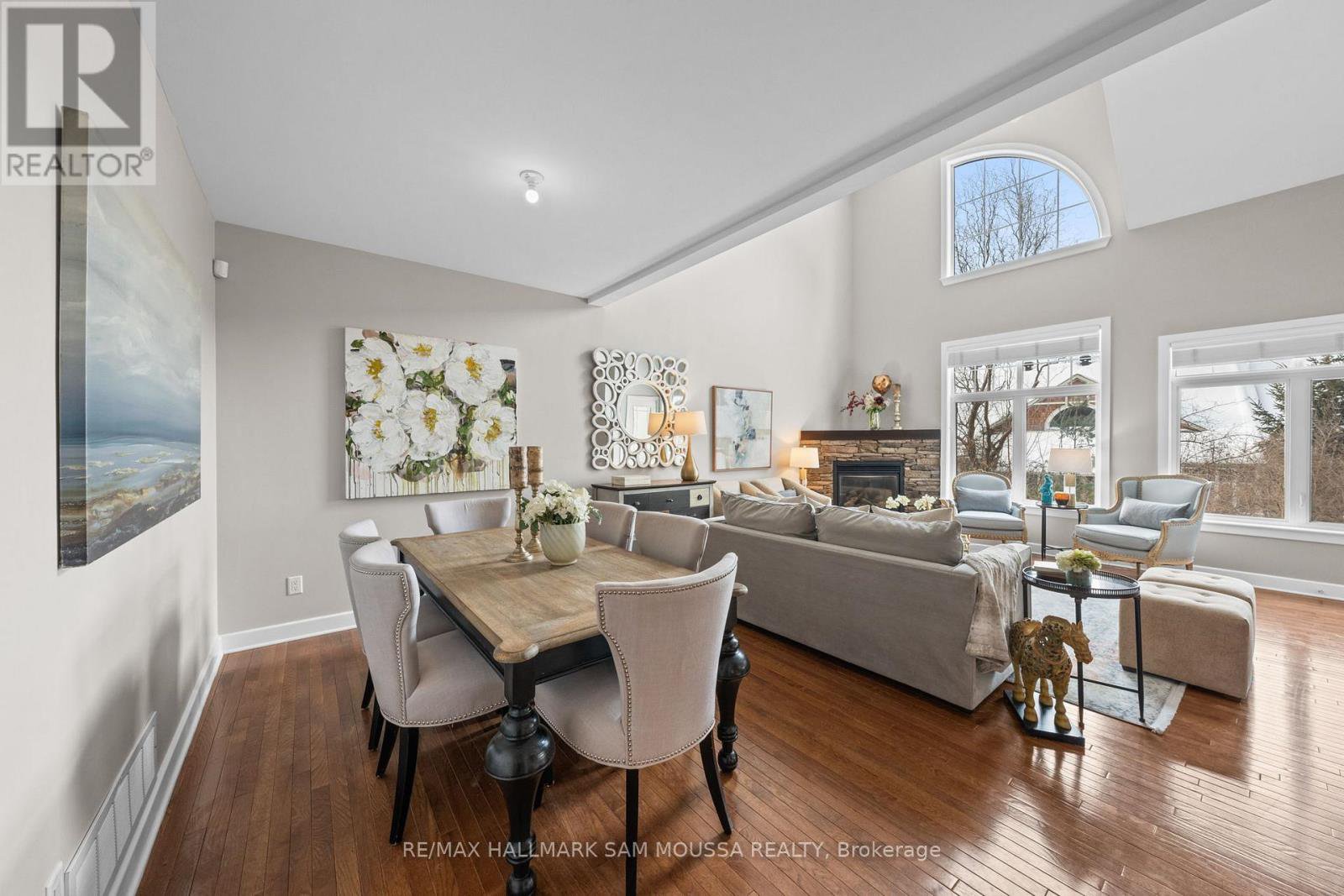 Tucked away in the sought-after enclave of Marshes Village, this beautifully upgraded end-unit townhome offers refined living. Thoughtfully maintained and tastefully enhanced. A foyer with Italian tile sets the tone, opening to open-concept living and dining spaces. Soaring ceilings, expansive windows, and a stone fireplace create a warm atmosphere. The kitchen is a standout, granite counters, stainless steel appliances, and generous cabinetry, all designed with beauty and practicality in mind. A dedicated office, renovated powder room, and laundry area enhance the main level. Off the main living area, a screened-in porch with a gas hookup for BBQ overlooks the back garden. The primary suite is a true retreat, with a large custom walk-in closet and a stunning spa-inspired ensuite. Upstairs, a versatile loft with two closets and a full bath provides flexible living space, ideal for a guest suite or reading nook. Oak hardwood flooring runs throughout, including all three staircases. The finished walk-out lower level offers even more flexibility with a second family room, a spacious bedroom overlooking the garden, a walk-through closet, and a beautifully renovated full bath. This level also features floating oak flooring, adding to the comfort throughout. Outside, professional landscaping enhances the front and rear gardens, a large cedar deck and elegant stone patio provide the perfect backdrop for outdoor entertaining. Recent upgrades include new roof tiles and new wooden front steps. Situated next to the prestigious Marshes Golf Course and just minutes from Kanata Norths high-tech hub, the Brookstreet Hotel, DND, the 417, local shops and restaurants, the Richcraft Rec Complex, and nearby pickleball courts, this home offers a luxurious lifestyle in one of the city's most exclusive communities. Marshes Village Homeowners Association fee is $196/month covers road snow removal, landscaping, general maintenance, audit and insurance with a reserve fund for future needs.