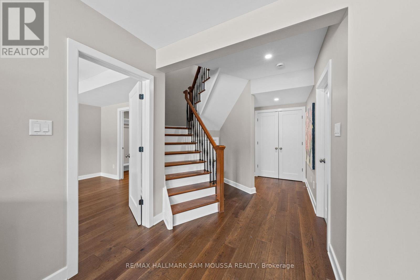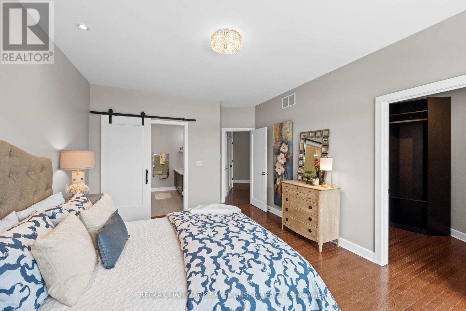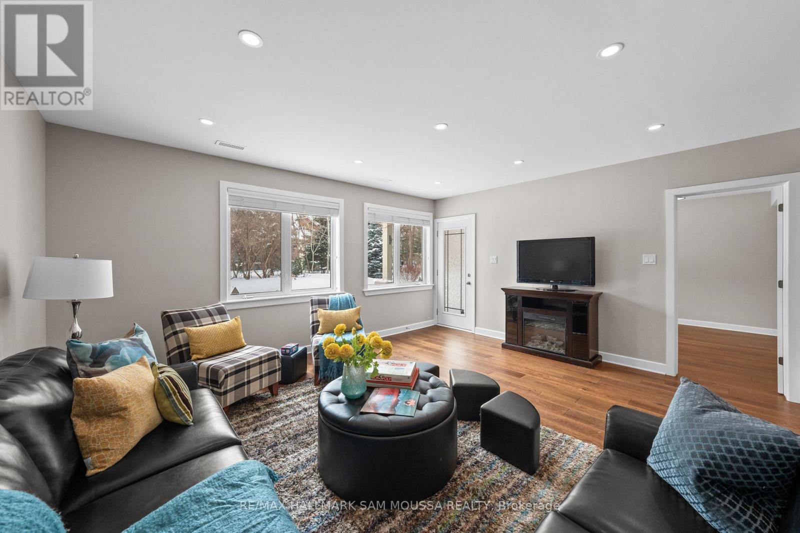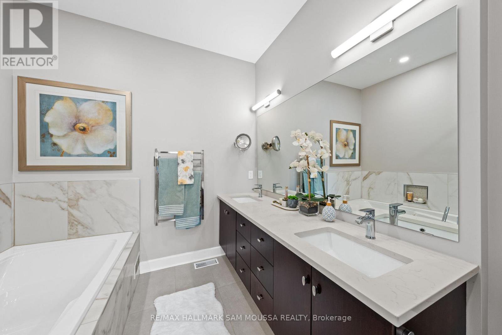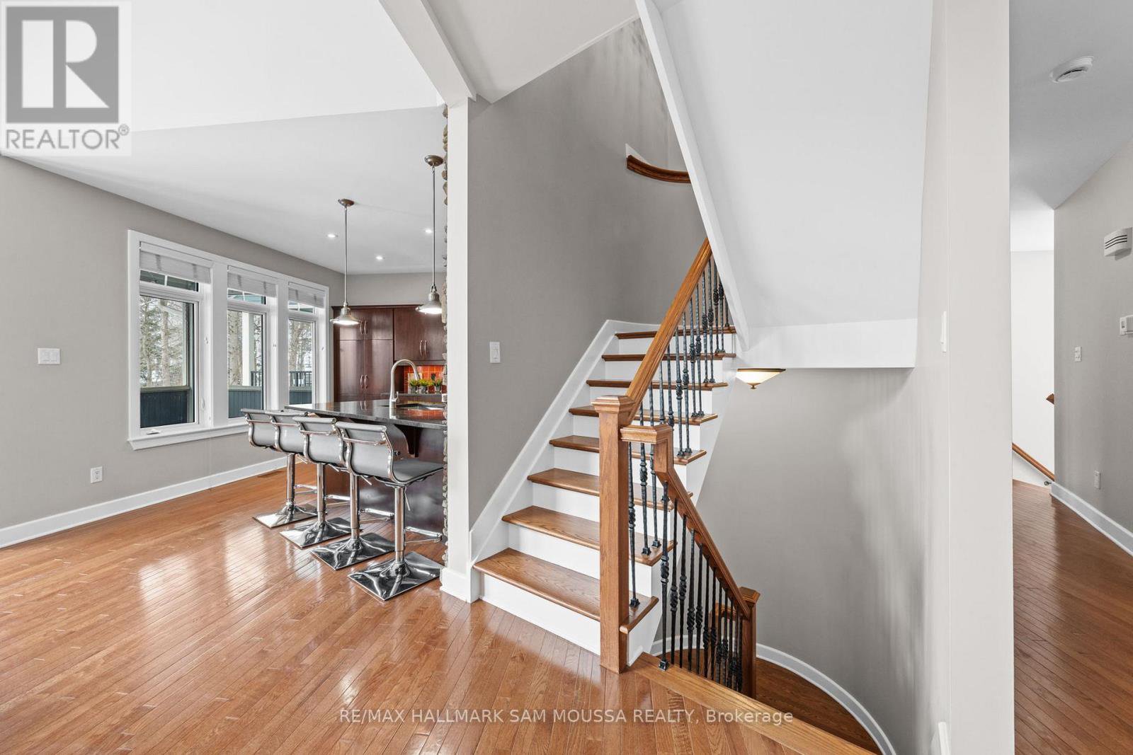Tucked away in the sought-after enclave of Marshes Village, this beautifully upgraded end-unit townhome offers refined living. Thoughtfully maintained and tastefully enhanced. A foyer with Italian tile sets the tone, opening to open-concept living and dining spaces. Soaring ceilings, expansive windows, and a stone fireplace create a warm atmosphere. The kitchen is a standout, granite counters, stainless steel appliances, and generous cabinetry, all designed with beauty and practicality in mind. A dedicated office, renovated powder room, and laundry area enhance the main level. Off the main living area, a screened-in porch with a gas hookup for BBQ overlooks the back garden. The primary suite is a true retreat, with a large custom walk-in closet and a stunning spa-inspired ensuite. Upstairs, a versatile loft with two closets and a full bath provides flexible living space, ideal for a guest suite or reading nook. Oak hardwood flooring runs throughout, including all three staircases. The finished walk-out lower level offers even more flexibility with a second family room, a spacious bedroom overlooking the garden, a walk-through closet, and a beautifully renovated full bath. This level also features floating oak flooring, adding to the comfort throughout. Outside, professional landscaping enhances the front and rear gardens, a large cedar deck and elegant stone patio provide the perfect backdrop for outdoor entertaining. Recent upgrades include new roof tiles and new wooden front steps. Situated next to the prestigious Marshes Golf Course and just minutes from Kanata Norths high-tech hub, the Brookstreet Hotel, DND, the 417, local shops and restaurants, the Richcraft Rec Complex, and nearby pickleball courts, this home offers a luxurious lifestyle in one of the city's most exclusive communities. Marshes Village Homeowners Association fee is $196/month covers road snow removal, landscaping, general maintenance, audit and insurance with a reserve fund for future needs.