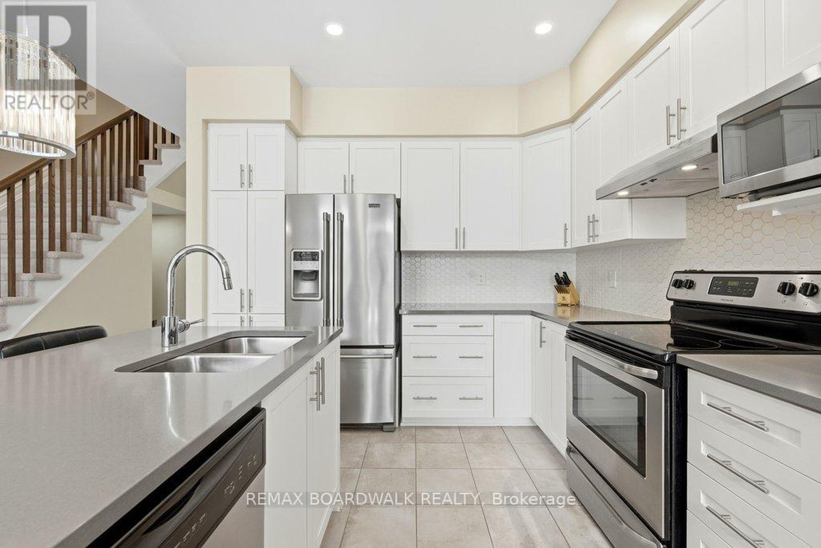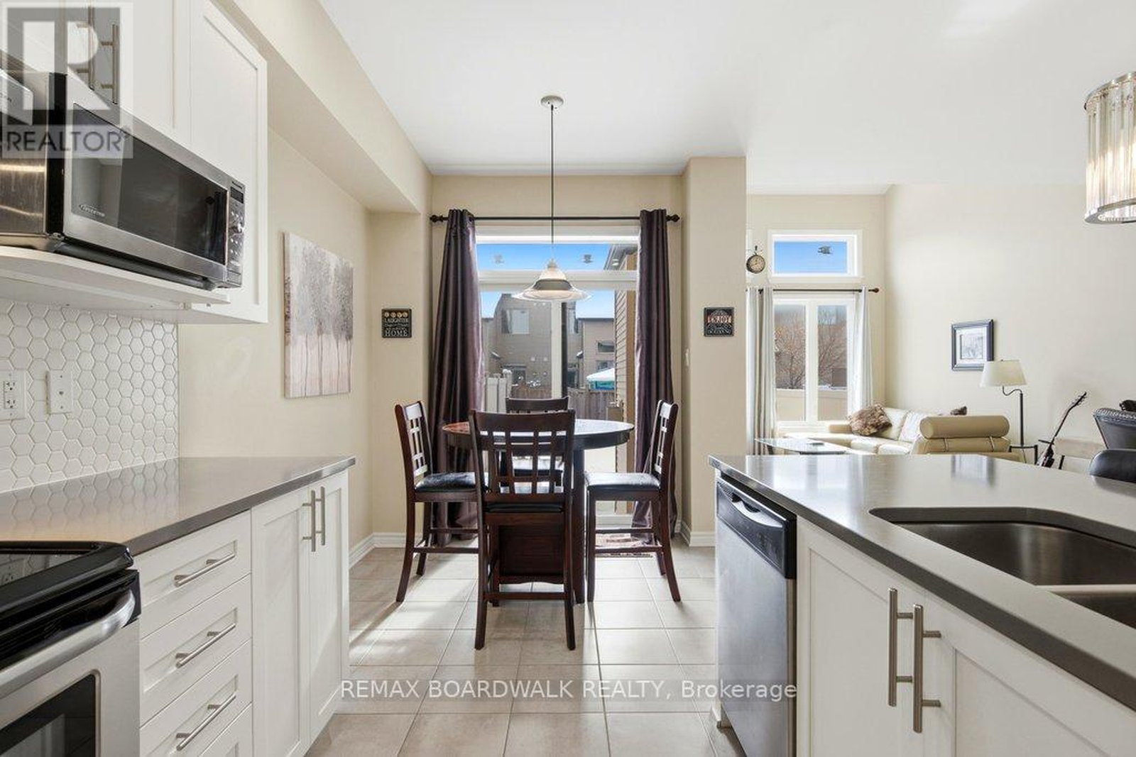 Welcome to this beautifully maintained Richcraft Addison model in the Trailsedge community of Orléans, one of Ottawa's most desirable neighbourhoods for families, professionals, and long-term homeowners. Built in 2017, this move-in ready 3-bedroom home offers thoughtful design, and everyday comfort in a prime east-end location. The main floor features rich dark oak hardwood flooring throughout the living areas, complemented by newer tile in the foyer and kitchen. The bright white kitchen is finished with stone countertops, a central island, and generous cabinetry, creating a functional and welcoming space ideal for daily living. Open to the living room, soaring cathedral ceilings and a feature fireplace wall add architectural interest, warmth, and a sense of calm sophistication. Freshly painted in soft neutral tones, the home offers a modern aesthetic throughout. Wall-to-wall neutral carpeting on the stairs & upper and lower levels provides comfort and continuity. The upper level includes three well-proportioned bedrooms, offering flexibility for families, guests, or home office space, while the finished lower level extends the living area, ideal for recreation, fitness, media, or additional workspace. All appliances, light fixtures, draperies and rods are included, along with a natural gas BBQ, and the seller is open to leaving select furniture, creating a rare turnkey opportunity. An attached garage and rare two-car driveway parking, increasingly hard to find in newer Orléans homes, adds everyday convenience and long-term value. Ideally located close to Patrick Dugas Park, the nature trails, top-rated English and French schools, transit routes, major shopping along Innes Road, and extensive parks, walking trails, and recreation facilities. This exceptional home delivers the perfect blend of lifestyle, location, and livability, offering an outstanding opportunity in today's competitive Ottawa real estate market.