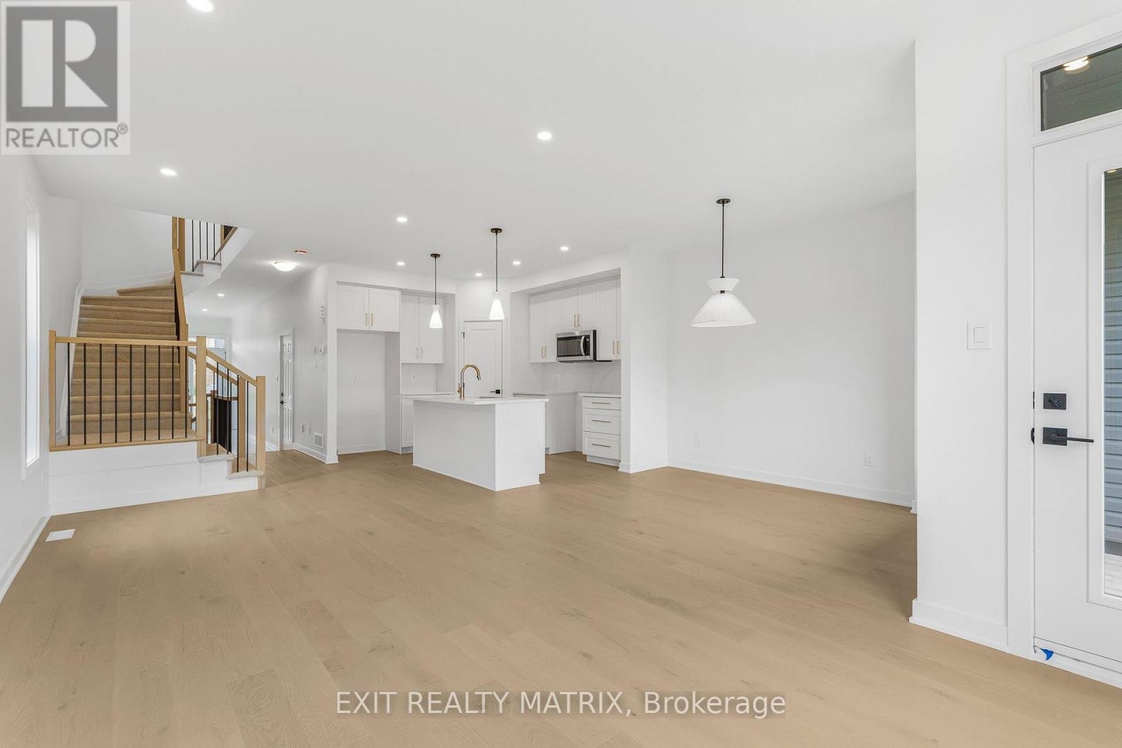 Step in and experience exceptional living in this newly constructed townhouse. Boasting over 2,100 sq. ft. of living space, this home combines modern style, open-concept design, and everyday convenience in one perfect package. The main floor welcomes you with a bright, open-concept layout filled with natural light. The chefs kitchen is a true highlight, featuring a center sit-at island, walk-in pantry, and abundant cabinetry for excellent storage and workspace, perfect for cooking and entertaining. A convenient 2-piece bathroom and an attached 1-car garage complete this level. Upstairs, you'll find three spacious bedrooms, each with its own walk-in closet. The primary retreat is a true standout with its own private balcony, a generous walk-in closet, and a spa-like 4-piece ensuite. A second 4-piece bathroom serves the additional bedrooms with ease. The fully finished basement adds even more living space, featuring a cozy natural gas fireplace, perfect for family movie nights, gatherings, or simply relaxing. This thoughtfully designed townhome blends comfort, functionality, and premium finishes, making it a standout choice for modern living close to all amenities.
