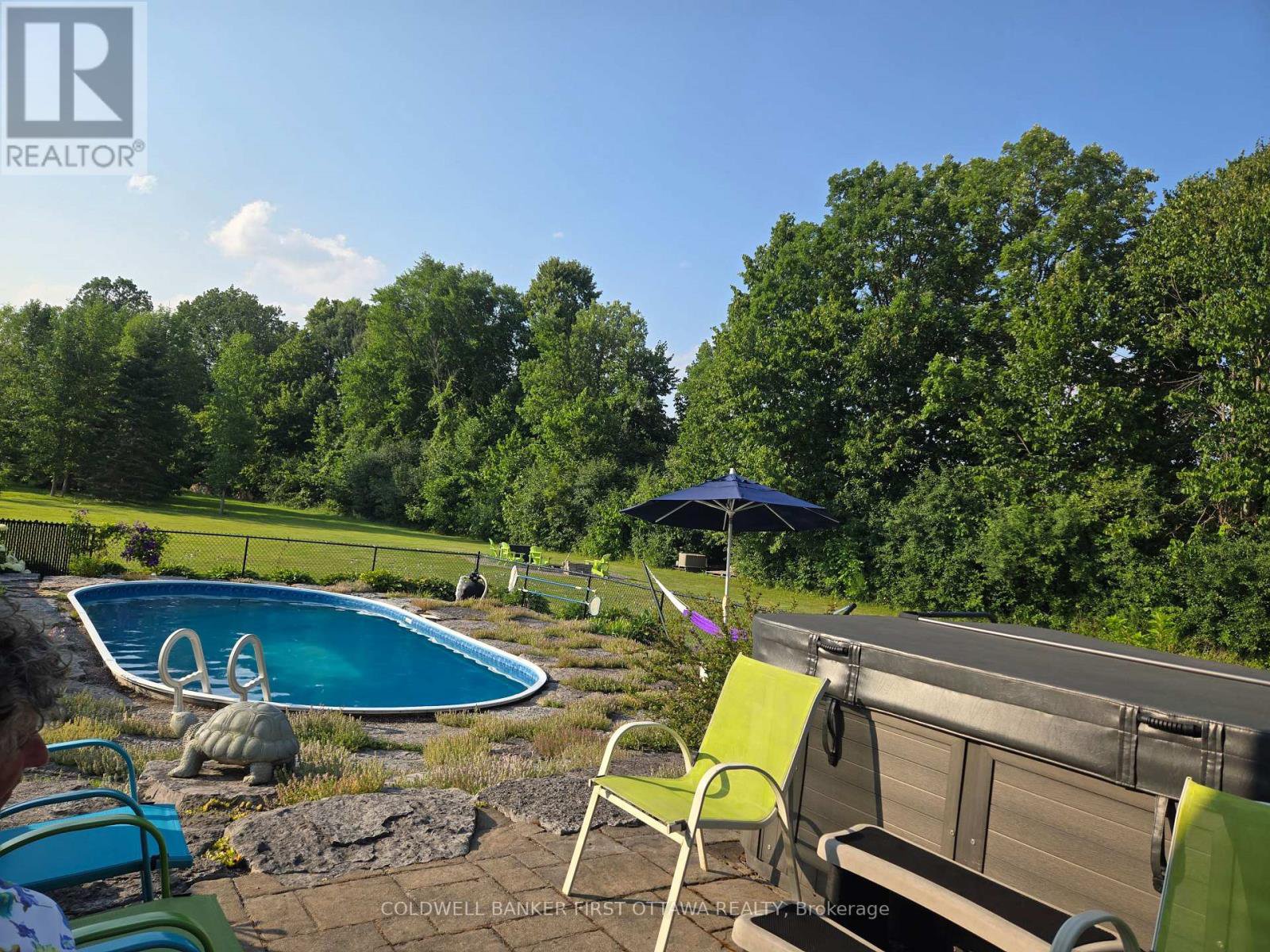 Step into luxury with this award-winning Luxart Homes bungalow, located in the highly sought-after community of Ashton Creek. Just 10 minutes from both Ottawa, Carleton Place & Dwyer Hill, this multi-generational masterpiece offers a rare blend of rural tranquility and urban convenience. Situated on a private 1.4-acre grounds with picturesque weeping willows and mature tree-lined boundaries, the property offers the feel of an instant escape.There are over 2,200 square feet of bright living space on the main level, where gorgeous hardwood floors flow seamlessly through an open concept layout. Expansive windows fill the home with natural light, highlighting architectural details like the stunning tray ceilings in the dining room and living area. The chef-inspired kitchen is a masterpiece of function and style, equipped with custom built-ins, innovative soft close features and premium finishes. Relax by the gas fireplace in the living room or head to the primary suite, which offers direct access to the deck - perfect for enjoying a peaceful morning coffee. Spa-like ensuite and secondary bathrooms further enhance the experience with heated floors for ultimate comfort.The lower level expands your possibilities with a fully furnished apartment consisting of two well-furnished bedrooms, one with a 4pce ensuite. With its own gas fireplace, a separate entrance through the garage, and a walkout to the patio, it's ideal for extended family or guests. Outside, your private oasis waits. Relax in the hot tub for a night of stargazing to loosen up tired muscles, or take a refreshing dip in the stunning pool.When you're not enjoying your own private retreat, take a stroll down to the Ashton Brew Pub for an authentic pub ale or explore the treasures of local artists nearby. With every detail meticulously crafted to prevail, this isn't just a house-it's a home you'll never want to leave.