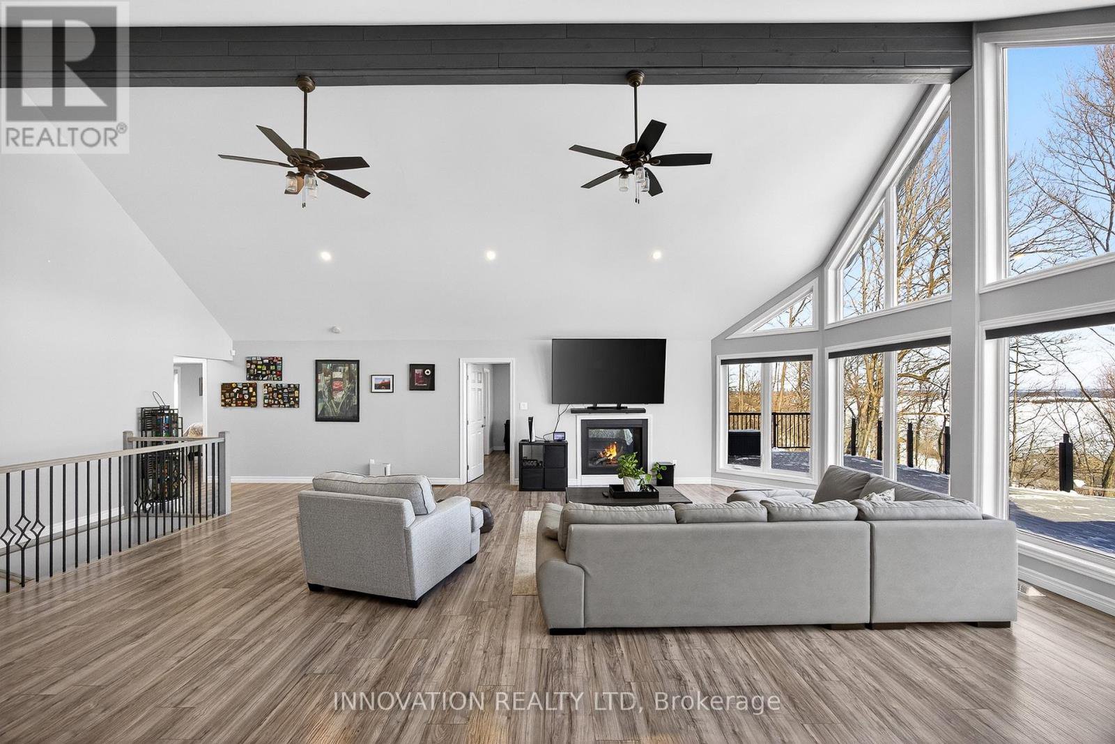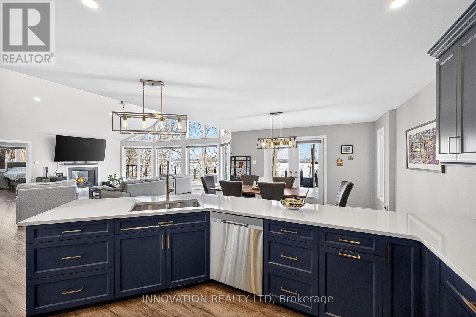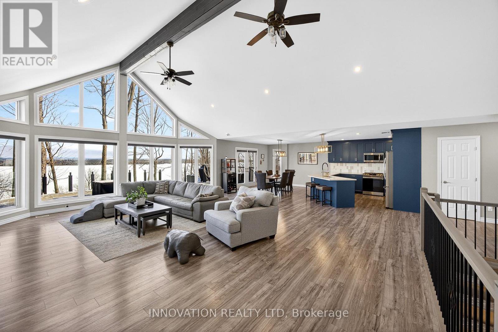 Incredible opportunity to truly "love where you live" Only a 30 min commute to Kanata, and minutes from Arnprior which offers amenities,hospital,parks,a marina,and charming downtown full of shops and restaurants... This home showcases stunning views of the Ottawa River and Gatineau Hills and is directly across from the public boat launch and beach. You also have access to the 296km Algonquin Trail for walking, snowmobiling, and ATV's at the end of the laneway. Entertaining this summer will be a DREAM! With an expansive 50x16ft composite deck looking out over the Ottawa River and gas fire pit deck parties are at a whole other level. Walk across the street for a swim or spend an adventurous day on the water exploring the River. The heart of every home is the kitchen and this one is perfect for family get togethers not only aesthetically beautiful but functional as well with plenty of counter space and seating featuring quartz countertops,stainless steel appliances and a pantry. Wake up each morning in your master bdrm to beautiful views and get ready for your day in a spa-like ensuite bathroom.Cathedral ceilings and floor to ceiling windows bring the outdoors in and with 5 bedrooms, 3 bathrooms, and a finished lower level this home gives you aprox 4000sqft to enjoy life with friends and family.For peace of mind a Generac system is installed. High speed internet is Bell Fibe. Automated custom blinds and Celebration lights have been professionally installed on the exterior so every holiday and mood can have your own unique accent lighting. The 2.5 car garage and 16x10ft shed offer tons of space to store all of the toys you will need to explore the "great outdoors". There is also a propane hook up for the bbq and firepit, and wiring for a hot tub. Property is landscaped and a paved laneway. For the dog lover your furry family member will love the enclosed dog run. Built in 2022 this custom home has just about everything you could want! 24 hour irrevocable on all offe