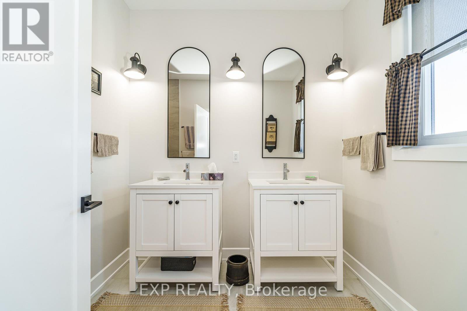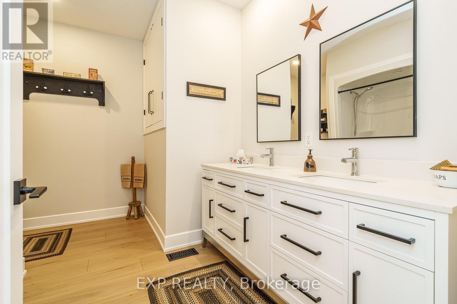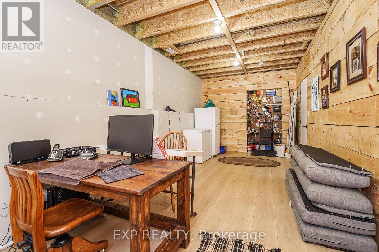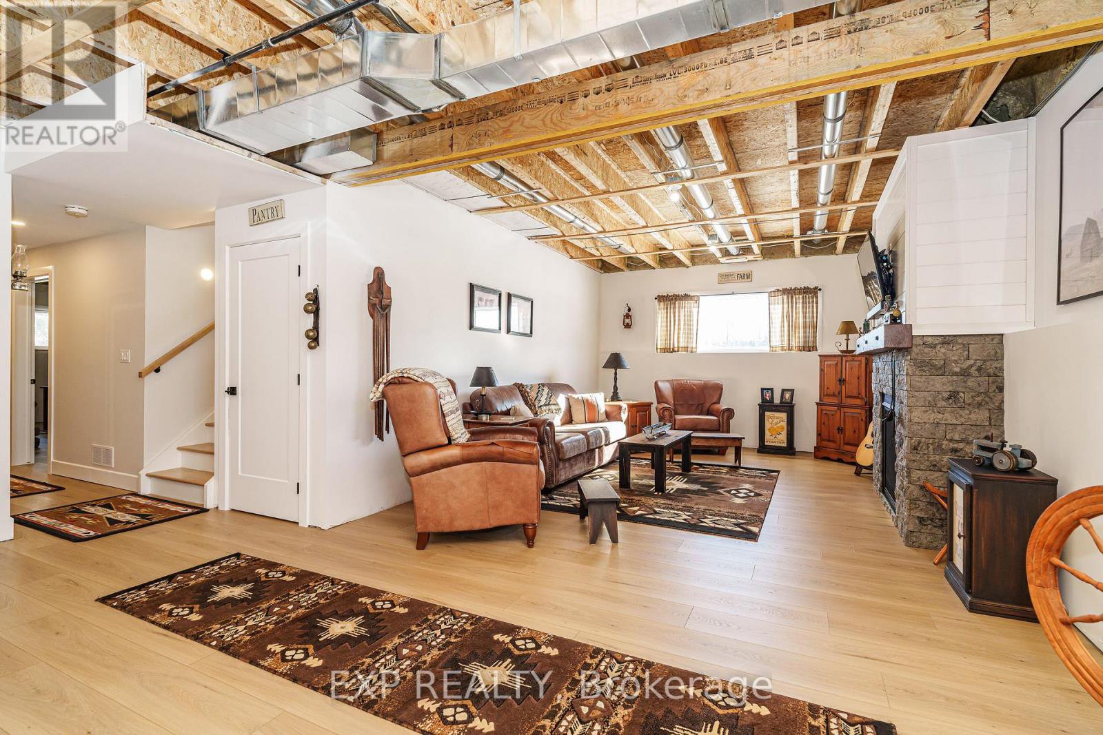Just minutes to Arnprior, located in Ferguson Beach on the Ottawa River, this exceptionally crafted high bungalow comes with a large workshop only seen in your dreams! It sits on a private, spacious 1.25 acre lot. The home offers approximately 1450 sqft above grade plus a finished basement adding another 1,000+, showcases outstanding attention to detail throughout. The main level features 9 foot ceilings, wide plank luxury vinyl flooring, quartz countertops across the entire level, pot lights, and custom lighting, creating a polished and modern feel. The layout includes four bedrooms and three bathrooms, with one bedroom currently used as a home office or workspace. Both upstairs bathrooms feature his and hers sinks, beautiful vanities and immaculate tile work. Two upstairs back-to-back electric fireplaces add warm and cozy vibes, while the propane fireplace and bar downstairs gives an additional entertainment lounge for the kids and family events. Due to the raised structural approach, the basement is bright with plenty of natural light and offers excellent additional living space for family to spread out in absolute comfort. Outside, enjoy a new deck with a custom pergola, perfect for relaxing or entertaining in the warmer months. The home is equipped with all the bell and whistle systems: water softener and filtration system, new washer and dryer, modern appliances, HRV and GenerLink. What makes this property extra special is the attached heated double garage which is spray foamed and finished with steel cladding. And here's the best for last: The $150,000 detached heated shop which offers 780 sqft of workspace plus a 300 sqft lean to for summer parties and relaxing, complete with running water, floor drains, wiring for welding, massive tube heater and 3 insulated bay doors! A 12 x 16 hickory shed with electricity provides even more storage, making this property ideal for those seeking space, functionality, and quality craftsmanship in a peaceful rural setting.