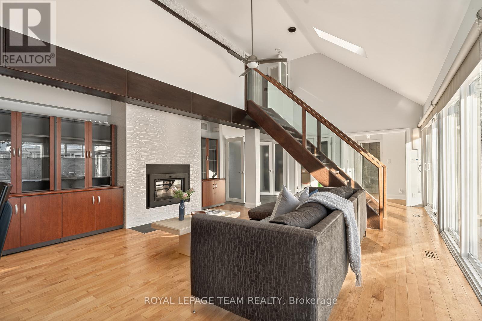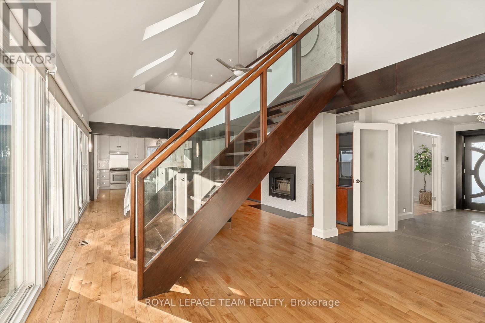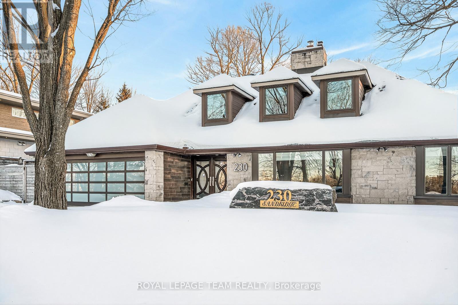 Live along one of Ottawa's most beautiful drives - the Sir George-Étienne Cartier Parkway, where river views meet tree-lined skies. Designed by Hall of Fame architect Samuel Gitterman, this mid-century residence blends architectural heritage with refined modern design. Sculptural double doors open to luminous, flowing interiors: an expansive living and dining framed by new rectangular Pella windows; a vaulted family room with roaring fireplace; a chef's kitchen with quartz island and gas range. Three main-floor bedrooms open to the gardens, including a tranquil primary suite with a heartthrob ensuite. Upstairs, a fourth bedroom and generous open loft inspire easy versatility. The finished lower level adds a large recreation space, guest suite, bath. Throughout: statement lighting, impeccable design, luxury surfaces. Outside, textured white stonework, custom fencing, manicured gardens, and a generator complete the picture. Located in illustrious Rockcliffe Park, 230 Sandridge Road offers light, beauty, and serenity along the river.