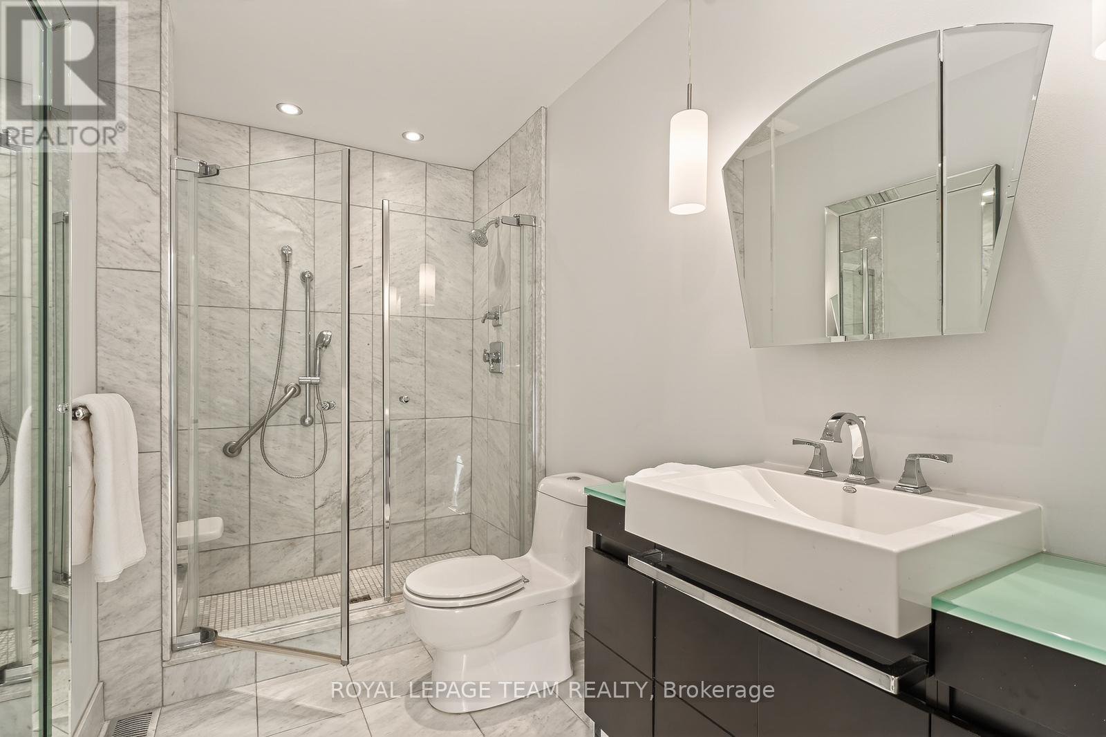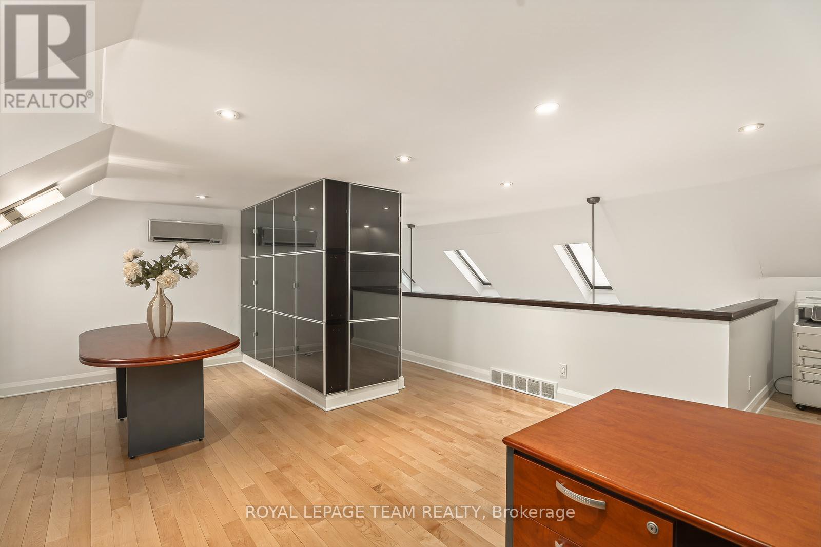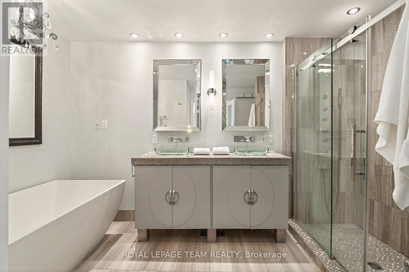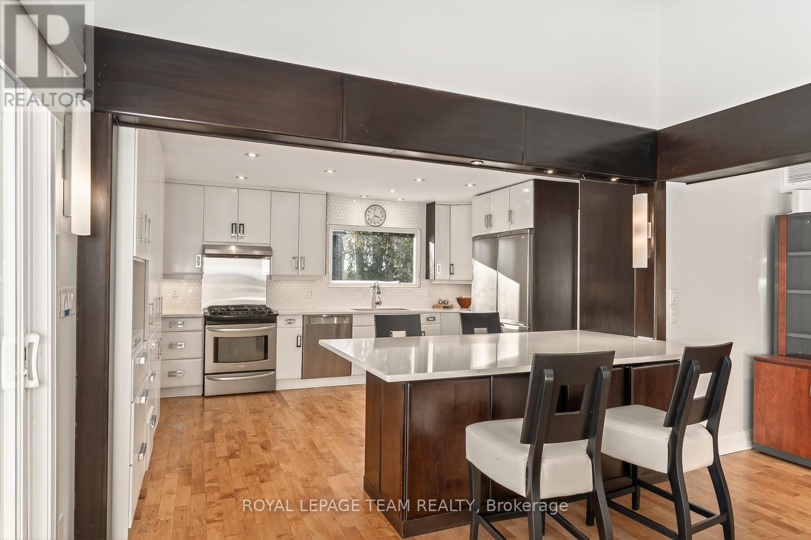 Live along one of Ottawa's most beautiful drives - the Sir George-Étienne Cartier Parkway, where river views meet tree-lined skies. Designed by Hall of Fame architect Samuel Gitterman, this mid-century residence blends architectural heritage with refined modern design. Sculptural double doors open to luminous, flowing interiors: an expansive living and dining framed by new rectangular Pella windows; a vaulted family room with roaring fireplace; a chef's kitchen with quartz island and gas range. Three main-floor bedrooms open to the gardens, including a tranquil primary suite with a heartthrob ensuite. Upstairs, a fourth bedroom and generous open loft inspire easy versatility. The finished lower level adds a large recreation space, guest suite, bath. Throughout: statement lighting, impeccable design, luxury surfaces. Outside, textured white stonework, custom fencing, manicured gardens, and a generator complete the picture. Located in illustrious Rockcliffe Park, 230 Sandridge Road offers light, beauty, and serenity along the river.