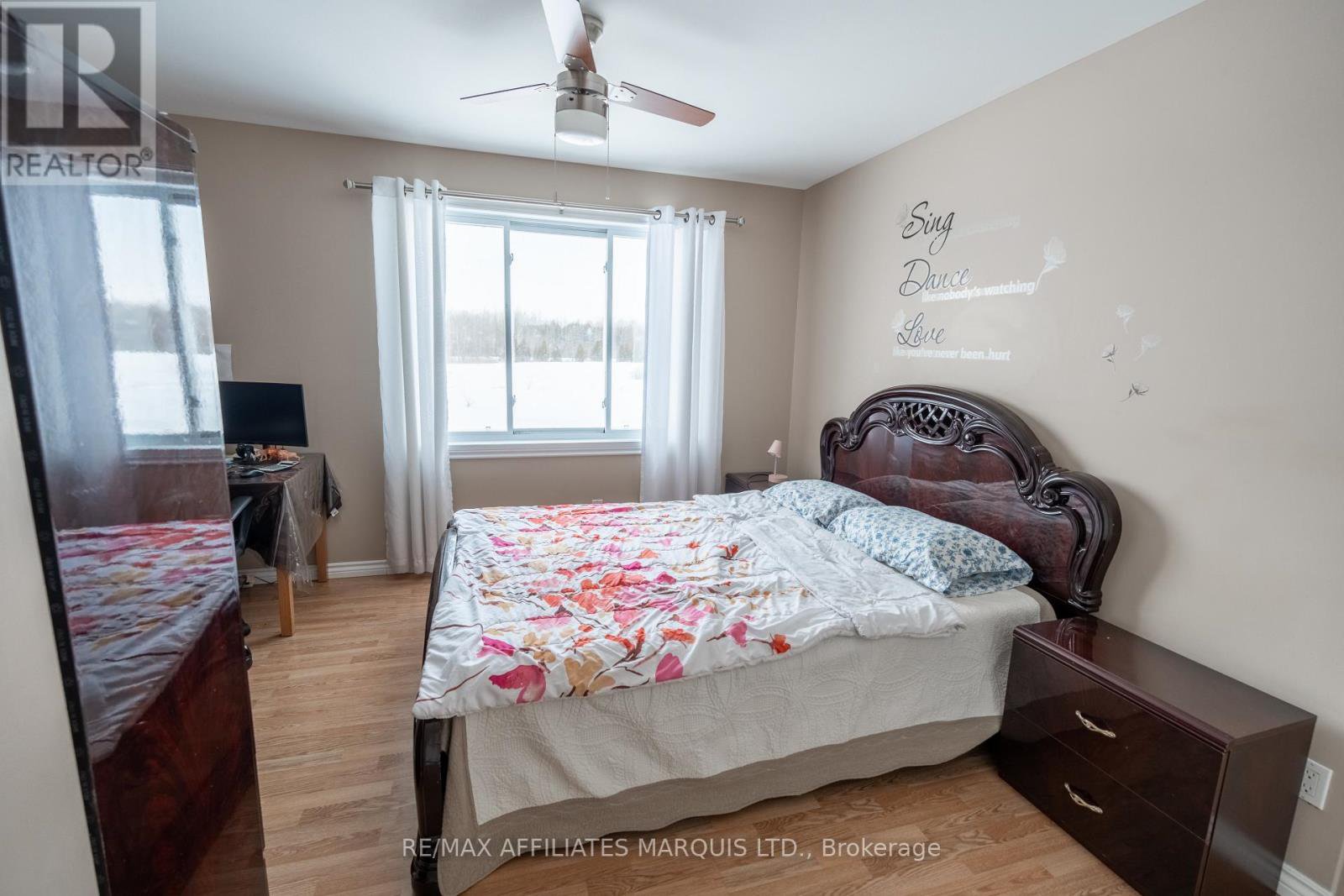 Sprawling 5-bedroom, 3-bath custom home set on a private 3-acre parcel. Attached double garage with direct basement access. Semi-finished lower level with rough-ins for a future kitchenette, two additional bedrooms, full bath and heated floors, ideal for extended family or income potential. This property truly checks every box. Striking curb appeal with generous setback from the road and excellent privacy from neighboring homes. Main-floor primary bedroom features a spacious 4pc ensuite and dual walk-in closets. Thoughtfully designed layout with open-concept living, centre kitchen island, main-floor laundry/mudroom, plus a versatile den/formal dining/office space. Vaulted ceilings highlight an architectural staircase and eye-catching vertical fireplace. Flooded with natural light throughout. Patio doors lead to an expansive rear deck overlooking peaceful rural greenspace. Four generously sized upper bedrooms served by a full bath. Conveniently located minutes to both Ingleside and Morrisburg, enjoy country living with nearby amenities. Exceptional value, endless potential!!! Be settled by spring. 24hr irrevocable. Book your showing today.