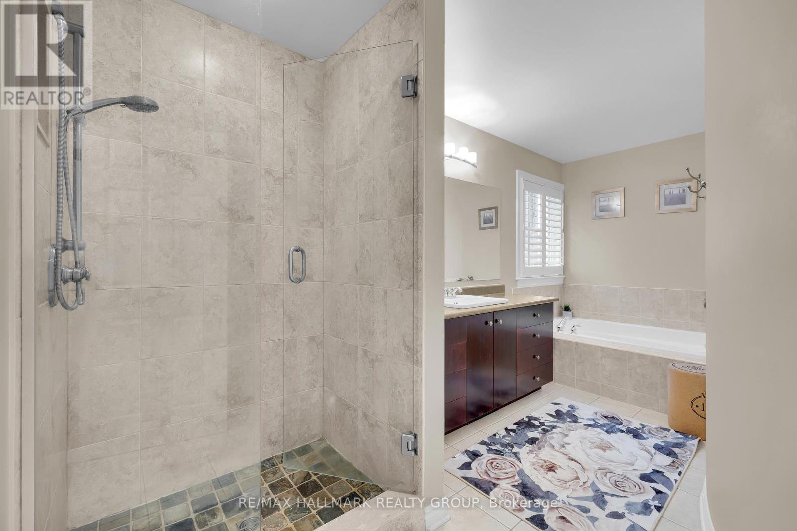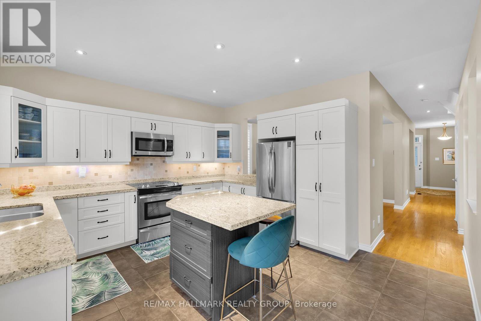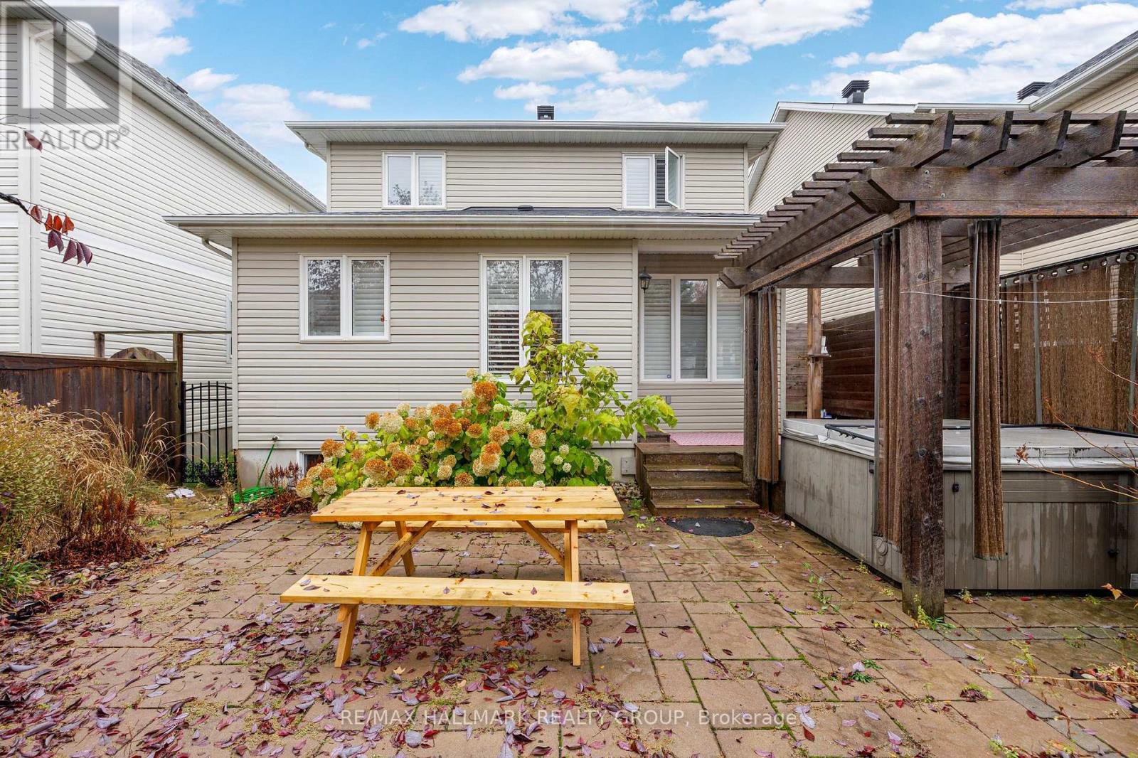 Well-maintained 4 bedroom, 3 bathroom home with a double car garage, located in a desirable Stittsville neighbourhood close to shopping, restaurants, parks, trails, and excellent schools. The home offers strong curb appeal and a bright, functional layout. The main level features large windows, 9ft ceilings, pot lights, and hardwood fooring throughout the formal living and dining areas. A stone-surround freplace anchors the main living space. The spacious eat-in kitchen includes granite countertops, stainless steel appliances, ample cabinetry with pantry storage, and a centre island, all open to the main living area. Convenient main foor laundry comes with additional storage. The second level offers a primary bedroom with walk-in closet and ensuite featuring a soaker tub and a large walk-in shower. Three additional well-sized bedrooms share a full bathroom. The unfnished lower level provides fexibility for future development. Fully fenced backyard with interlock patio, storage shed, and hot tub (professionally winterized each year), and a gas BBQ hook up. A solid family home in a highly sought-after location. Recent upgrades: Roof (2019), Furnace (2020).