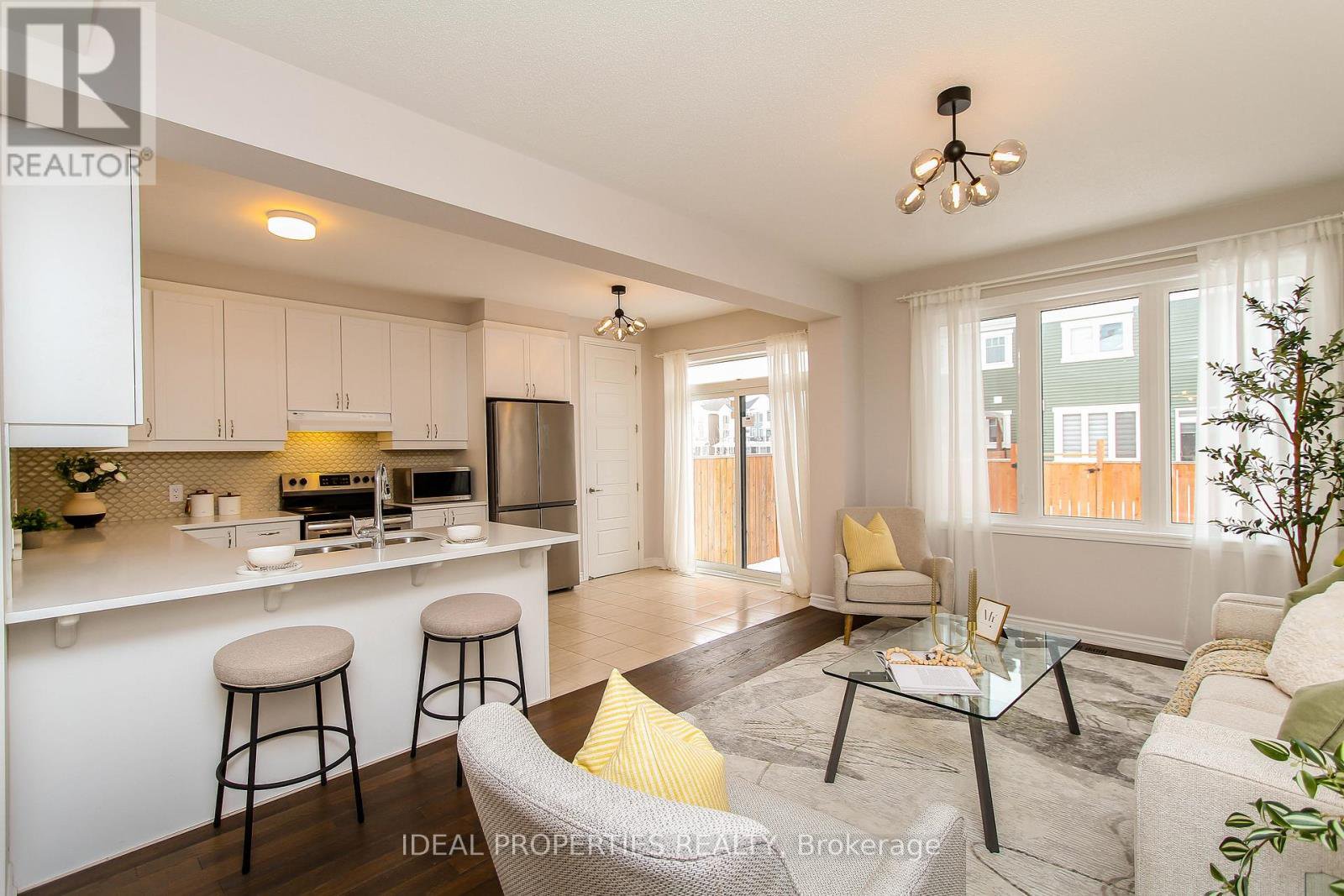 This beautifully upgraded Mattamy Lilac model welcomes you with a charming front porch and a bright, inviting foyer with walk-in closet. The main level features a spacious open-concept living and dining area, perfect for everyday living and entertaining. Enjoy morning coffee at the breakfast bar in the stylish U-shaped kitchen, complete with quartz countertops and enhanced by designer lighting fixtures throughout. The sun-filled breakfast nook offers bright patio doors that open to a fully fenced backyard, ideal for relaxing or hosting guests. Upstairs, the home offers 3 bedrooms and 2.5 bathrooms, including convenient second-floor laundry located near the main bath between bedrooms two and three. A dedicated computer alcove provides the perfect space for a home office or study area. The private owner's retreat features a walk-in closet and a beautifully appointed ensuite. Additional highlights include a single attached garage and a basement with rough-in, offering future flexibility.